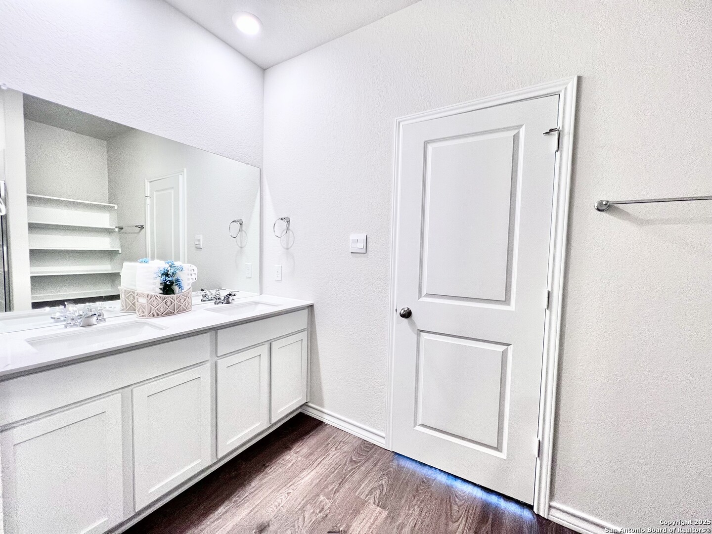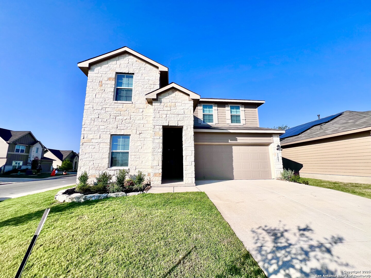 Spacious BRAND NEW - CORNER LOT Home in Brookstone Creek, NEISD. This beautiful two-story home offers 4 bedrooms (2 bedrooms downstairs), 3 full bathrooms, and 2,257 sq. ft. of thoughtfully designed living space. The open-concept kitchen, dining, and living area features granite countertops, stainless steel appliances, gas cooking, a large island with dual sinks, and a walk-in corner pantry, WATER SOFTENER . The downstairs includes a private primary suite with a luxury walk-in shower, dual vanities, and a large walk-in closet, plus a secondary bedroom and full bath. Upstairs, you'll find a spacious loft, two additional bedrooms with walk-in closets, and another full bath. Enjoy outdoor living on the covered patio overlooking a fully landscaped and irrigated yard. Additional highlights include upgraded vinyl flooring, 2-car garage, and smart home features. Conveniently located near Hwy 281 & Loop 1604, I-35, with shopping, dining, and grocery stores just minutes away. Schedule for your showing today, you will love it.