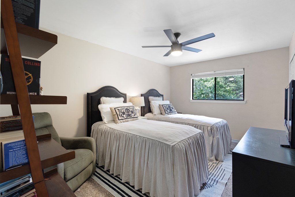 Make your home in the scenic Garden Ridge Estates where you'll find extra large lots with gorgeous mature trees, friendly neighbors, and walkable streets. This well maintained 4 bedroom, 3.5 bath home was remodeled in 2020 and comes complete with a tree covered yard including sprinkler system, landscaping, storage, chicken coop, and 160sqft shop building with ac/ht. Inside you'll find your primary bedroom suite downstairs with new carpet, large family room anchored by a nice brick fireplace and wall lined with windows overlooking the expansive outdoor covered patio. There is a unique breakfast area off the kitchen and a dining room currently used as an office by the owner. Upstairs you'll find 3 bedrooms and 2 baths, one which has a brand new extra large tiled shower. Brand new roof and gutters were just put on this Spring. Garden Ridge is a growing area between San Antonio and New Braunfels, yet still has the small-town feel about it. Looking for a quiet area yet minutes from all the necessities? Check out Garden Ridge Estates.