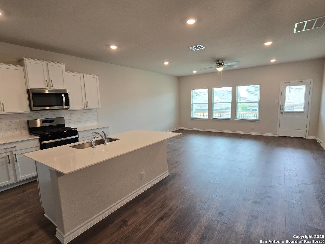 Grab this opportunity to rent this beautiful Newer home 2 story, 4 bdrm, 3 full bath, 2 car garage with a super nice back patio porch and super green backyard. Open floor plan with Open Kitchen to Dining Rm & Living Rm. Spacious Split Master Bdrm with super nice Master Bathroom along with large Master Closet that has a super nice storage area under the stairs. So, extra bonus storage! The front bdrm downstairs could also be a great Office space or 4th bdrm or Flex Rm. Super Nice home! The best features of any home! Ready for you to rent Now. Refrigerator, Washer & Dryer come with home!