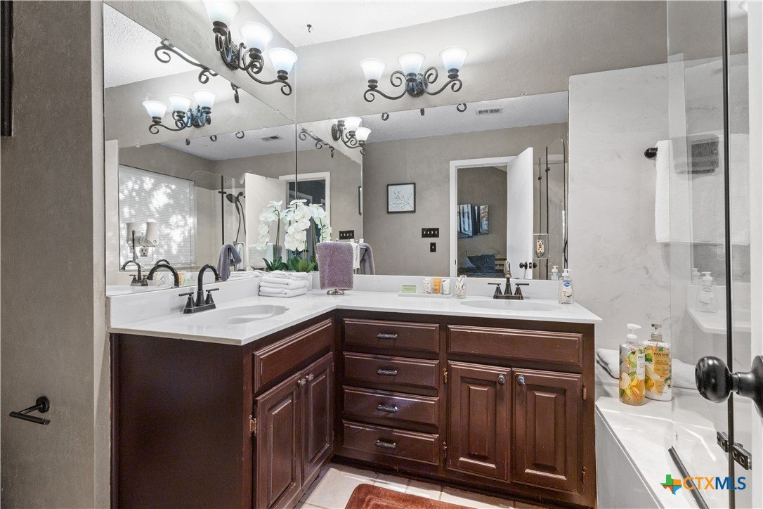 Located at 2107 Raintree Path, Round Rock, TX 78664 in Williamson County, this single-family residence offers an inviting home ready for you to move in. The living room is a captivating space, defined by its high ceiling, while a fireplace serves as a warm and welcoming focal point. The kitchen showcases shaker cabinets and a peninsula that extends into a kitchen bar, creating an ideal spot for casual dining and conversation. In the primary bathroom, a double vanity adds practical elegance, providing ample space for morning routines. Outdoor living is just as inviting, with a patio for relaxing, a fire pit for cozy evenings, and a fenced backyard offering a private retreat. The home features three bedrooms and two bathrooms and a half bath, thoughtfully arranged for comfort and privacy, along with a two-car garage for vehicle shelter and extra storage. This Round Rock residence presents the perfect opportunity to enjoy a lifestyle of comfort and convenience.