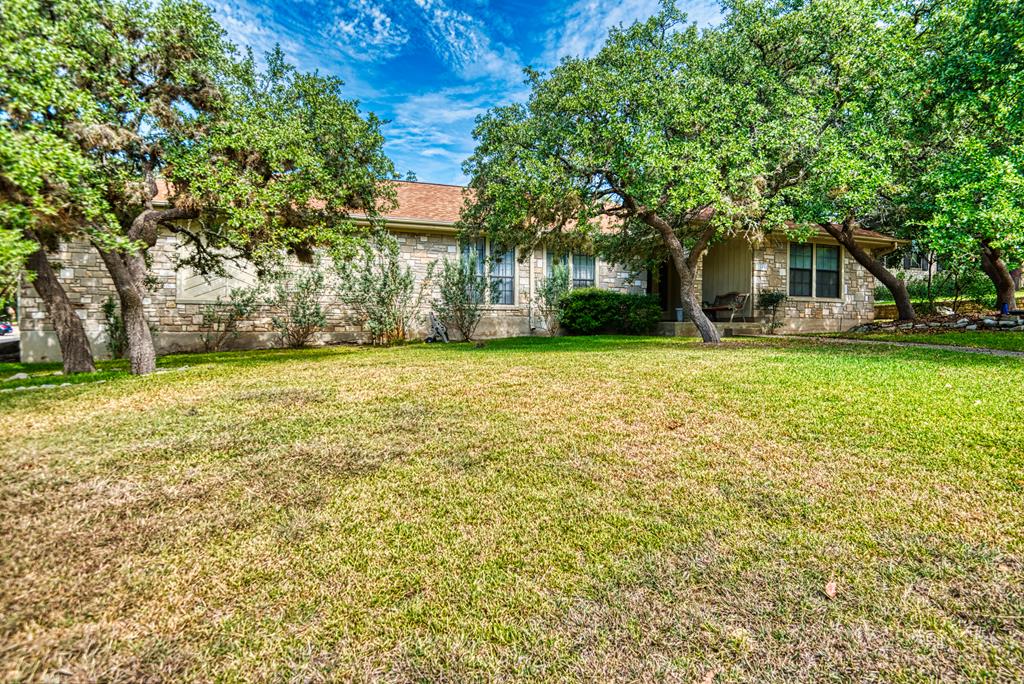 Three bedroom, two & one half bath home with two living areas on a corner lot in Forest West Subdivision. The curb appeal is great with all the beautiful trees & garage is side entry.The pretty landscaping makes for a nice entrance to the covered front porch. Upon entering, you will find a spacious formal living/dining room off of the foyer that could be utilized for a variety of purposes. The split bedroom floor plan puts the guest bedrooms & bath off a private hallway. Towards the back of the home there is a cozy den with a wood burning fire place & a wet bar. The perfect place to make a cocktail, sit by the fire & enjoy ones favorite book. The kitchen has a good sized eating bar and breakfast area. Off of the kitchen is a good sized utility room with plenty of room for a washer/dryer and upright fridge/freezer. The master suite offers plenty of room for furniture and has its own private exit to the back deck. The master bath features a large jetted garden tub with picture window. This would be a perfect place to relax! The fenced backyard is simply amazing with wonderful trees and landscaping. There is a large deck to sit out and enjoy the Texas Hill Country Climate.