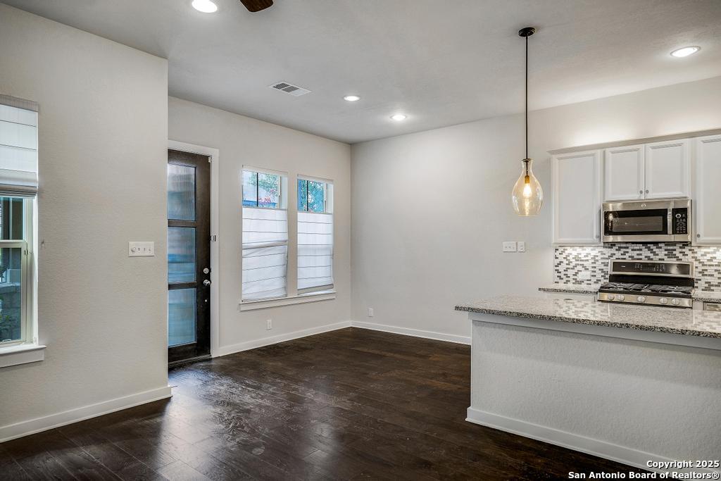 Move-in ready with closing cost incentives! Exceptional David Weekley town house in the heart of Tobin Hill. A charming small landscaped front, with wrought iron fencing welcome you to the covered porch entry. Inside, an open family and dining area flows into the island kitchen with bar seating, custom white cabinets, stainless appliances, and 5-burner gas cooking. Solid wood floors run throughout with walls freshly painted in neutral tones. The second floor features a separate primary suite with front-facing views and a spa-like bath with a dual-head walk-in shower, plus two secondary bedrooms, a full bath, and laundry. The third floor offers a versatile oversized flex space with half bath. Additional highlights include a rear-entry garage, tankless water heater, water softener, and reverse osmosis system. All this just steps from the vibrant dining, shopping, and entertainment Tobin Hill is known for!