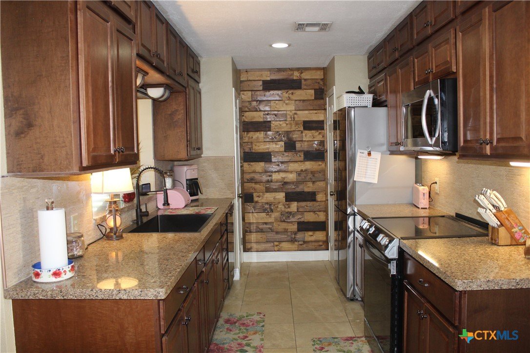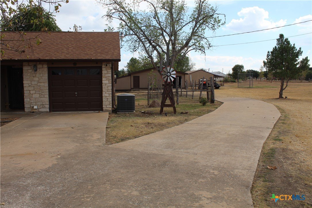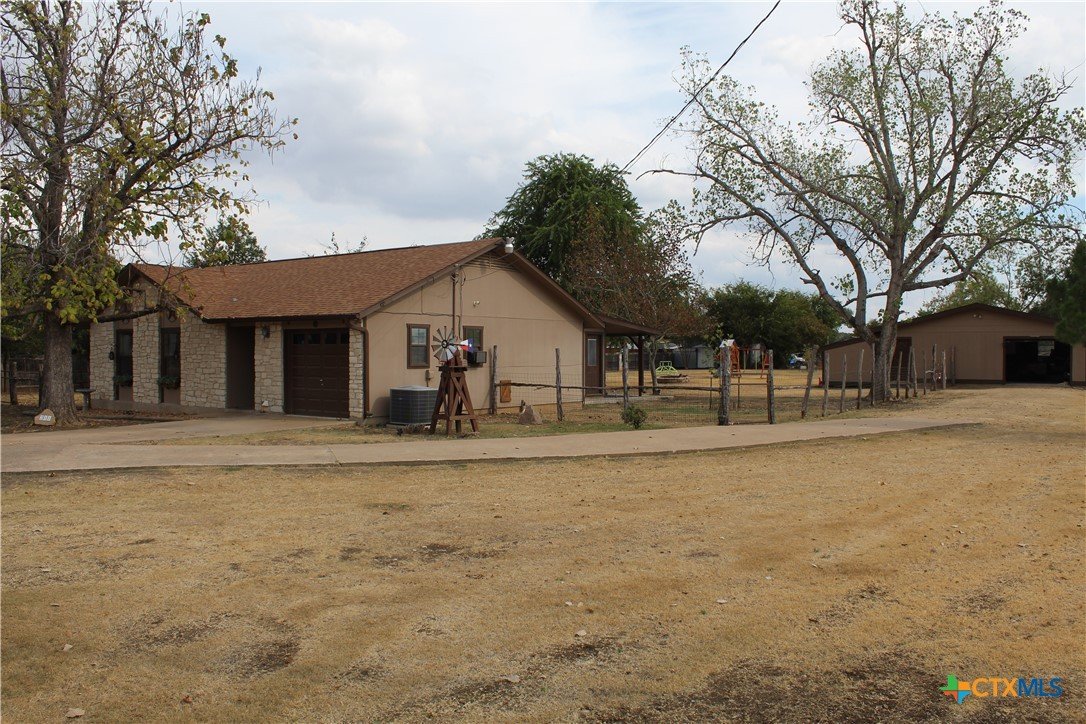 Situated on a full one-acre lot, this 3-bedroom, 2-bath Georgetown property offers space, comfort, and versatility with low taxes and no HOA. Inside, wood flooring and travertine tile flow throughout, complemented by updated bathrooms. The spacious primary suite features a walk-in shower, Jacuzzi tub, and dual vanities, creating a private retreat. Outdoors, enjoy a covered back porch overlooking the fully fenced yard with multiple drive-through gates, offering easy access and flexibility for vehicles, equipment, or recreational use. A large workshop is a standout feature, complete with a dedicated tool area and a convenient ride-up ramp—ideal for mower access, storage, or projects of all sizes. Well water means no water bill, adding to the efficiency and affordability of this property. With ample room and functionality for homesteading or a multi-living setup, this home delivers a rare combination of land, utility, and lifestyle just outside the city.