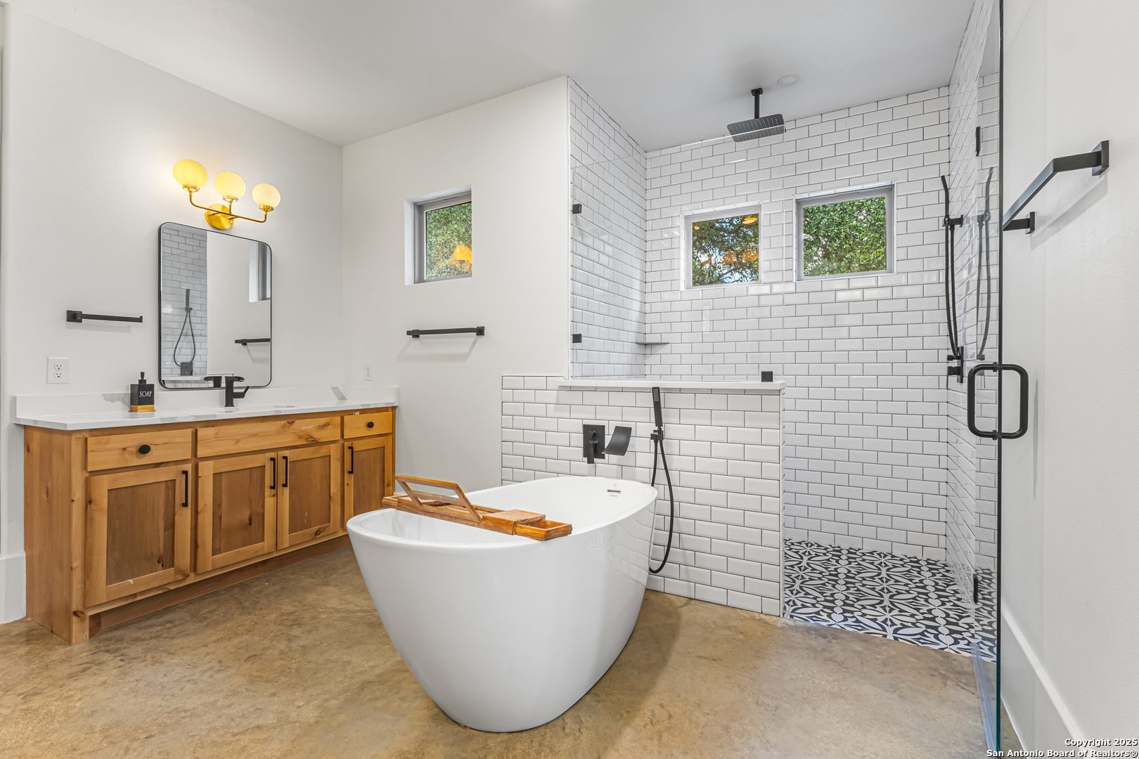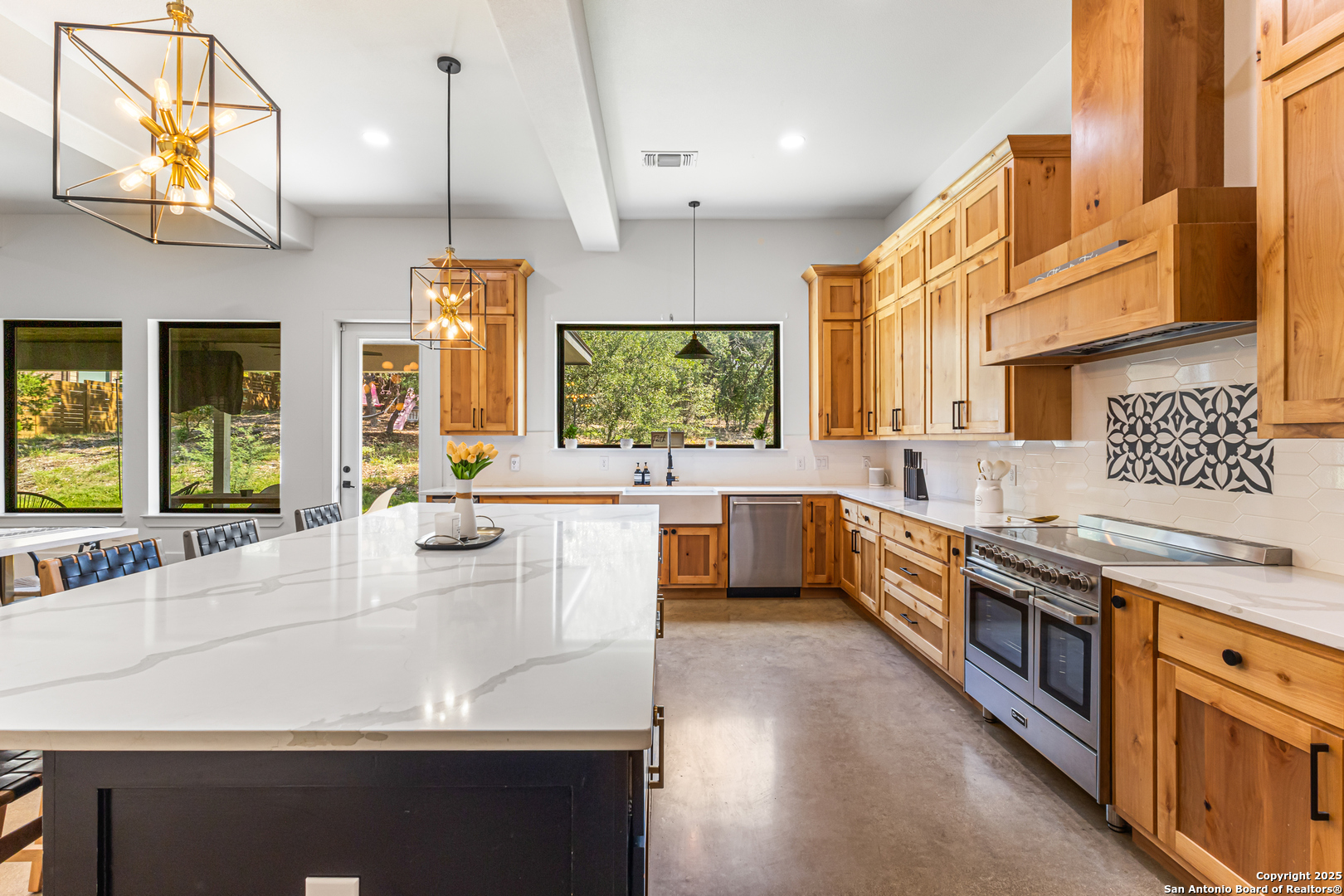 ***OPEN HOUSE NOV. 16TH 1PM-3PM***Welcome to Your Timberwood Park Dream Home! Discover the perfect blend of modern elegance and farmhouse charm in this stunning one-story (Game OPEN HOUSE room upstairs), 2020-built home in the highly sought-after Timberwood Park community (Piper Schools). Offering 4 bedrooms, 3 bathrooms, and 3,244 sq. ft. of thoughtfully designed living space on a half-acre lot, this home was made for both everyday living and entertaining. The open floor plan features a chef's kitchen with stainless steel appliances, quartz countertops, custom cabinetry, and an oversized island - perfect for gathering with family and friends. Designer finishes include stained concrete floors, Gorgeous custom cabinets, custom ceiling details, and beautiful upgraded lighting throughout. The primary suite feels like a private retreat with a luxurious walk-in shower and custom Closets By Design system. Step outside to enjoy the large covered patio and spacious backyard, ideal for relaxing evenings or weekend barbecues. Beyond the home itself, Timberwood Park offers a vibrant lifestyle with music in the park, community events, a swimming pool, playground, lake, trails, and courts for tennis and basketball - bringing neighbors together and making every day feel like a getaway. Minutes from two major golf courses and shopping. Don't miss the chance to make this Timberwood Park gem yours!