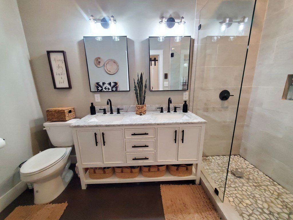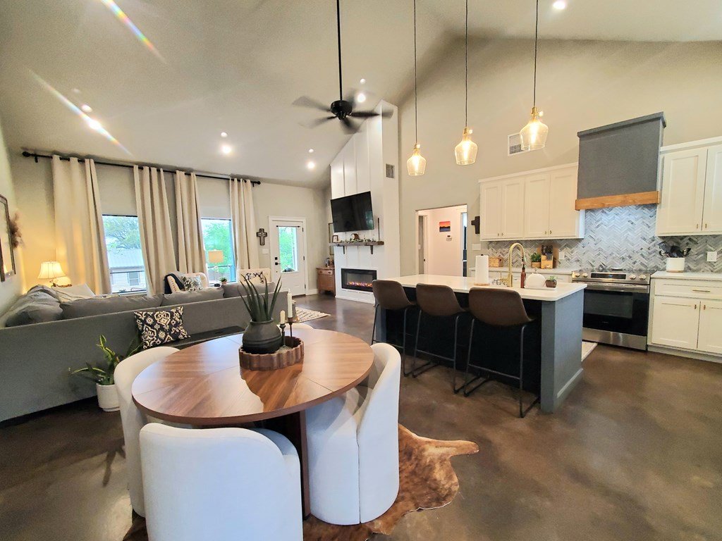 Enjoy coffee on the covered front porch of this modern 3 bedroom, 2 bath farmhouse that was recently completed in 2021 by a local Mason builder. Features include: lots of natural light, cathedral ceilings, open floorplan, concrete floors throughout, granite countertops throughout, large pantry, separate laundry room, double vanity in both baths, lots of storage throughout, covered front/back porches, custom electric fireplace (w/ heat!), additional loft space in bedroom 2 and steel-frame construction w/ spray-foam insulation for efficiency. Bonus- includes existing washer, dryer, kitchen fridge, microwave, ultra-quiet dishwasher and mounted TV above electric fireplace! Close to Mason schools, historic square and shopping!