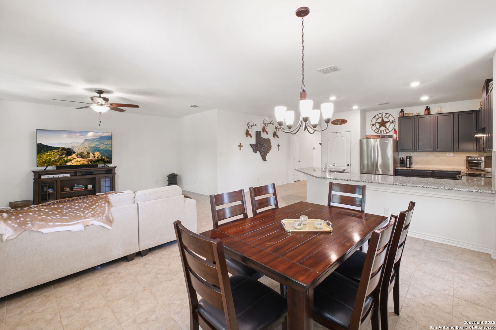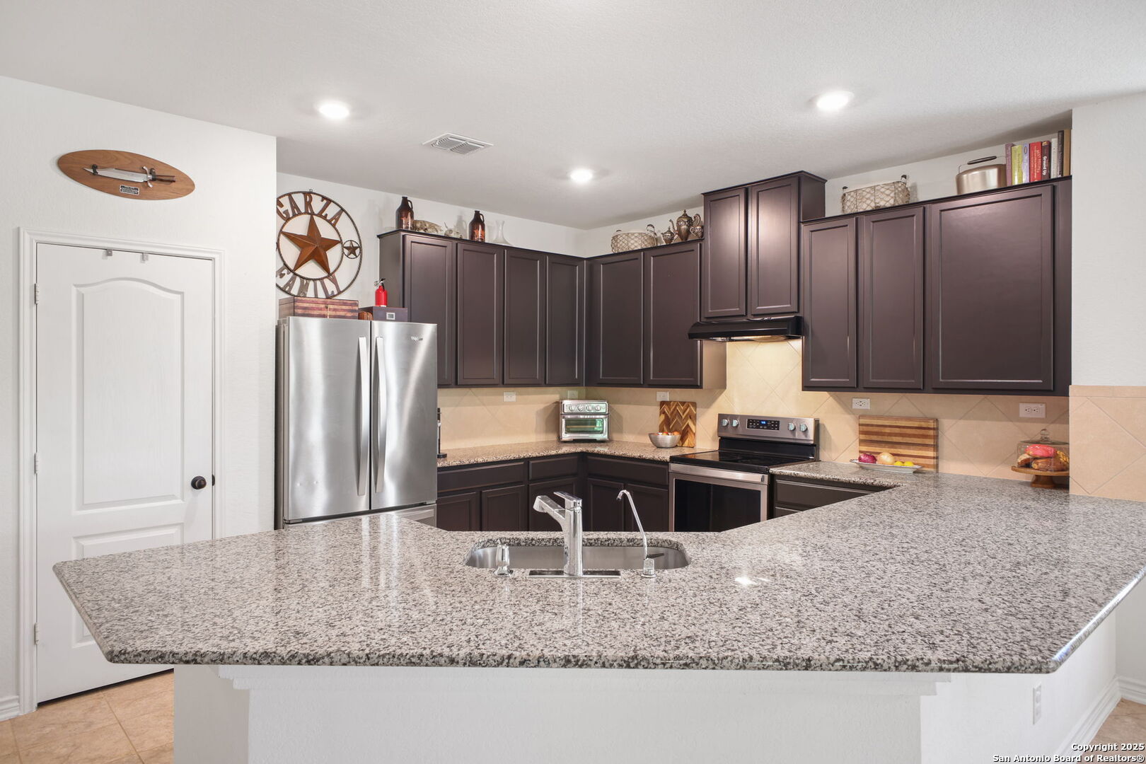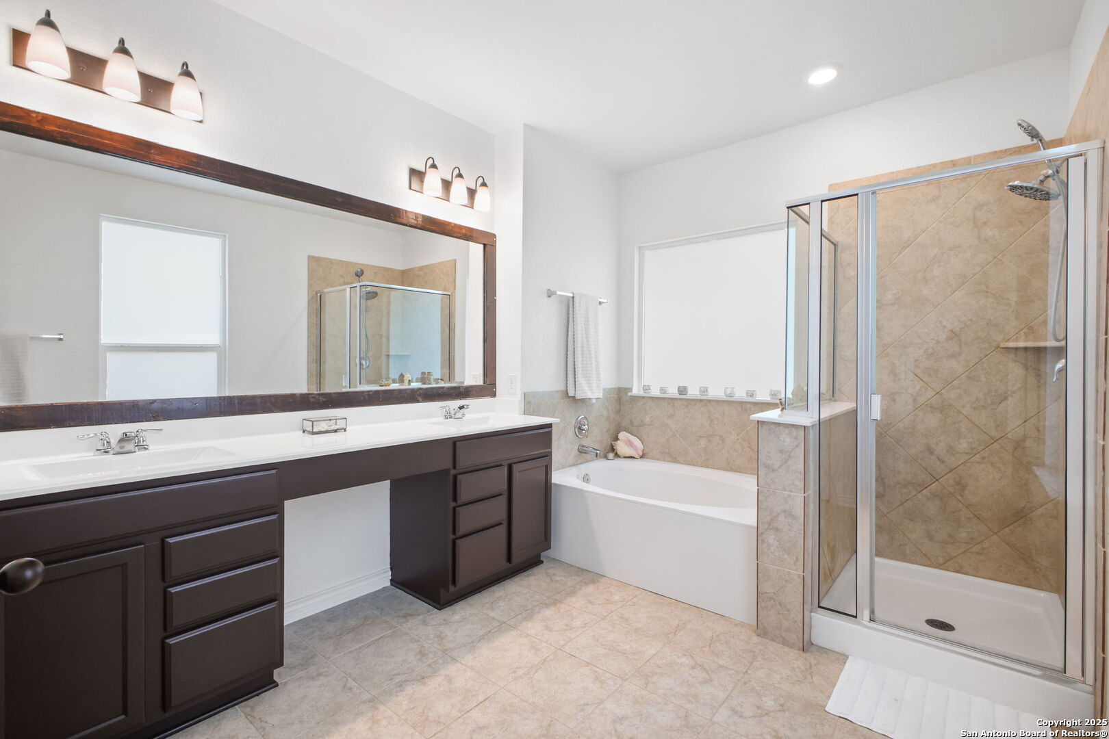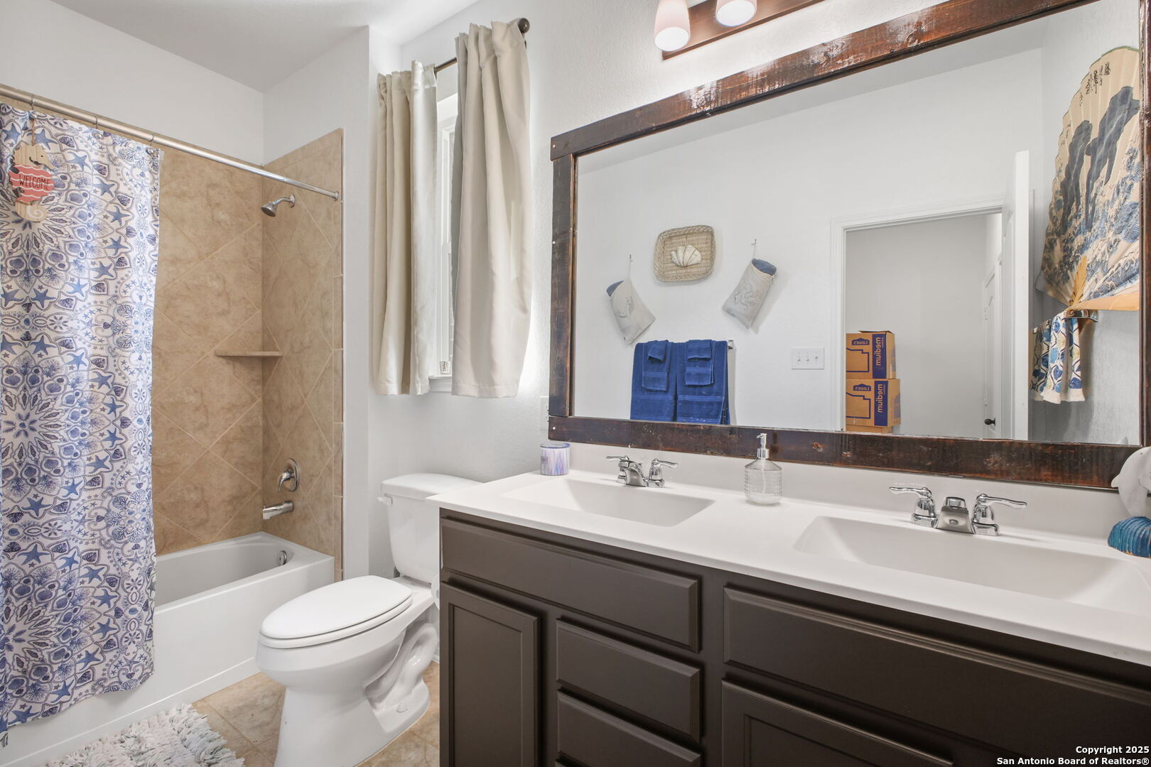 Step into easy living in this stunning one-level retreat, uniquely designed to offer a "treehouse effect" with relaxing greenbelt views and unparalleled backyard privacy. The home boasts a customized floor plan thoughtfully designed for today's lifestyle. The sprawling living room is a true sanctuary designed for grand gatherings and comfortable everyday living. Natural light floods through abundant windows, creating an inviting and airy atmosphere. Imagine hosting friends around your stylish and expansive entertaining granite peninsula, with sleek Whirlpool appliances making every gathering a breeze. Privacy abounds with a spacious separate owner's wing, two walk-in closets, and nearby flex room perfect for a nursery or home office. Your guests will feel at home in their own wing, featuring generously sized bedrooms. Framed mirrors in each bathroom complete this home's attention to detail. Extend your living outdoors on the unique, expansive porch, where you can soak in the views and unwind in the tranquility of the low-maintenance yard. You're just moments away from medical facilities, shopping and your favorite HEB, and exciting restaurants. Located in the highly desirable Texas Research Park, this gem offers easy access to a community pool, playground, scenic hiking trails, and a nearby public golf course. The Amazon Fulfillment Center is 15 minutes away, and you're a quick 30-minute drive to Medina Lake. This home is an incredible opportunity you don't want to miss. Schedule a viewing today and make this stunning retreat your new home!