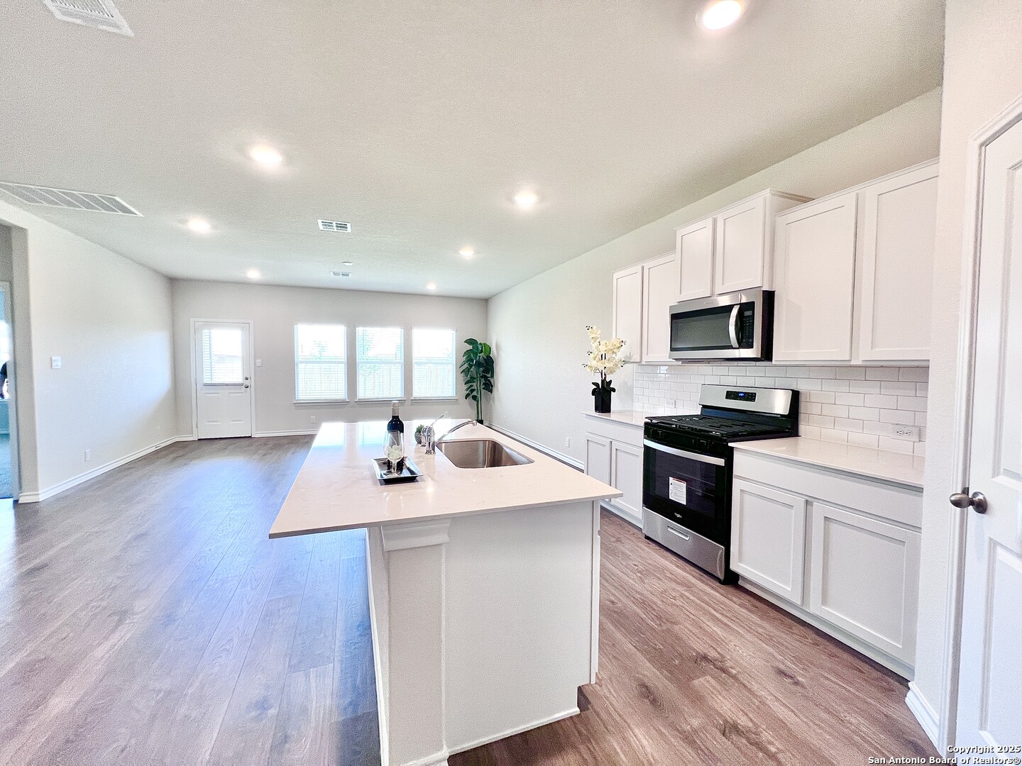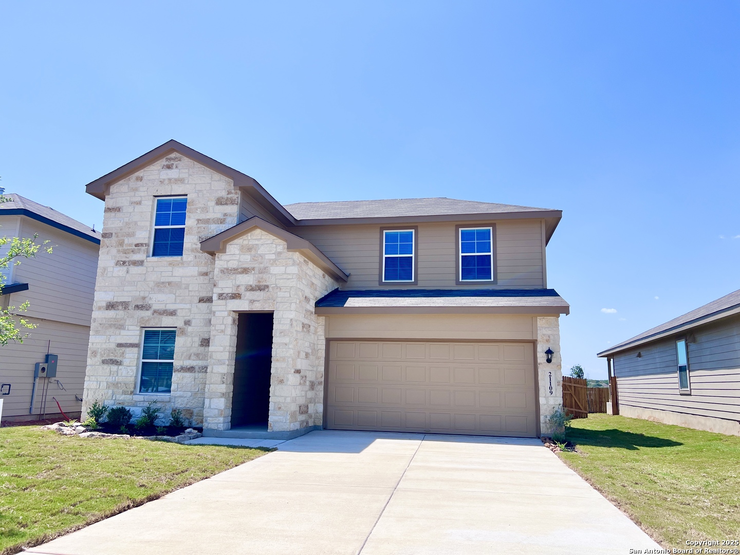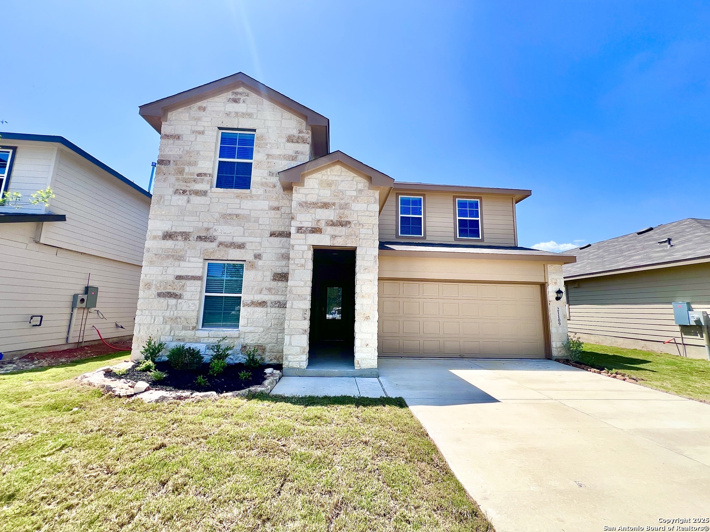 Spacious BRAND NEW Home in Brookstone Creek, NEISD. This beautiful two-story home offers 4 bedrooms (2 bedrooms downstairs) , 3 full bathrooms, and 2,257 sq. ft. of thoughtfully designed living space. The open-concept kitchen, dining, and living area features granite countertops, stainless steel appliances, gas cooking, a large island with dual sinks, and a walk-in corner pantry. The downstairs includes a private primary suite with a luxury walk-in shower, dual vanities, and a large walk-in closet, plus a secondary bedroom and full bath. Upstairs, you'll find a spacious loft, two additional bedrooms with walk-in closets, and another full bath. Enjoy outdoor living on the covered patio overlooking a fully landscaped and irrigated yard. Additional highlights include upgraded vinyl flooring, pre-plumbed water softener loop, 2-car garage, and smart home features. Conveniently located near Hwy 281 & Loop 1604, I-35, with shopping, dining, and grocery stores just minutes away. Schedule for your showing today, you will love it.
