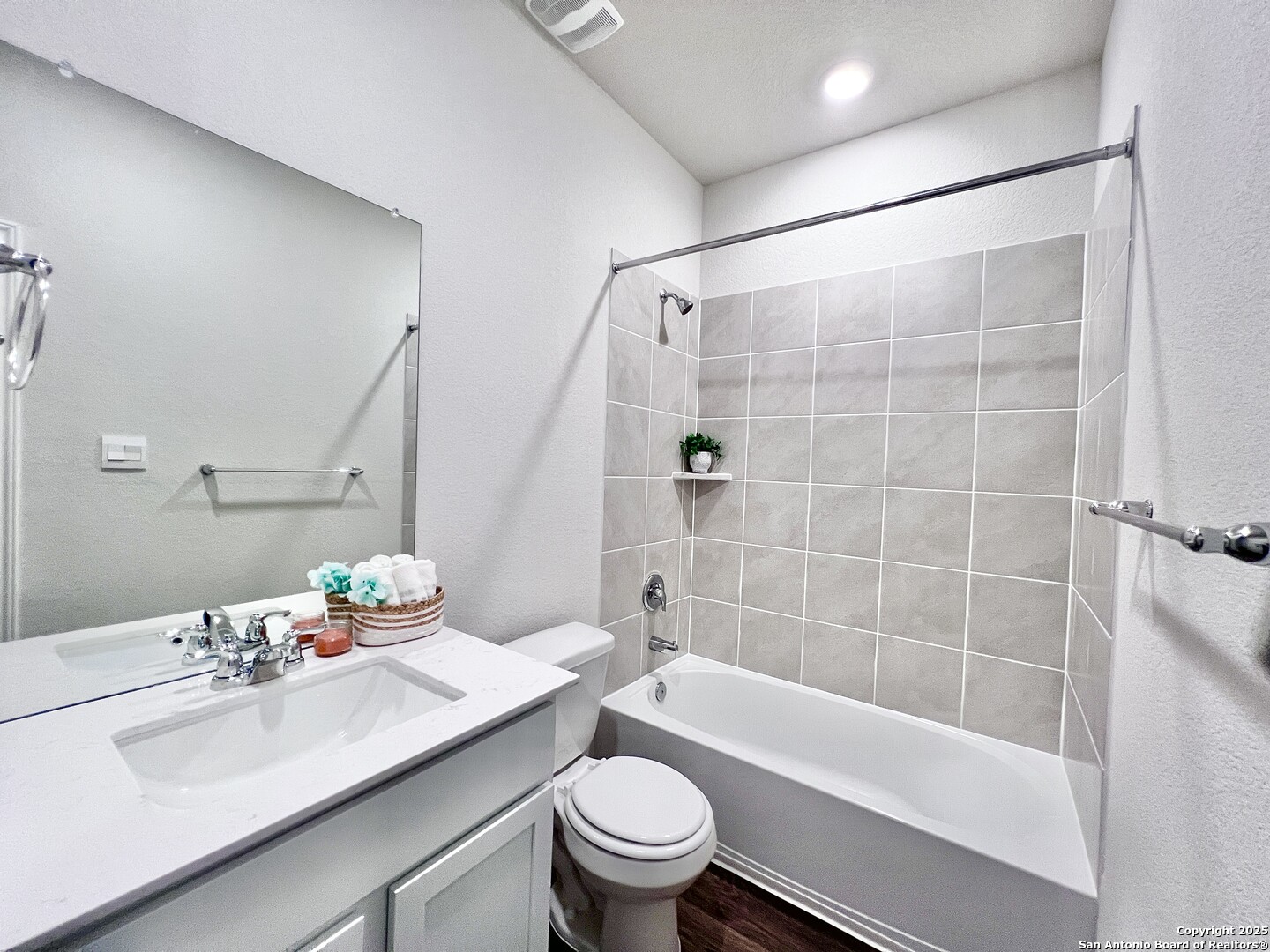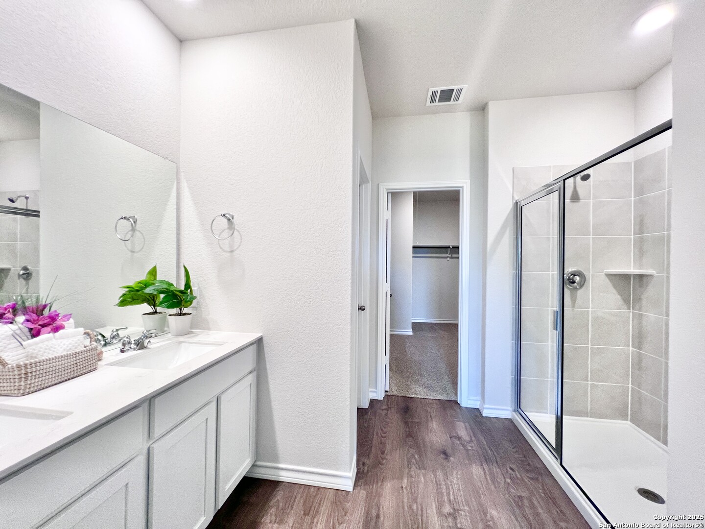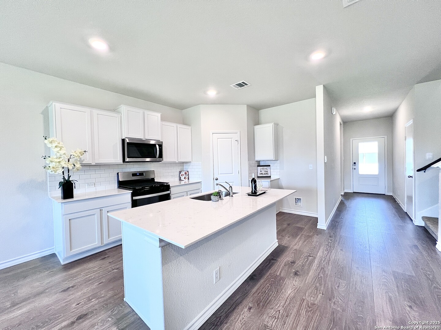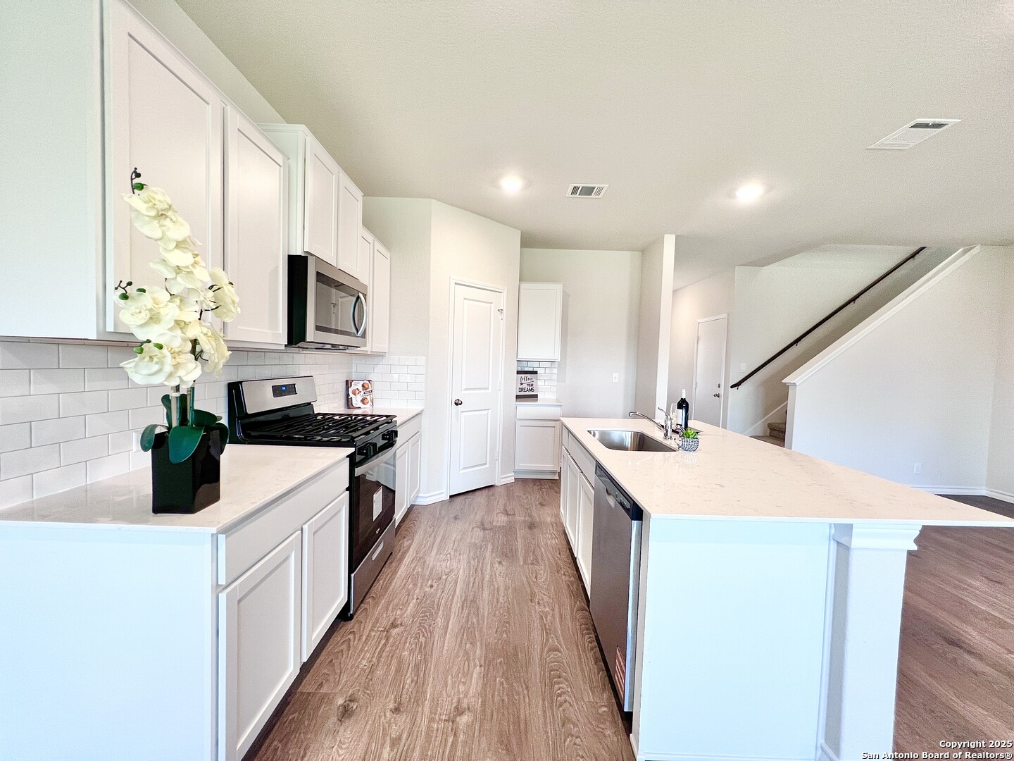 Spacious BRAND NEW Home in Brookstone Creek, NEISD. This beautiful two-story home offers 4 bedrooms (2 bedrooms downstairs) , 3 full bathrooms, and 2,257 sq. ft. of thoughtfully designed living space. The open-concept kitchen, dining, and living area features granite countertops, stainless steel appliances, gas cooking, a large island with dual sinks, and a walk-in corner pantry. The downstairs includes a private primary suite with a luxury walk-in shower, dual vanities, and a large walk-in closet, plus a secondary bedroom and full bath. Upstairs, you'll find a spacious loft, two additional bedrooms with walk-in closets, and another full bath. Enjoy outdoor living on the covered patio overlooking a fully landscaped and irrigated yard. Additional highlights include upgraded vinyl flooring, pre-plumbed water softener loop, 2-car garage, and smart home features. Conveniently located near Hwy 281 & Loop 1604, I-35, with shopping, dining, and grocery stores just minutes away. Schedule for your showing today, you will love it.