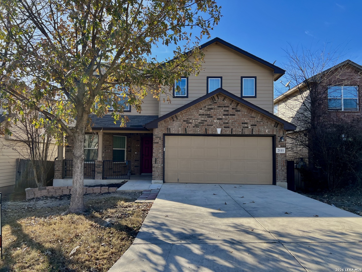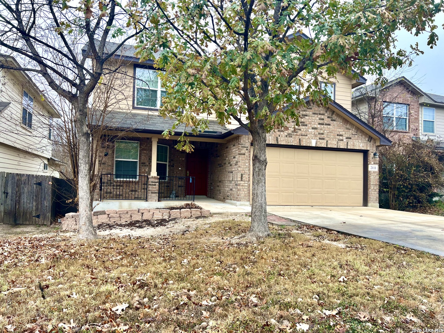 Modern comfort and serene living converge in a convenient location. This stunning home features 4 spacious bedrooms and 2.5 bathrooms, providing ample space for everyone. The open concept living area boasts soaring ceilings and a freshly painted white interior, creating a bright and airy atmosphere ready for your personal touch. The functional kitchen has granite countertops, a breakfast bar, built-in microwave, 42" cabinets, easy-clean backsplash, and a smooth cooktop. The downstairs primary suite offers an extended walk-in closet with bonus space under the stairs and a bathroom with a granite double vanity, separate garden tub/shower, and a private toilet closet. Upstairs, you'll find three generous bedrooms, a full bath, linen closet, and a large family room, perfect for keeping personal space private. Walk-in closets in multiple bedrooms provide ample storage space. Ceiling fans in every room ensure year-round comfort, while the elegant LVP and tile flooring throughout the home add beauty and durability. The property also features a 2-car garage with insulated doors, making it ideal for a workshop or workout area. The private large backyard with a porch is perfect for outdoor entertainment or morning coffee. The home backs up to a private road and green belt, ensuring serene views. Additional street parking and the community mailbox across the street provide convenience for you and guests. Enjoy the benefits of no city taxes, resulting in lower monthly payments compared to similar properties. Community amenities include a pool, playground, and picnic area, perfect for connecting with neighbors. Conveniently located just blocks from Loop 1604, north of Hwy 90, this home offers a quick commute to shopping, Lackland AFB, or downtown. Don't miss the opportunity to make 2111 Emerald Edge your new home. Schedule a viewing today and experience the perfect blend of comfort, convenience, and community!