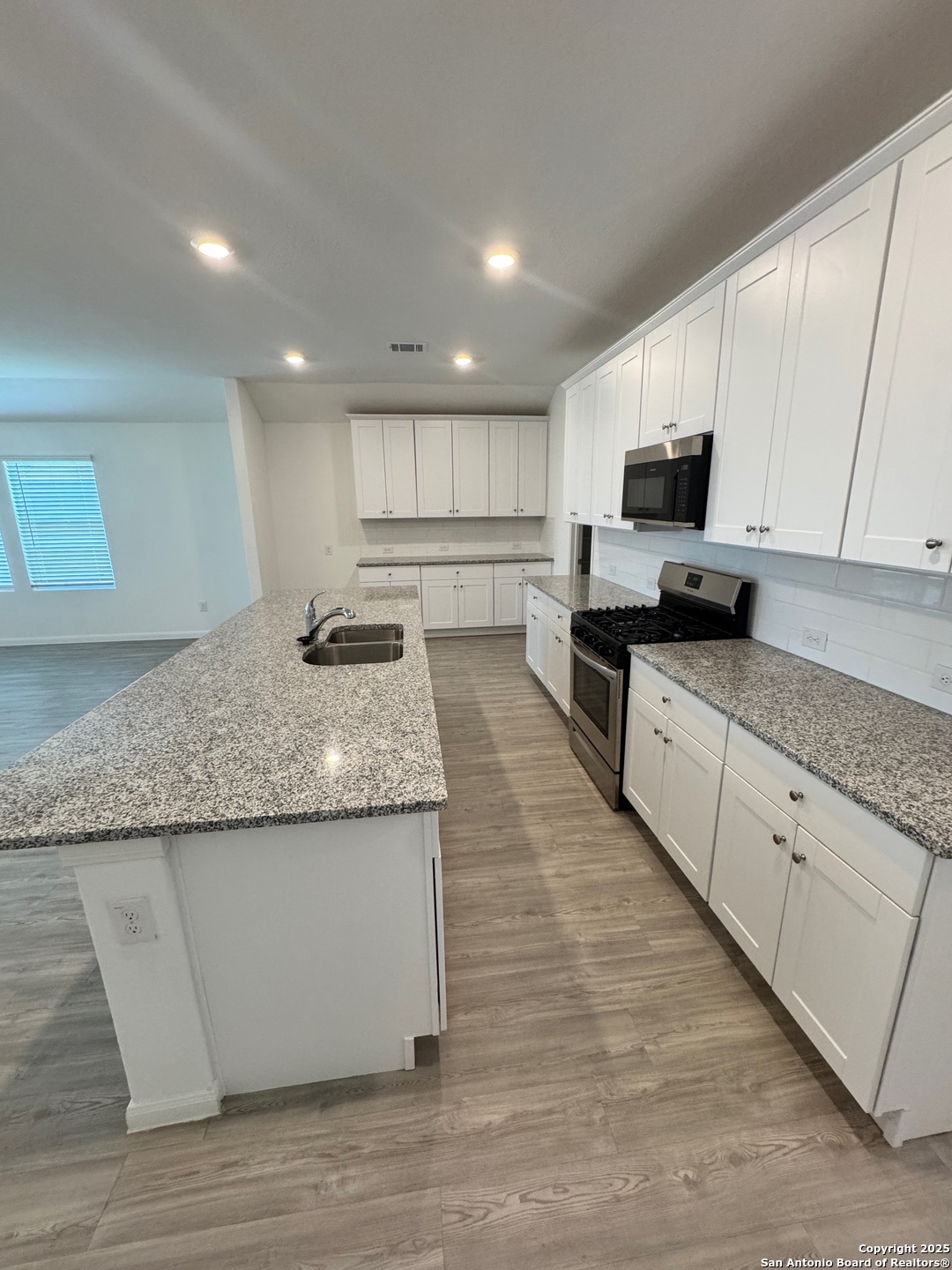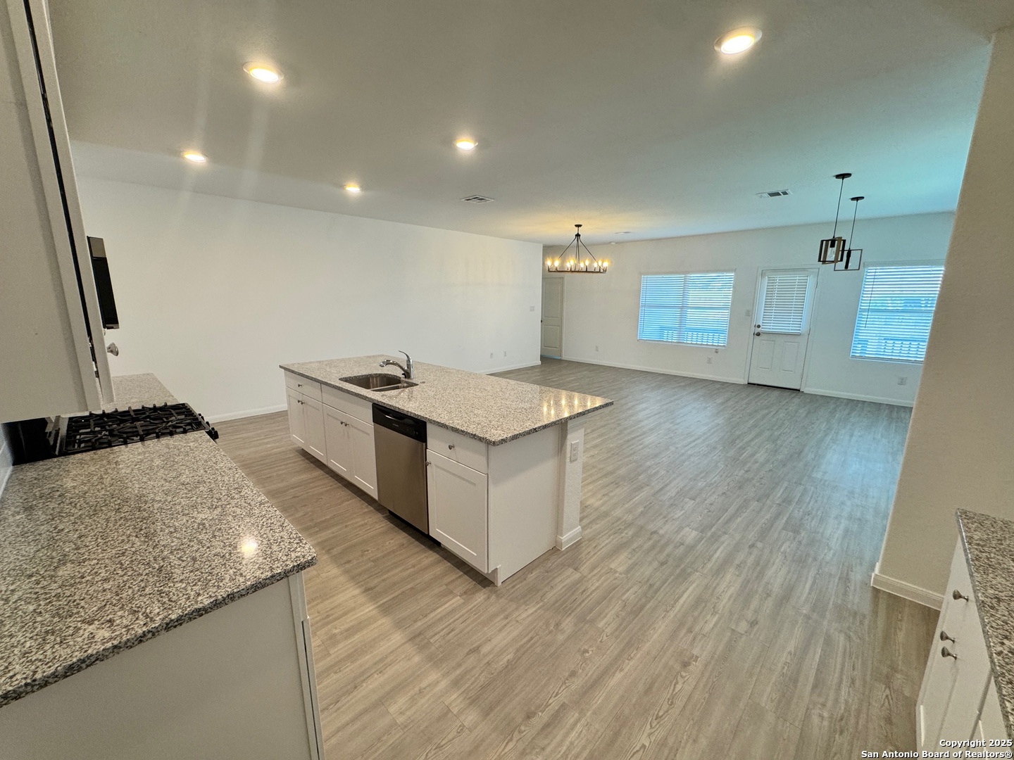 A Newly built and Modern home, built in 2022 and offering a unique blend of comfort, style, and convenience. This home caters to modern living with a well thought-out open concept floor plan that creates an inviting atmosphere perfect for entertaining or simply spending quality time with family. The true heart of this home is the kitchen; a chef's dream with white cabinets, granite countertops, a subway tile backsplash, 4-burner gas stove, and a large granite island that offers extra seating space and a walk-in pantry. Vinly flooring throughout living area. Bedrooms are nicely sized with vinyl flooring throughout home. Utility room for washer and dryer, nicely sized backyard with a large covered patio area.. A 2 Car garage with a new epoxy finish. This is a smoke free home.