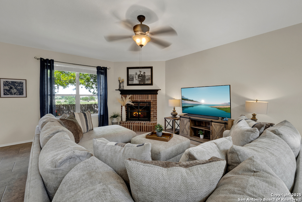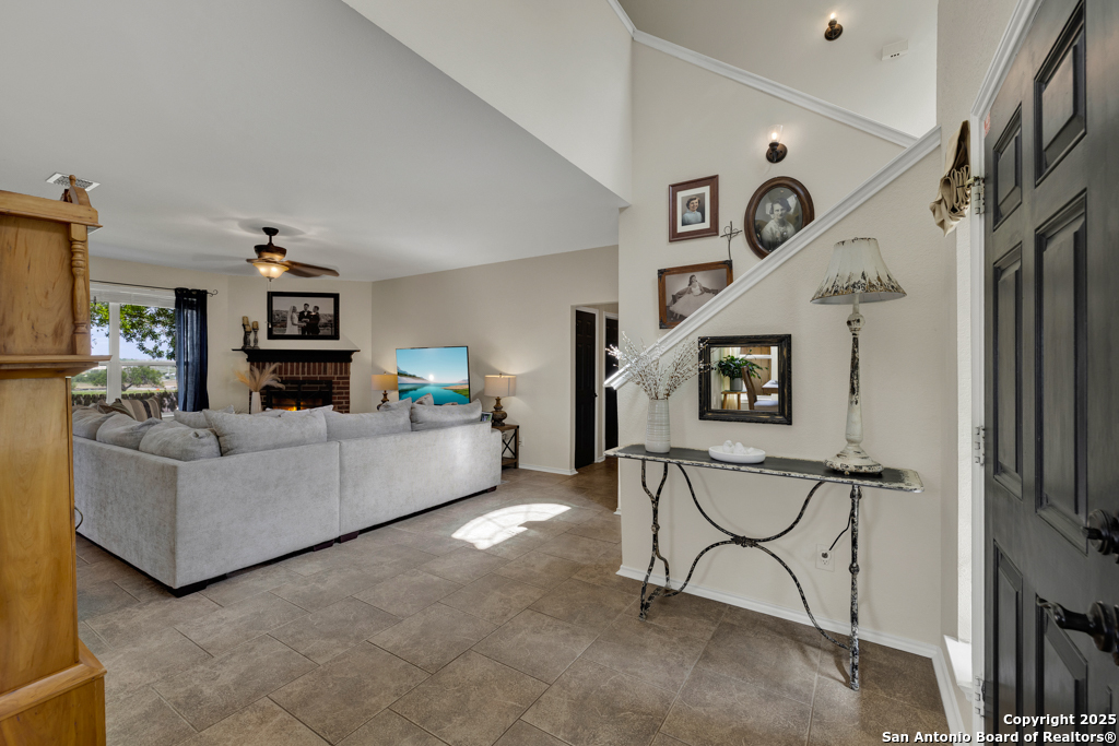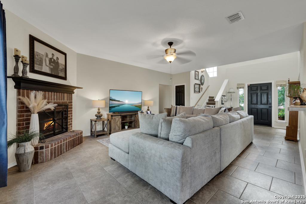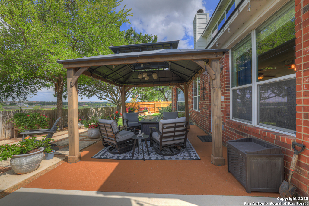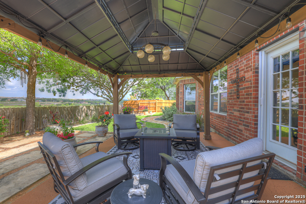 Welcome to 2114 Jasons West Ct - Spacious Comfort with Countryside Views in Sought-After Voss Farms! Nestled on a quiet half cul-de-sac in the desirable Voss Farms community, this beautifully maintained 4-bedroom, 3.5-bathroom home offers 2,465 sq ft of well-designed living space with thoughtful upgrades and stunning views. The inviting interior features a formal dining room, a cozy corner wood-burning fireplace, and a spacious island kitchen with custom solid wood cabinets-perfect for everyday living and entertaining. The primary bedroom is conveniently located on the main floor, providing a private retreat from the secondary bedrooms upstairs. Upstairs, enjoy a large second living area, three generously sized bedrooms, and two full bathrooms-including one en suite, ideal for guests or multigenerational living. Enjoy peace of mind with recent updates, including a new roof, HVAC system, and water heater. Step outside to your beautifully landscaped backyard oasis, offering multiple sitting areas, a firepit, raised garden beds, a covered patio, and a separate covered grilling area-all with peaceful countryside views and breathtaking sunsets that make every evening feel like a getaway. Residents of Voss Farms enjoy two community pools, a clubhouse available for private events, walking trails, and neighborhood events throughout the year. Conveniently located near NBISD schools, shopping, dining, local rivers, major highways, and downtown New Braunfels. This move-in ready home offers space, comfort, and scenic beauty-schedule your private showing today!