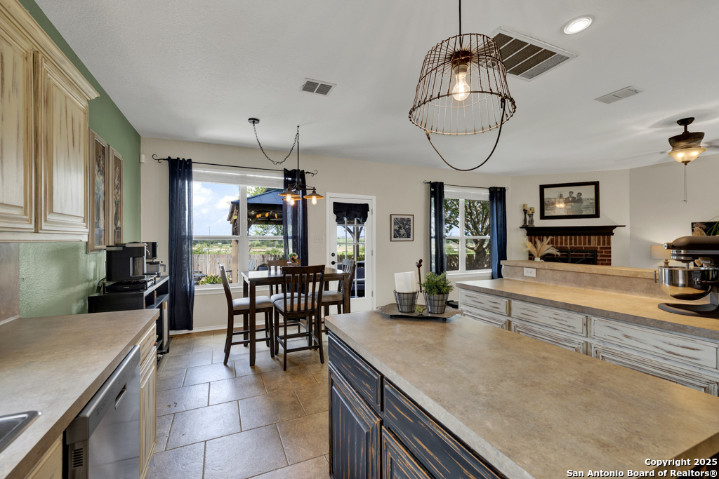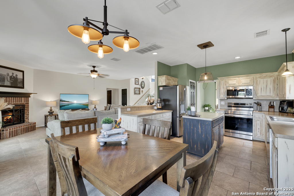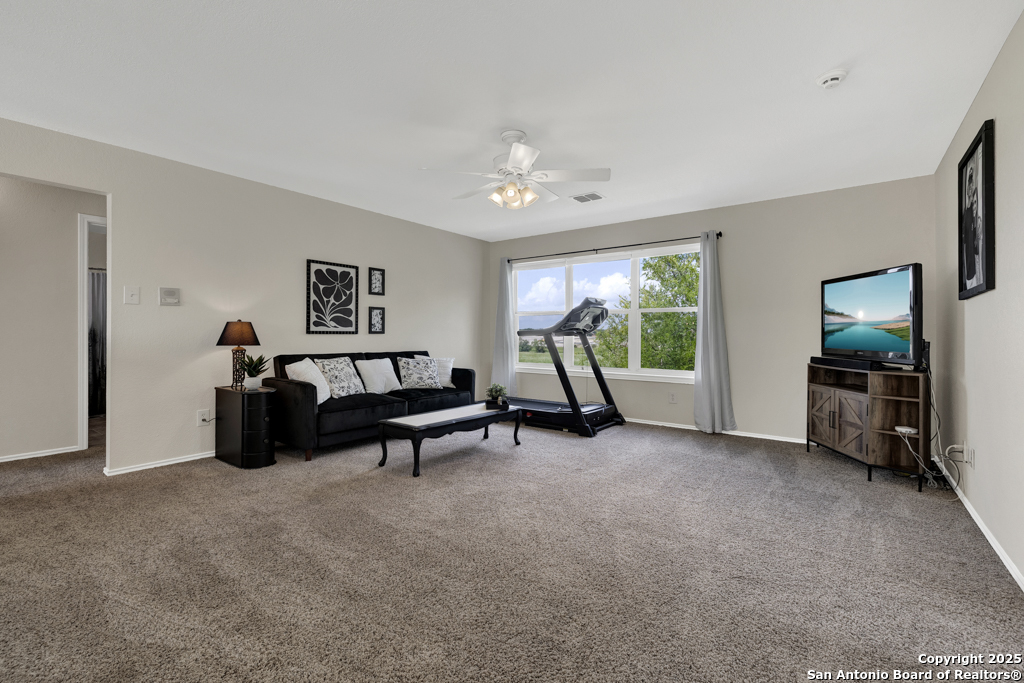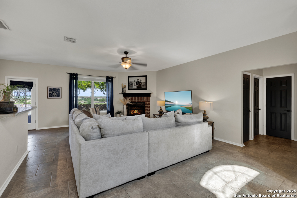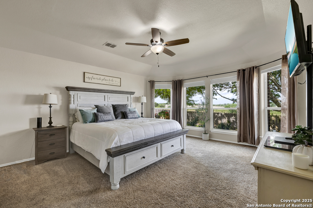 Welcome to 2114 Jasons West Ct - Spacious Comfort with Countryside Views in Sought-After Voss Farms! Nestled on a quiet half cul-de-sac in the desirable Voss Farms community, this beautifully maintained 4-bedroom, 3.5-bathroom home offers 2,465 sq ft of well-designed living space with thoughtful upgrades and stunning views. The inviting interior features a formal dining room, a cozy corner wood-burning fireplace, and a spacious island kitchen with custom solid wood cabinets-perfect for everyday living and entertaining. The primary bedroom is conveniently located on the main floor, providing a private retreat from the secondary bedrooms upstairs. Upstairs, enjoy a large second living area, three generously sized bedrooms, and two full bathrooms-including one en suite, ideal for guests or multigenerational living. Enjoy peace of mind with recent updates, including a new roof, HVAC system, and water heater. Step outside to your beautifully landscaped backyard oasis, offering multiple sitting areas, a firepit, raised garden beds, a covered patio, and a separate covered grilling area-all with peaceful countryside views and breathtaking sunsets that make every evening feel like a getaway. Residents of Voss Farms enjoy two community pools, a clubhouse available for private events, walking trails, and neighborhood events throughout the year. Conveniently located near NBISD schools, shopping, dining, local rivers, major highways, and downtown New Braunfels. This move-in ready home offers space, comfort, and scenic beauty-schedule your private showing today!