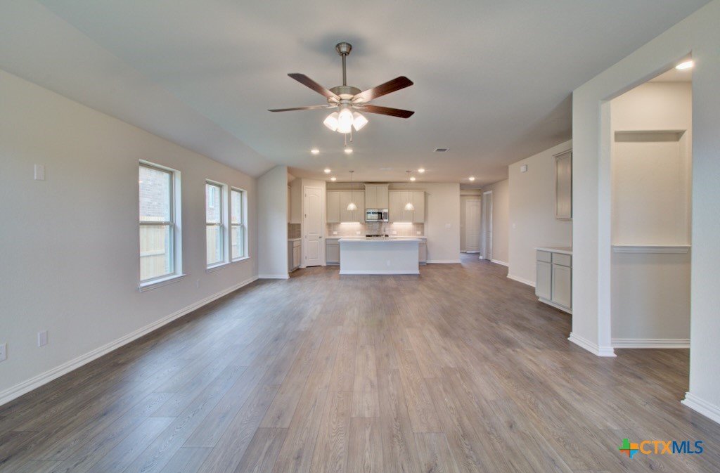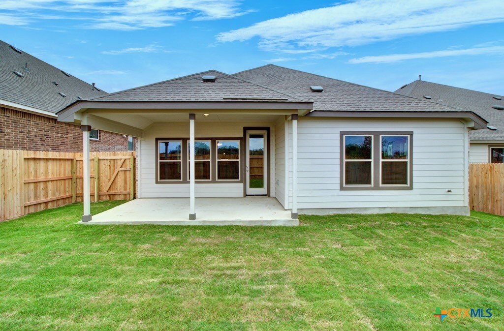 Welcome to the Fiji plan by DRB Homes, a thoughtfully designed single story residence offering three bedrooms and two bathrooms. The exterior showcases a welcoming blend of brick and stone, along with an extended covered patio that is perfect for outdoor relaxation. Additional exterior features include a full yard sprinkler system, a six foot privacy fence with a gate, and a spacious two car garage that provides convenience and functionality. Inside, the kitchen serves as the true heart of the home. It offers forty two inch wood cabinetry with elegant crown molding, stainless steel appliances, a generous kitchen island with an undermount sink, a gas cooktop paired with a built in under cabinet oven, a corner pantry, and beautiful omegastone countertops with a ceramic tile backsplash. This space is designed for both everyday meals and comfortable entertaining. The owner suite is located at the rear of the home for added privacy. It features a Marlena dual sink vanity with forty two inch mirrors, a large and thoughtfully arranged closet, a private water closet, a linen closet, and a spacious free standing shower with ceramic tile surround and a glass shower door. Every detail has been crafted to create a calm and inviting retreat. Residents of Stream Waters enjoy access to a beautiful natural brook that winds through the community, as well as pickleball and sports courts, open fields, and scenic walking trails. Nearby, historic downtown Seguin offers charming cafes, locally owned shops, and genuine small town hospitality. This vibrant setting provides the perfect backdrop for a relaxing and enjoyable lifestyle.