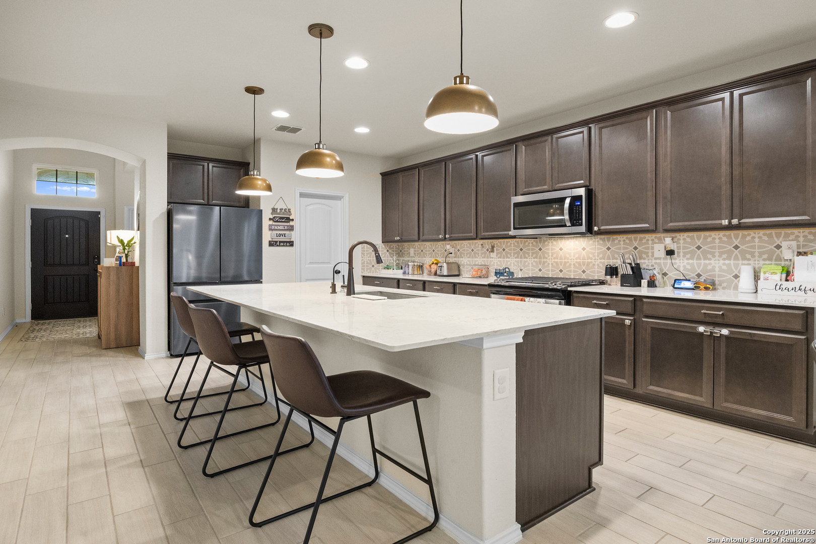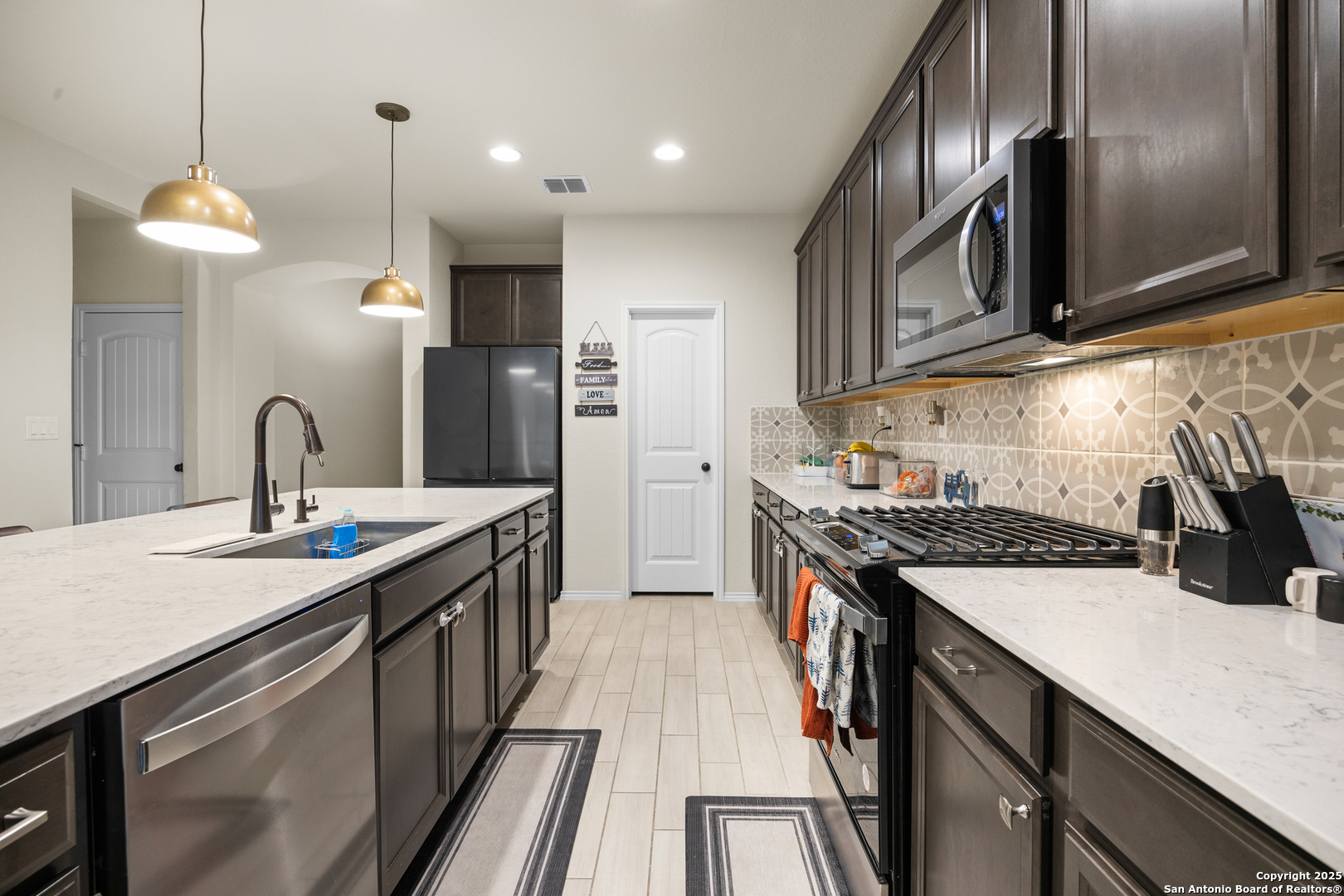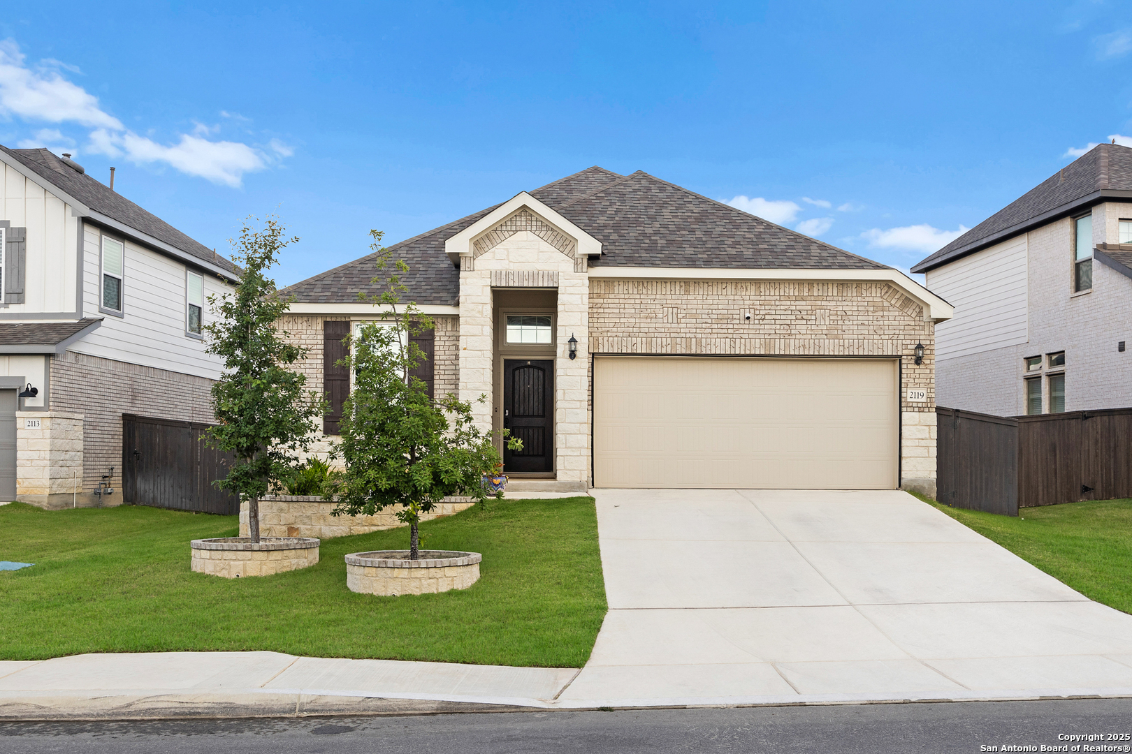 Welcome home to 2119 Dalhart. Just minutes away from Alamo Ranch, Lackland Air Force Base, Just 2 years old and extremely well kept and clean. You will be greeted at the foyer with 12-foot ceilings leading into an open floor concept. At the center of your kitchen, a quartz countertop island sits perfectly for entertaining, and enough room for a table to dig into your meal. The best part? Gas cooking! Moving through the home, you will find 3 bedrooms with the primary bedroom featuring a double vanity, garden tub, and shower combo. Kick off your shoes in the bedroom and enjoy the cooling effect that flows throughout the home thanks to the glass-tinted windows and programmable thermostat. Ask your realtor to add to your showing list today.VA assumable loan at 5.25% Up to $8000 in incentives.