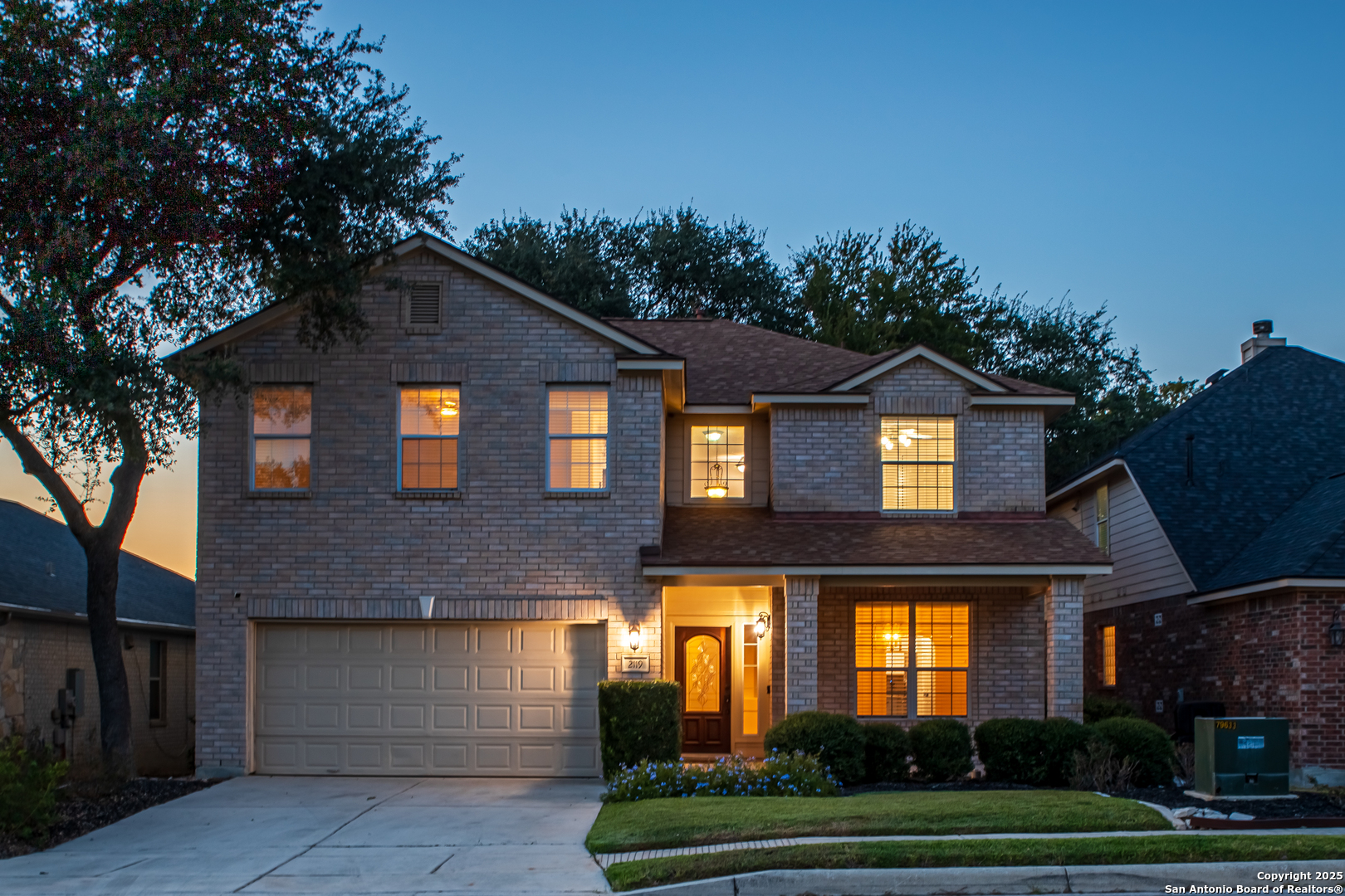 This stunning two-story home offers the perfect blend of comfort, privacy, and natural beauty, tucked away in a quiet cul-de-sac and backing to a true greenbelt. Featuring 4 spacious bedrooms, altogether located on the second level, 2.5 bathrooms, and a large upstairs game room. Downstairs, you'll find a versatile formal dining room that can easily serve as a home office, along with a bright and open kitchen complete with a breakfast area, generous cabinet storage, and ample countertop space. With no carpet throughout and abundant natural light, the home feels airy, clean, and inviting. Step outside to a scenic backyard oasis with a stone patio and mature trees. Located in the Mountain Lodge community, residents enjoy access to top-rated schools, two pools, a playground, basketball courts, and the added benefit of no city taxes! Seller is offering $10k in in buyer concessions!