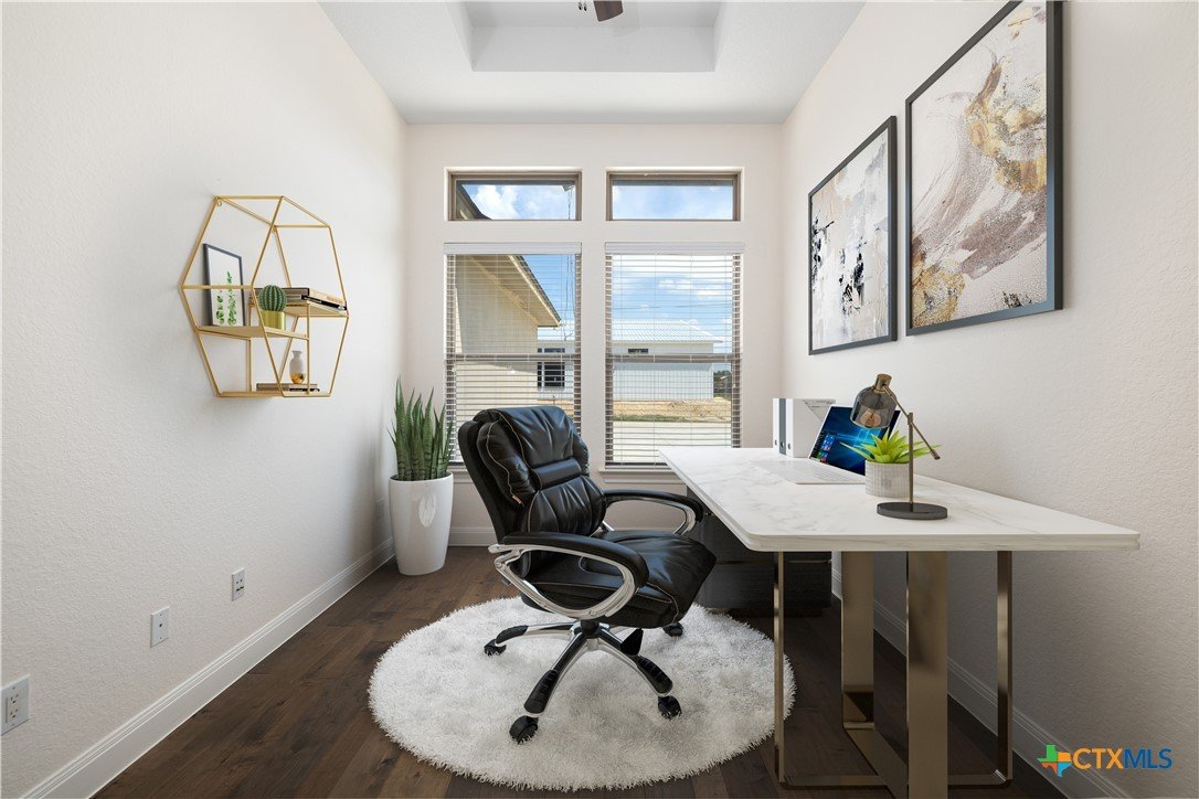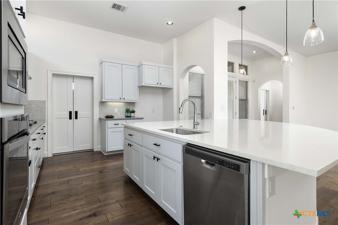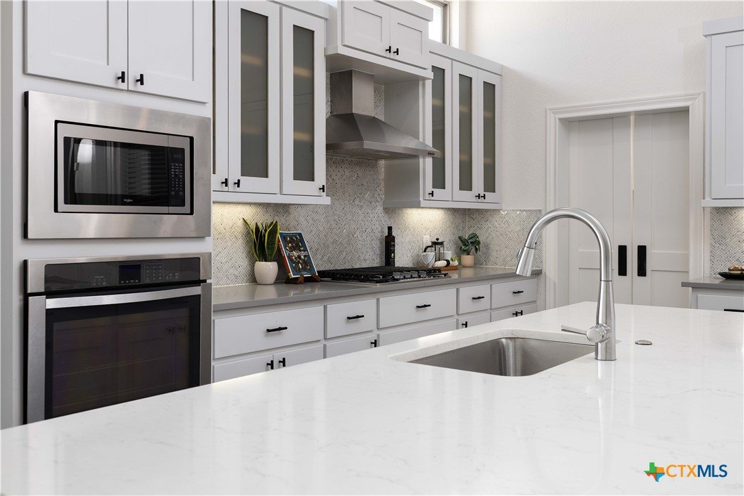 Set on just over an acre with no HOA, this property perfectly embodies the Texas lifestyle, combining modern finishes, spacious living, and outdoor amenities designed for everyday comfort and entertaining. With dual entry access and a layout that flows beautifully, it's a home that truly fits the way you want to live. The living area welcomes you with high ceilings, abundant natural light, and a beautiful brick fireplace. The kitchen shines with sleek countertops, an abundance of cabinetry, a large island, and gas cooking, making gathering with family and friends effortless. Off the main entry, a private office with French doors creates the ideal space for working from home or managing daily tasks. The primary suite is set apart for privacy and designed as a true retreat, featuring its own outdoor access, rustic barn doors, and a stunning en-suite with a large custom walk-in shower and bench seating. Four additional bedrooms are thoughtfully designed for comfort and space, with two offering en-suite baths. A spacious laundry room with built-in shelving and storage ensures everyday organization is simple and functional. Throughout the home, hard surface flooring provides both durability and style, enhancing each space. Outdoors, the property delivers the perfect backdrop for Texas living. A gorgeous pool with an adjoined spa and propane firepits is the centerpiece, framed by country views and complemented by a large deck showcasing detailed wood craftsmanship. Whether relaxing in the spa, hosting gatherings on the deck, or enjoying wide-open skies, this space was made for both relaxation and entertainment. With no HOA and room to spread out, this home offers the freedom, style, and amenities you've been searching for.