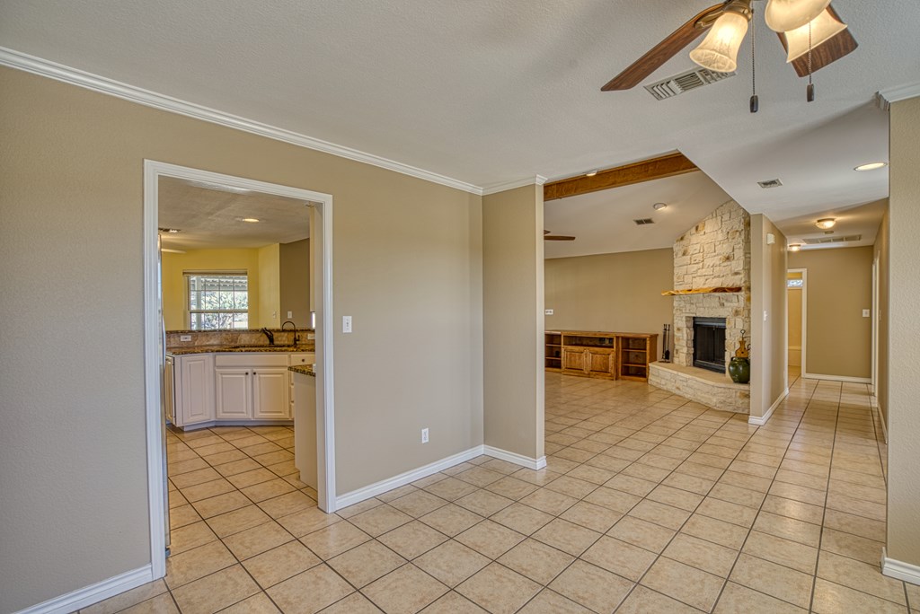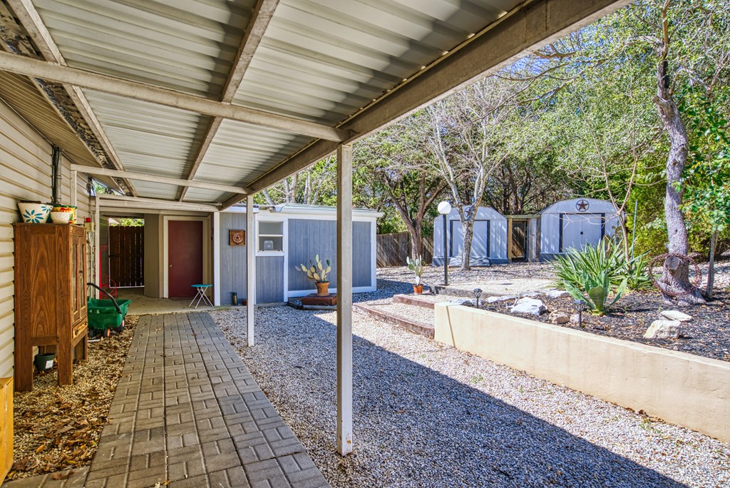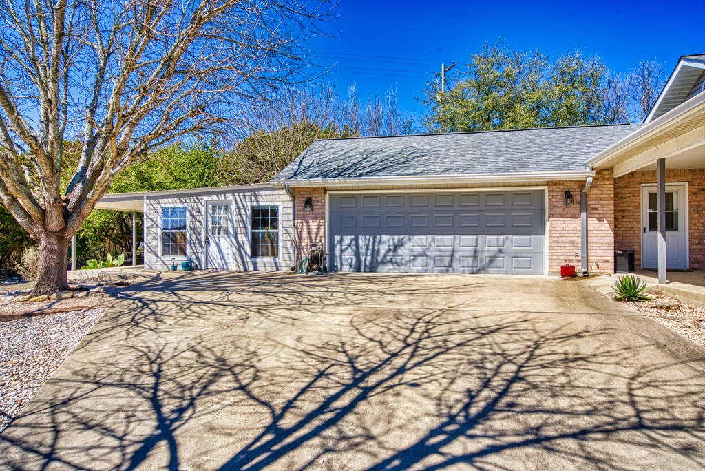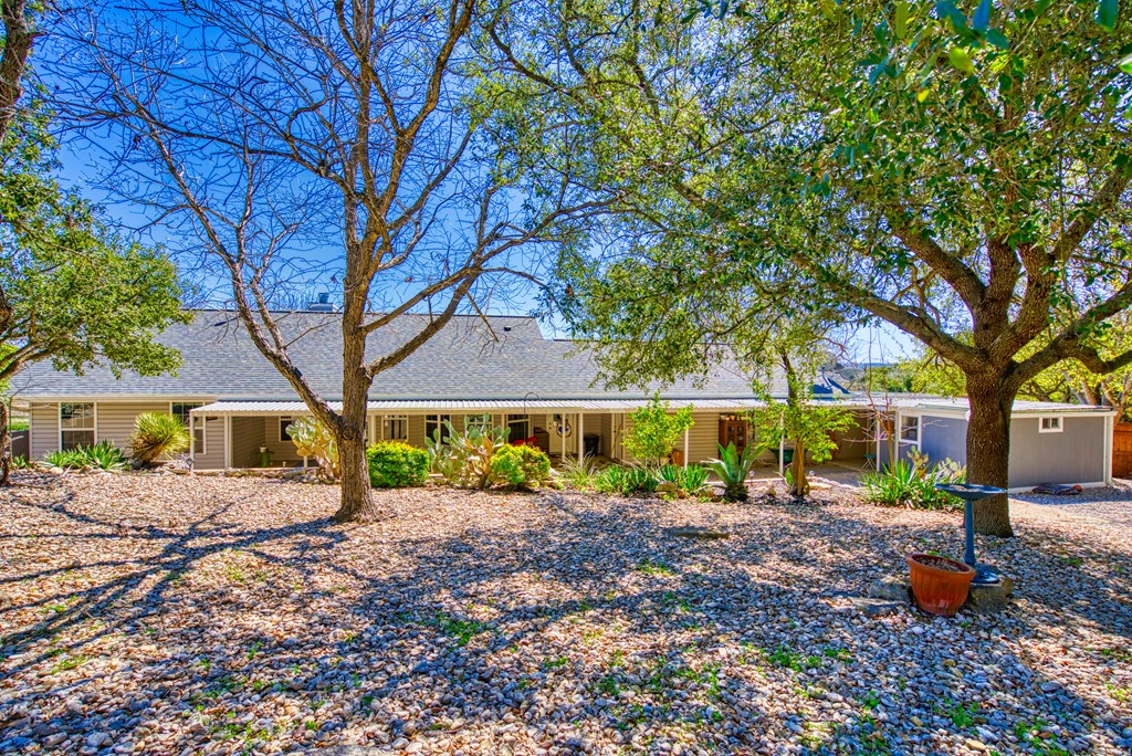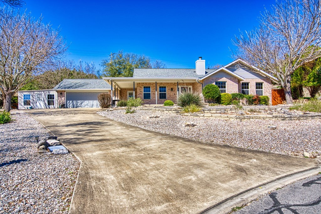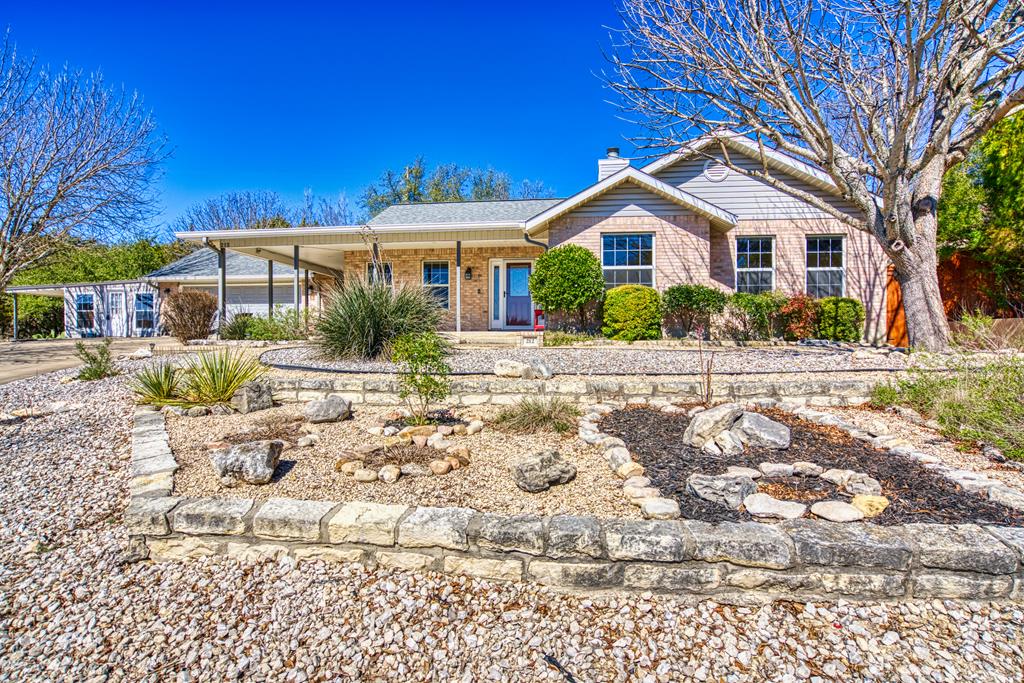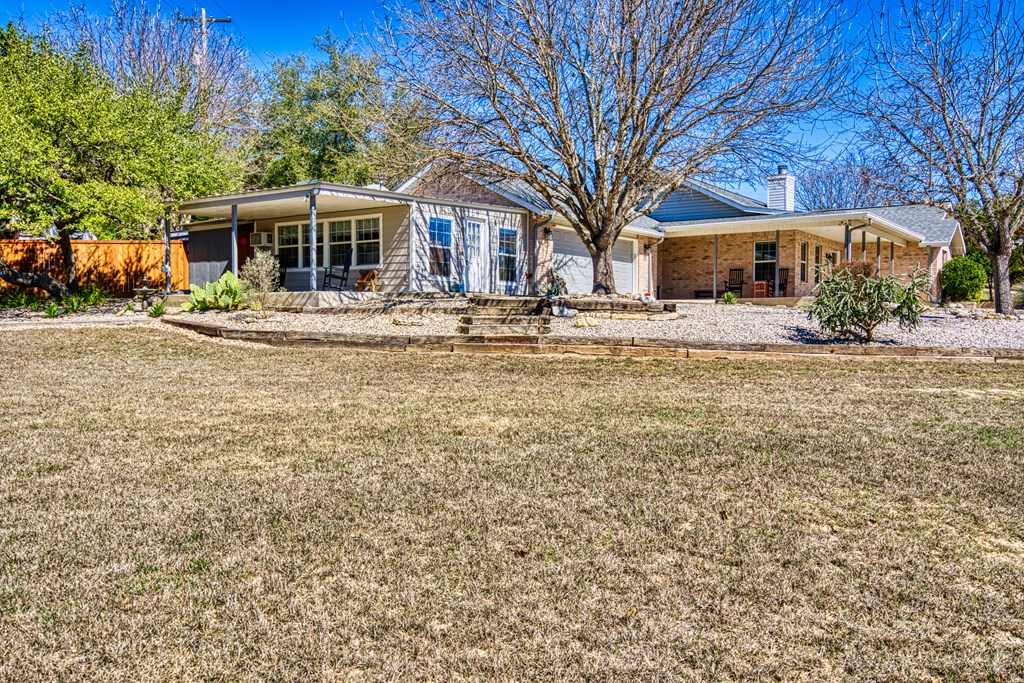 Charming 3 bedroom, 2 bathroom home on spacious double lot. This home has tons of curb appeal with its nicely done landscaping and wrap around covered front porch. Off of the garage, there is a really nice bonus room that would make a great office or craft room. It has lots of windows and its own private covered patio that overlooks the cleared bonus lot. Inside the home, you will find a split bedroom, open floor plan with tile completely throughout the home. The kitchen features granite counter-tops and eating bar that opens up to a nice breakfast area with bay windows. The living room is open to the kitchen, and has a vaulted ceiling with a masonry fireplace as its corner piece. The master suite also has a vaulted ceiling with a nice sized walk-in closet. The master bath has double sinks, a soaking tub, a shower stall. Not only will you find the front porch a great place to sit your favorite rocker to enjoy the hilltop view down the street, but the back of the home has a full length covered porch as well. Off the back porch is a great little workshop and half bath, perfect for a gardener or tinkerer. There are also two good sized storage buildings tucked away to the side.