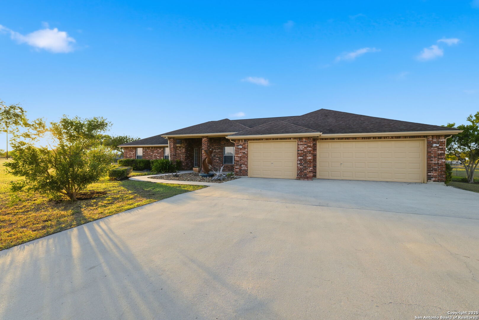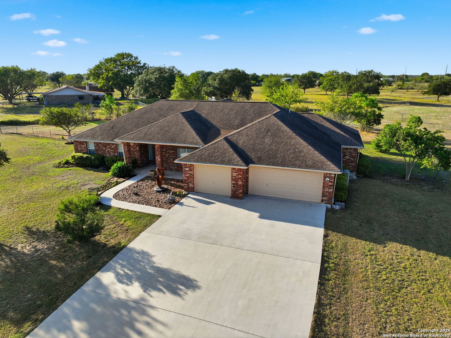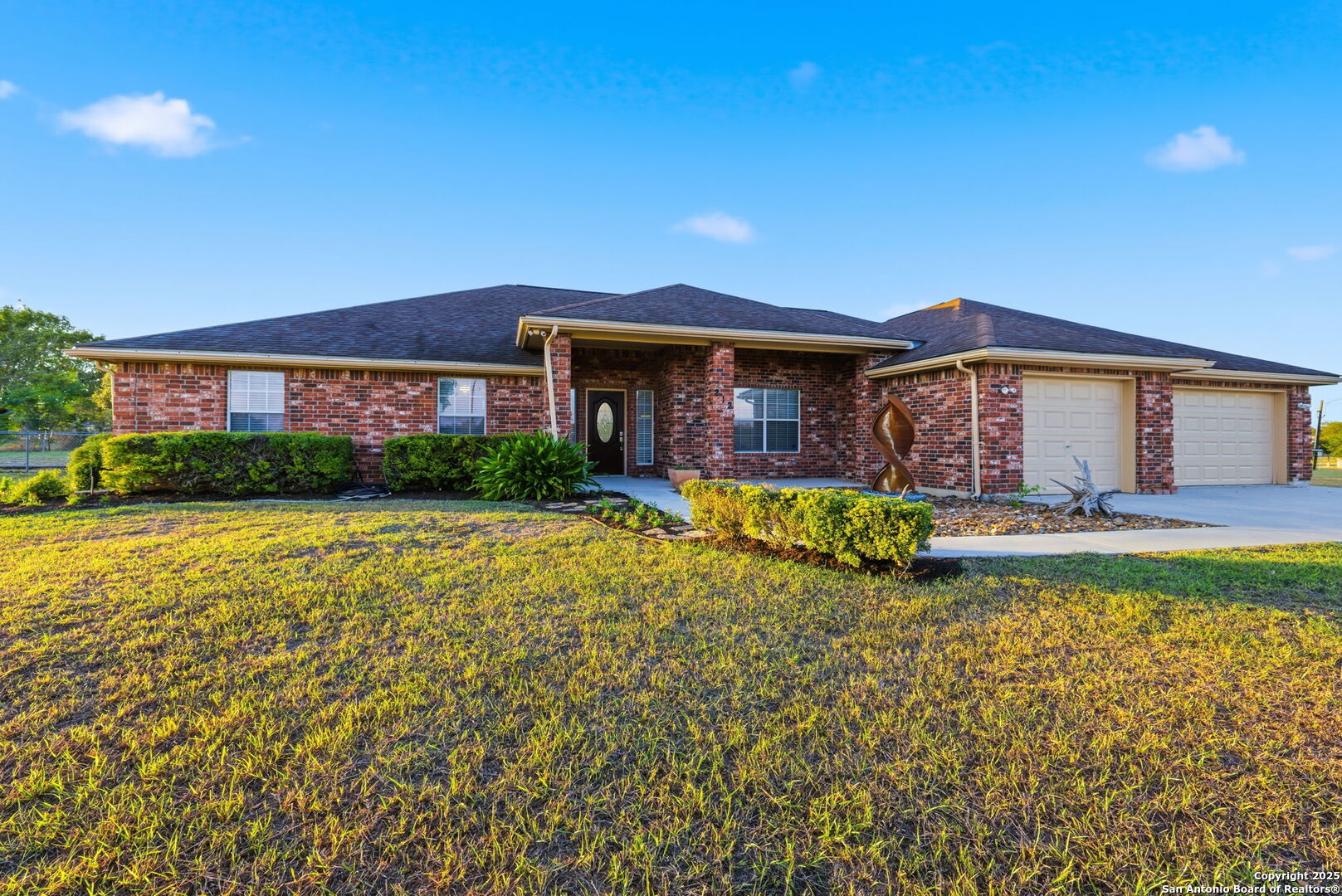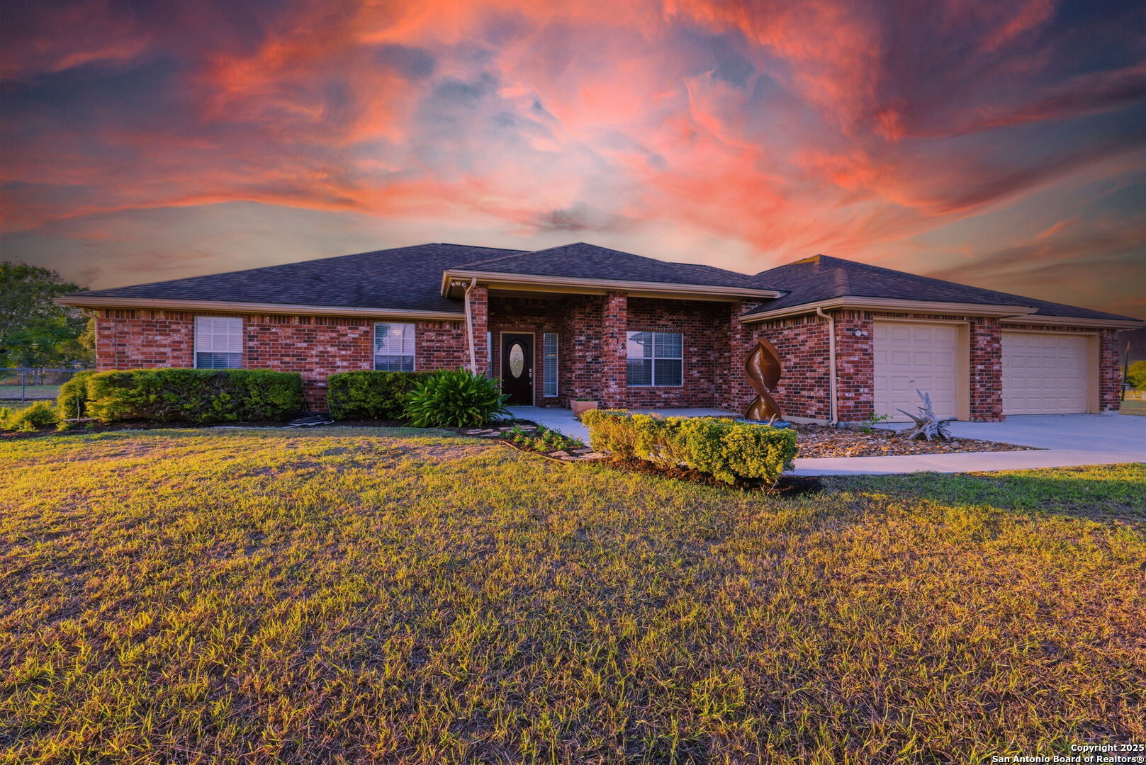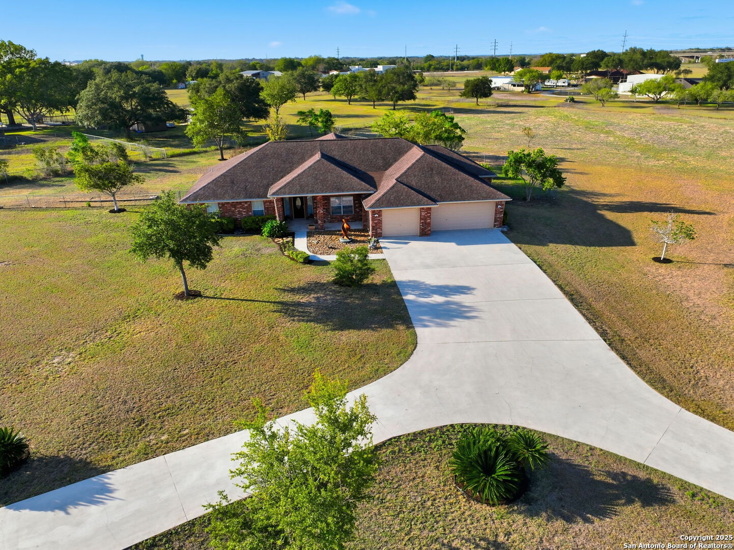 Kick back and watch the sun set from the porch of your new country home. Welcome to 212 Sunbelt Loop E in the peaceful Sunrise Acres community of Seguin. Situated on 2.51 acres, this beautifully maintained 4-bedroom (dual primary suites!) plus office, 3-bath ranch-style home offers nearly 3,000 sq ft of comfortable living space. The spacious open floor plan features a large, airy living area that flows into the kitchen and dining spaces perfect for family gatherings and entertaining. The home includes two primary suites, each with its own full bath and extremely generous closet space making it ideal for multigenerational living, guest accommodations, or extended family. Tons of storage throughout, plus a huge 3 car garage. Enjoy the freedom of country living with modern convenience. The expansive property provides ample room for outdoor entertaining, gardening, or adding a workshop and/or pool. This property is actually 2 lots and can be subdivided by the new owner. Wide-open skies and quiet surroundings create a serene retreat, while still being just minutes from Seguin's shopping, dining, and easy access to I-10. Low 1.962 Tax Rate and being offered way below tax appraised value! This rare property combines space, versatility, and comfort-everything you've been looking for in your next Texas home.