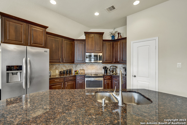 Welcome to this dazzling one story home in Mill Creek Crossing in NAVARRO ISD 4/2/2, Two playground areas, High entry foyer, Open concept floor plan, high ceilings, Office/Study, Granite counters, double vanities walk-in closets, and is equipped with stainless steel applliances, Tile throughout the home, Carpet in the bedrooms. The backyard offers plenty of room for play or entertaining. Commmuting to New Braunfels, San Marcos, San Antonio and Austin IH-10 just a short drive in mins.