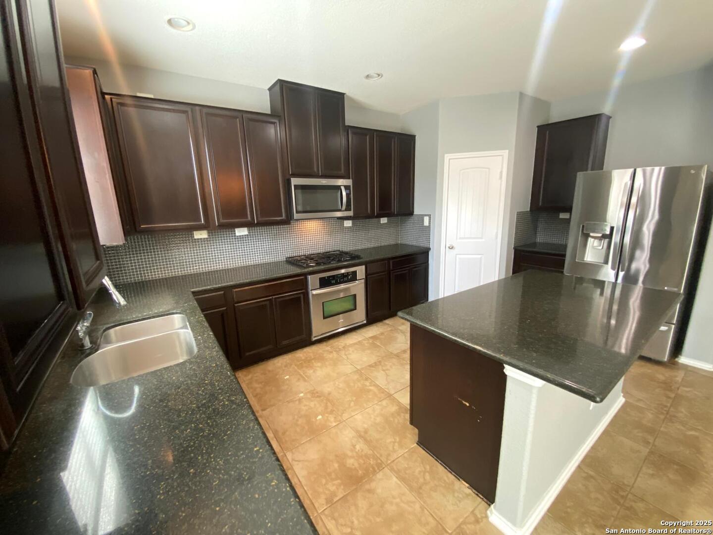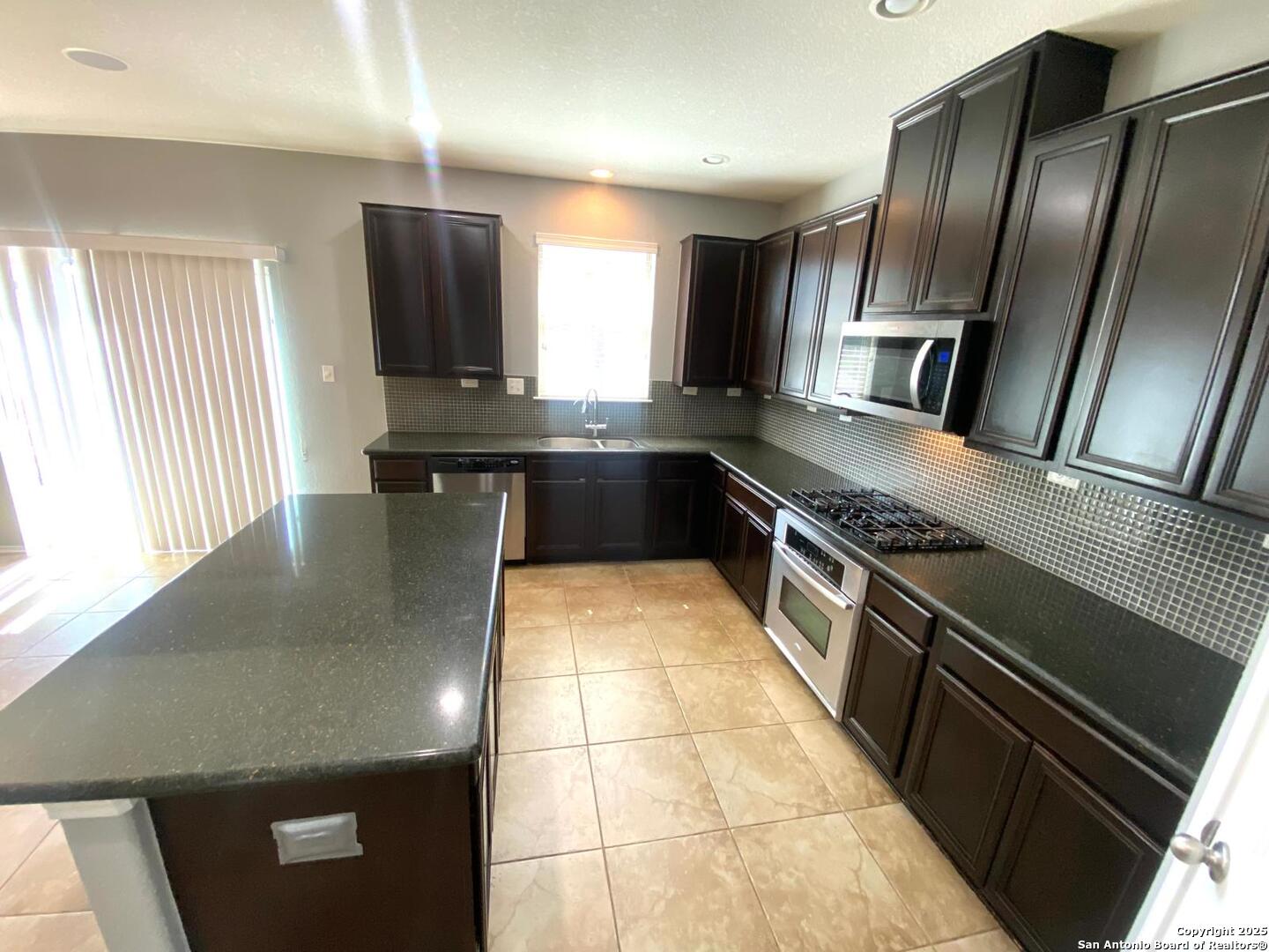 Located in the highly desirable Saddle Mountain community of Stone Oak, this 1.5-story gem offers the perfect blend of Hill Country charm and city convenience. 4 bedrooms & 3 full baths! Enjoy easy access to top-rated shopping, restaurants, and major highways for a stress-free commute. Spacious kitchen boasts large island-complete with a sink-makes meal prep and casual dining a breeze and is equipped with stainless steel appliances: gas stove, built-in microwave, dishwasher, and Fridge. Master bedroom bath