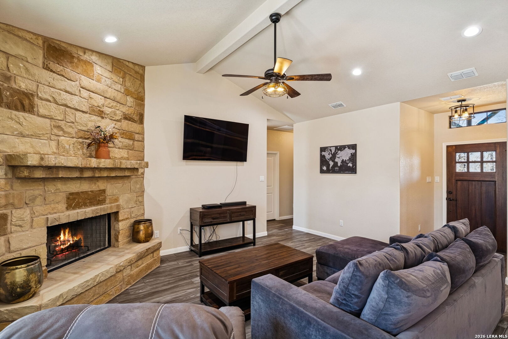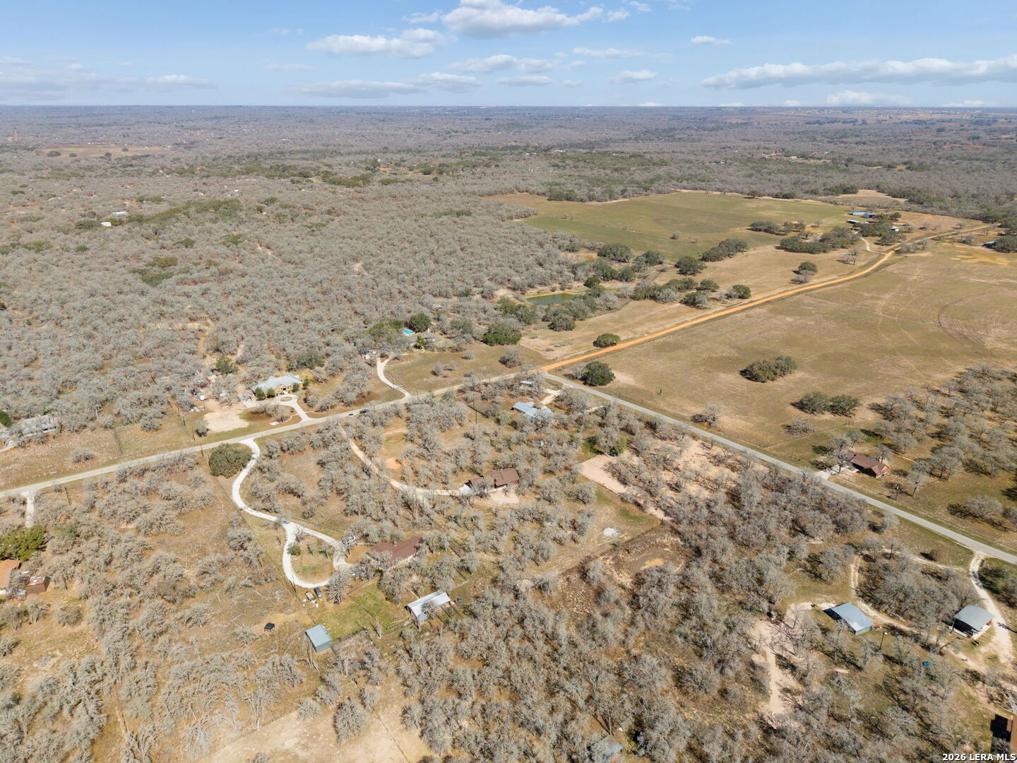 Tucked away on 3.64 gated and fully fenced acres, this 2021 custom-built 3 bedroom, 2 bath + office home offers the perfect blend of privacy, comfort, and country charm. Set back off the road and surrounded by gorgeous mature trees, you'll love the peaceful setting and added seclusion. Inside, the home has been meticulously maintained and features custom cabinetry, granite countertops, a large island, and ceramic tile flooring that mimics the look of wood throughout. Thoughtful details like ceiling fans throughout and a dedicated office space make this home as functional as it is beautiful. The primary suite offers a relaxing retreat with his and her closets and a spacious en-suite bath. Step outside to enjoy both front and back covered patios, complete with exterior lighting, perfect for morning coffee or winding down in the evenings. Out front, a pond adds to the property's charm (currently impacted by drought conditions), while the acreage provides plenty of space to make it your own. Enjoy the benefits of NO HOA and NO city taxes, all while being conveniently located just 7 miles from H-E-B, 7 miles to Floresville High School, and under 30 miles to San Antonio. If you've been looking for a move-in ready home with land, privacy, and modern finishes, this one checks all the boxes. Horses allowed