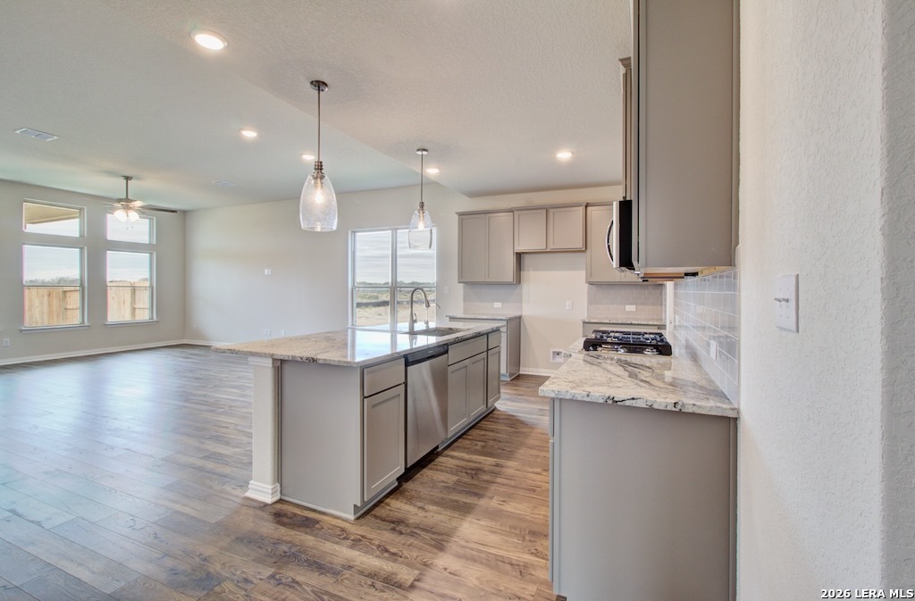 Welcome home to the Cayman plan located in Stream Waters, featuring the same spacious layout as our DRB model home. This two story home offers 4 bedrooms, 3 and a half bathrooms, and a total of 2771 square feet of living space designed for comfort and style. The foyer opens to a powder room and formal dining area, leading into a beautiful kitchen with engineered marble countertops, a center island, stainless steel gas appliances, and a corner pantry. The owner's suite is conveniently located on the main level and includes a relaxing garden tub, glass door shower with ceramic tile, private water closet, linen closet, and a large owner's in closet. Upstairs you will find a spacious game room, all secondary bedrooms, and an additional full bathroom for added convenience. Enjoy outdoor living with an extended covered patio, perfect for entertaining or relaxing in your private backyard. This home also includes a two car garage for ample parking and storage space. Located in the desirable Stream Waters community, residents can look forward to exciting future amenities including sports courts and scenic paths. This home combines modern design with everyday functionality, offering a peaceful setting with convenient access to nearby shopping, dining, and entertainment.