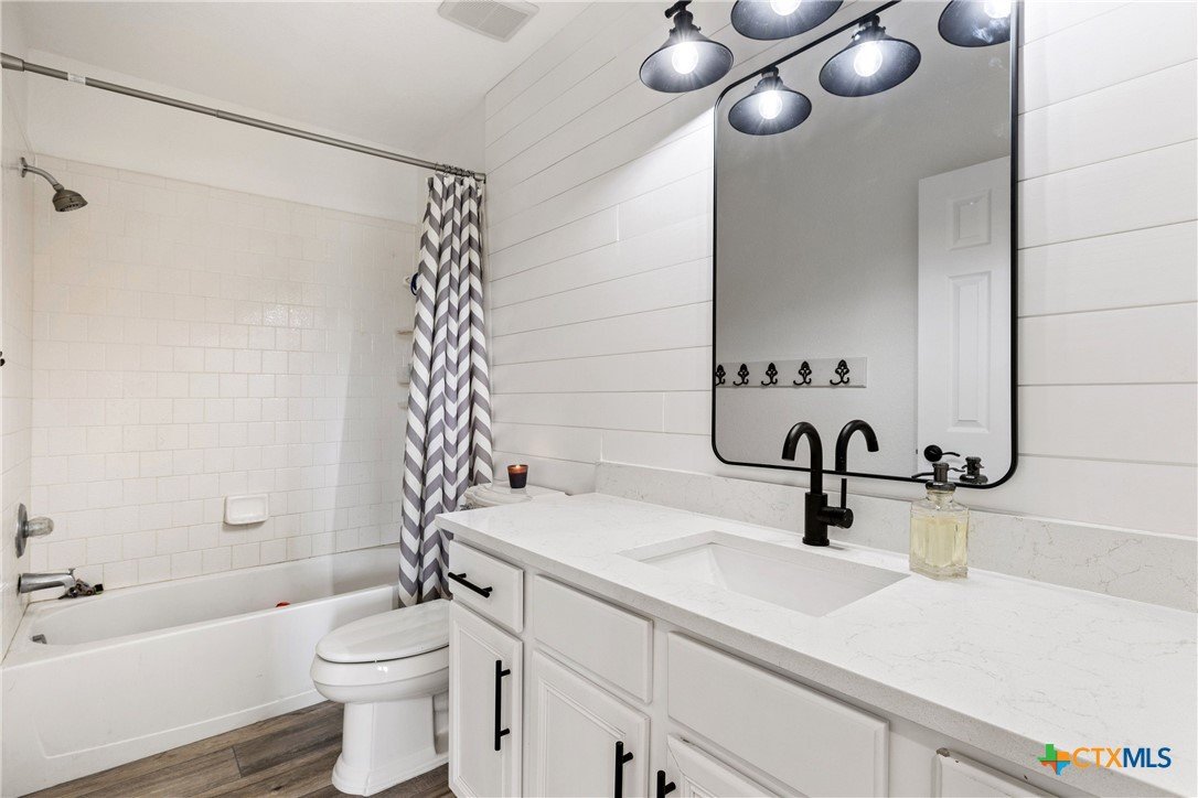 Welcome to your own slice of Hill Country charm in the heart of Dripping Springs. This beautifully remodeled 6 bedroom, 3 bath home sits on a spacious 1.51 acre lot, offering the perfect blend of privacy, comfort, and upscale modern farmhouse style. Inside, you’ll find an inviting open layout filled with natural light, soaring ceilings, and new tile flooring throughout. The thoughtfully remodeled interior showcases high-end finishes and timeless character — from the elegant kitchen updates to the cozy living spaces designed for gathering. The master suite features vaulted ceilings, a luxurious modern bathroom with a quartz double vanity and new glass shower, and an oversized walk-in closet. A versatile media/playroom offers plenty of flexibility, easily serving as an additional bedroom, while the oversized laundry room with a mudbench offers extra storage and convenience. Step outside to enjoy the best of Texas Hill Country living. The large open lot is ideal for entertaining or relaxing, complete with a covered porch, stock-tank pool with a custom deck, in-ground trampoline, chicken coop, and multiple outbuildings for storage. The property also includes a spacious 3-car garage and beautiful mature trees offering shade and tranquility. Located in desirable west Dripping Springs, this home combines rural living with convenience—just minutes from local shops, restaurants, and attractions. With no HOA and room to spread out, 213 Beauchamp Rd is the perfect retreat to call home.