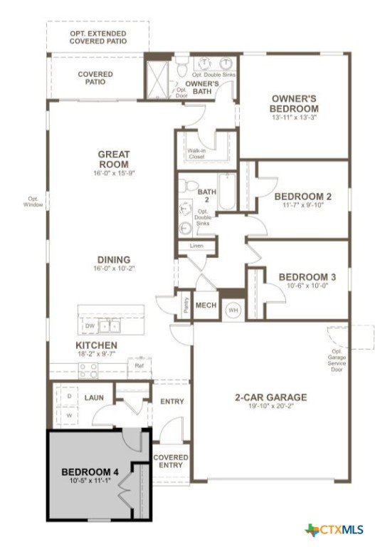 Explore this attractive Alexandrite home, ready for quick move-in! Included features: a welcoming covered entry; an open great room with an adjacent covered patio; a dining nook that flows into an impressive kitchen with quartz countertops, a center island and a generous pantry; a convenient laundry; a beautiful primary suite showcasing a private bath and an oversized walk-in closet; and a fourth bedroom in lieu of a study. This home also boasts cultured marble bathroom countertops. Visit today!