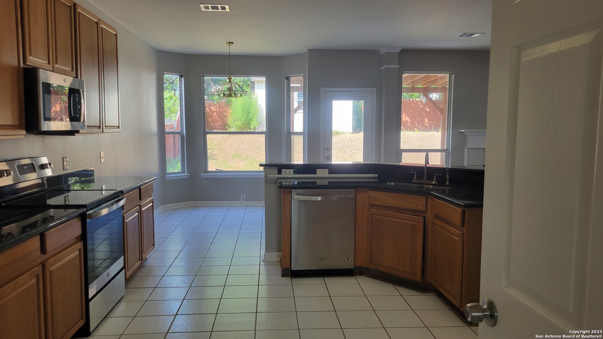 Popular floor plan, great location in highly desirable Encino Rio subdivision. Walking distance to Encino Park Elementary and Tejeda Middle school, very close to numerous shopping options. Many upgrades in the home, new paint in entire house, new paint on doors and trim, new laminate and Luxury Vinyl Plank flooring downstairs, new carpet on stairs and upstairs etc. New range, new overhead microwave, new garbage disposal, new garage door opener, new window blinds, new plastic roofing on patio in backyard etc.