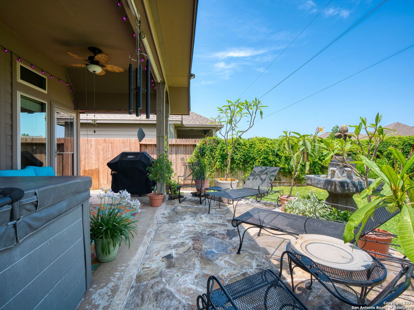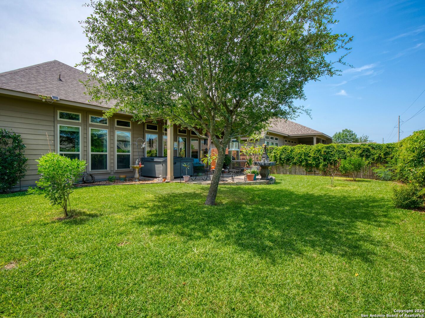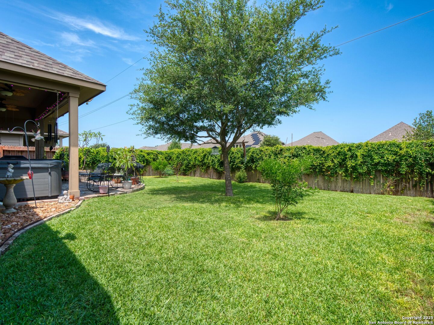 Step into timeless style and everyday comfort in this beautifully updated Perry home located within the highly acclaimed Navarro School District. Featuring a grand entry with 11-foot coffered ceilings, the open-concept layout seamlessly connects the kitchen, dining area, and spacious living room. The kitchen includes a convenient breakfast bar, stainless steel appliances, and flows naturally into the heart of the home. The primary suite is a true retreat, situated at the back of the home, showcasing a spacious bedroom with a wall of windows that invite natural light. The ensuite bath offers a garden tub, glass-enclosed shower, dual vanities, and an oversized walk-in closet. Recent upgrades include new tile in the dining, living, fourth bedroom, and primary bedroom, stylish light fixtures and ceiling fans, and an extended flagstone patio ideal for outdoor living. Enjoy beautifully landscaped grounds with mature trees, plus a water softener system already installed for your convenience. An above-ground hot tub is negotiable, offering an added touch of relaxation to the extensively landscaped backyard. The home offers generous secondary bedrooms, abundant storage, and sits adjacent to a rear easement for added privacy. With a two-car garage and thoughtful updates throughout, this property blends modern touches with classic comfort, ready to welcome you home.