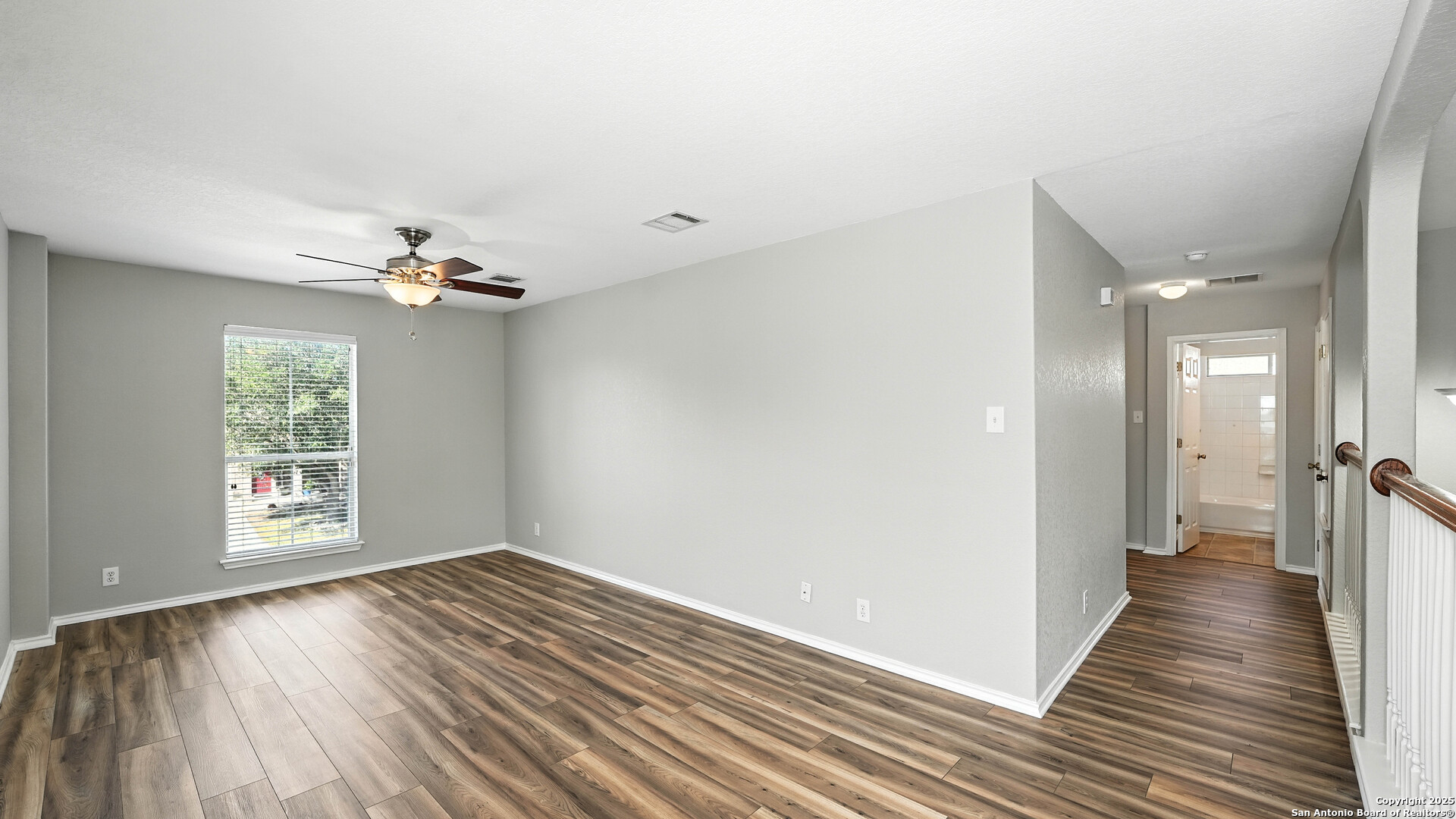 Welcome to this updated two-story home offering 3 bedrooms, 2.1 baths, and plenty of living space! Inside, you'll find a living/dining combo, a large eat-in kitchen with walk-in pantry, and a convenient laundry room. Upstairs, enjoy a spacious game room, along with a private primary suite featuring a walk-in closet, dual vanity, and tub/shower combo. Two additional bedrooms share a full bath down the hall. Step outside to a covered patio, additional concrete slab, and a fenced backyard. This home is move-in ready with updated interior paint (March 2025), updated laminate flooring (March 2025), and updated carpet (March 2025), roof replaced (March 2024). Close proximity to Clear Springs Elementary and the community Pool/Playground. Located just minutes from New Braunfels and Seguin.