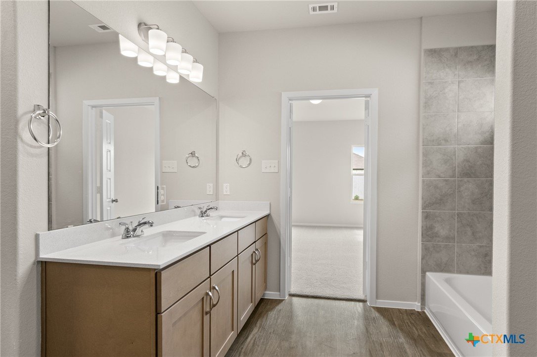 MLS 578296 - Built by Brohn Homes - Ready Now! ~ Welcome to 214 Chesterfield Drive, located in the award-winning community, Casetta Ranch. This one-story home offers abundant space and functionality with high-end features such as wood-look vinyl flooring throughout the main living areas, ample natural lighting, light brown shaker-style cabinets with nickel hardware throughout the house, a tankless water heater, and a flex room with added double doors. Inside the kitchen, you'll see 42-inch upper cabinets, 3 cm granite countertops, a center island, and a corner pantry with utility room access for added convenience. The primary suite features a dual vanity and walk-in closet. Casetta Ranch, located in Kyle, is the perfect place to call home. It offers many luxurious amenities, including the community amenity center, swimming pool, playground, park, and Lehman High School, which is within walking distance. And because it’s an energIQ home built by Brohn, you’re getting more home, more quality, and more value—all without compromise.