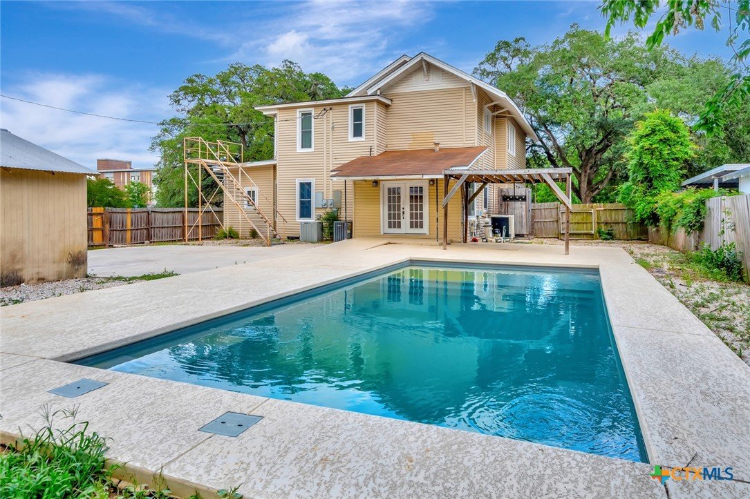 Step into timeless elegance with this beautifully preserved 5-bedroom, 3-bathroom historic home nestled in the heart of town. This two-story residence blends classic charm with modern comfort, offering spacious living areas, original architectural details, and thoughtful updates throughout. Enjoy warm summer days in the private backyard oasis, featuring a sparkling pool surrounded by secure fencing—perfect for entertaining or relaxing in peace. The property also includes lush landscaping, mature trees, and ample space for family gatherings or quiet reflection.