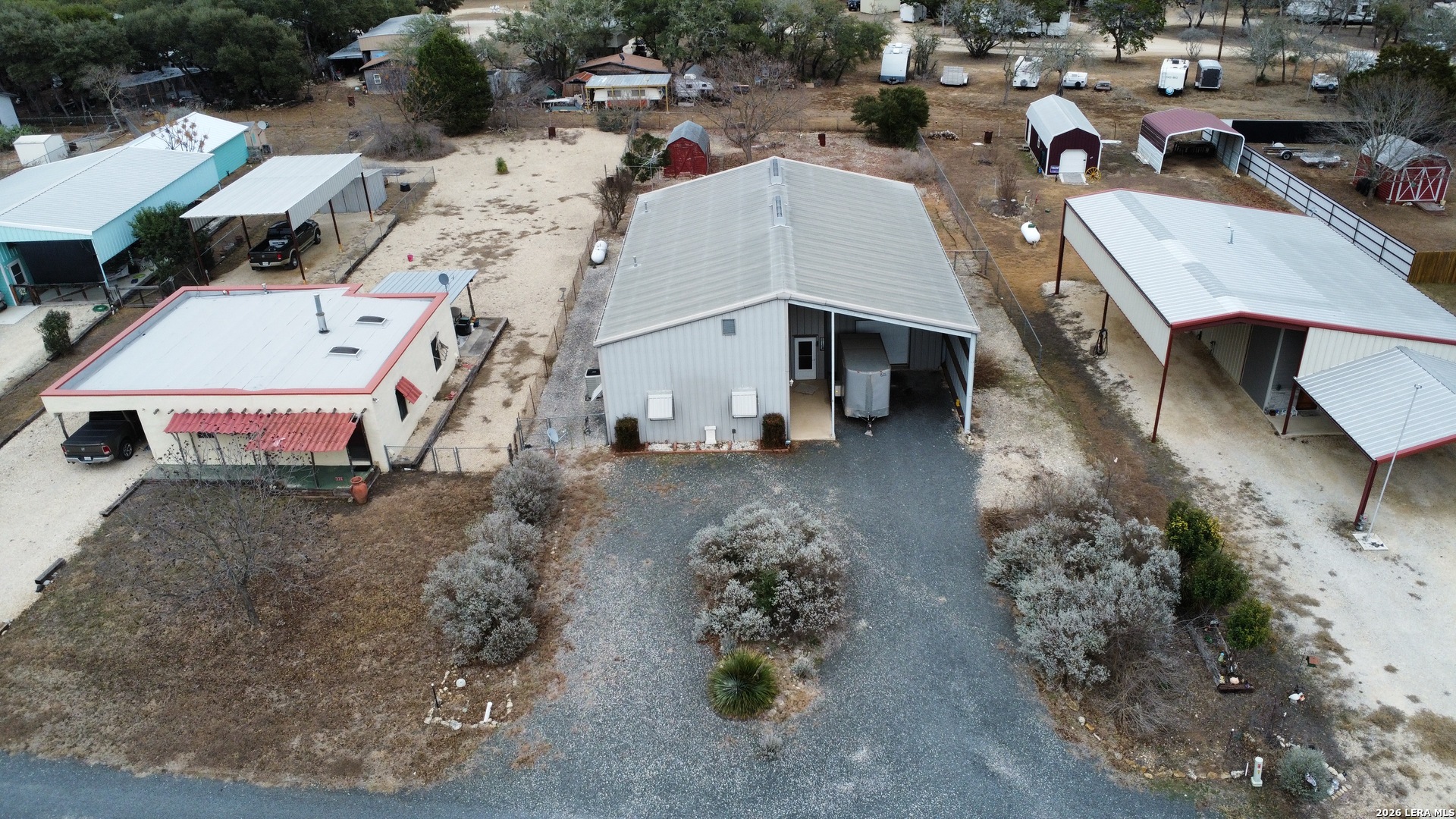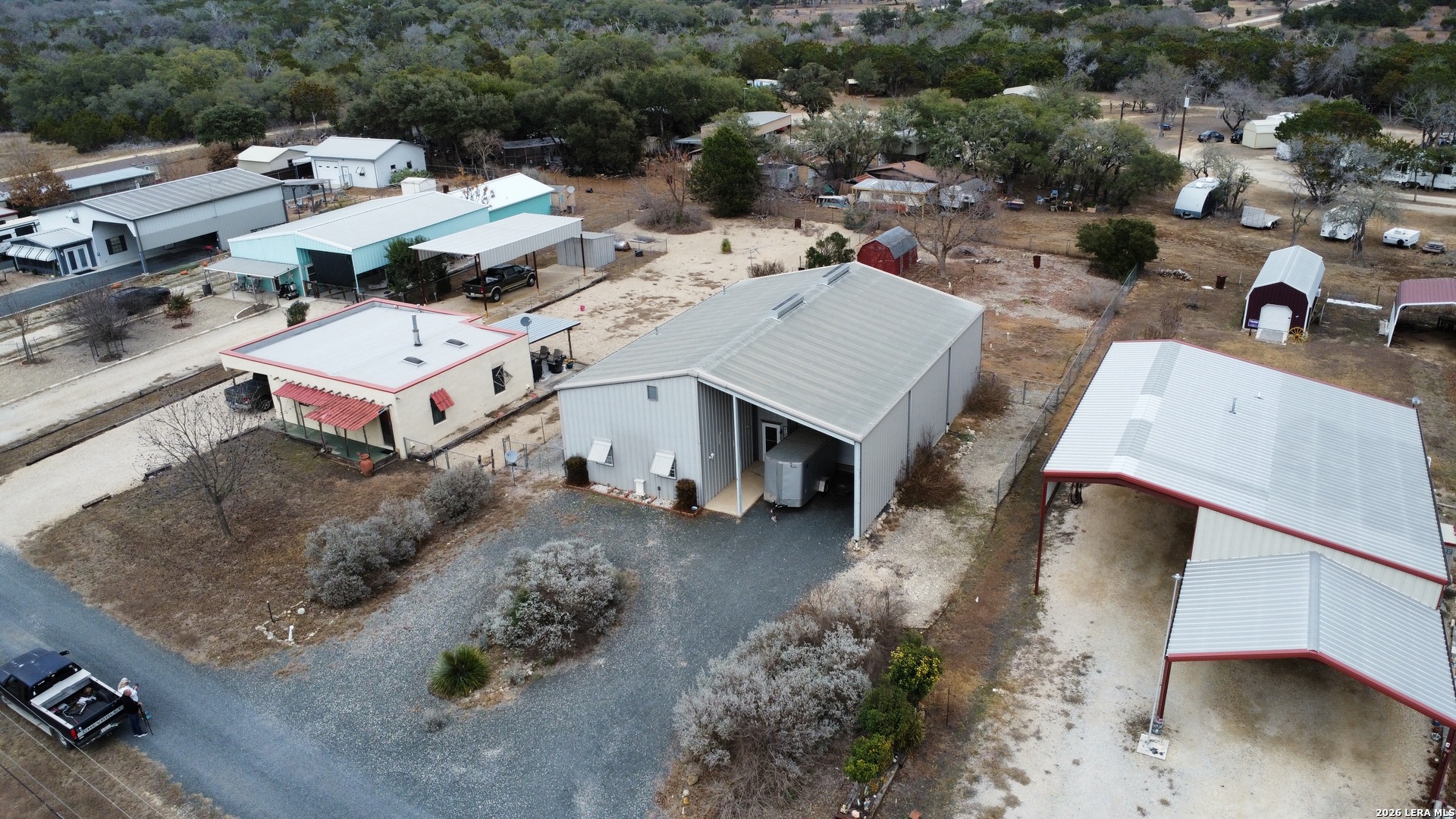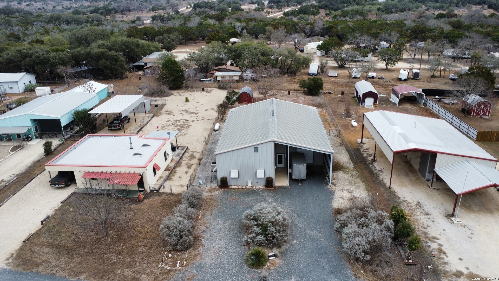 A distinctive barndominium in Pipe Creek, Texas, offers 1,698 sq. ft. of living space with two bedrooms and two bathrooms. Built in 1999, the home includes a water softener, gas log fireplace, spacious bedrooms, a study/office, and an open floor plan with a mix of wood laminate and carpet flooring. The study can easily serve as a third bedroom. The expansive attic, equipped with spray foam insulation, is partially floored and could be finished to create two or three additional bedrooms or serve as extra storage. A 60' x 19' covered parking area provides ample space for an RV or boat, while the .375-acre lot features native plants and multiple water taps. The property is conveniently located near Bandera, Boerne, and Pipe Creek, with an easy commute to San Antonio via Highway 16. In addition, the home includes a large attached, fully finished workshop with all utilities and air conditioning.