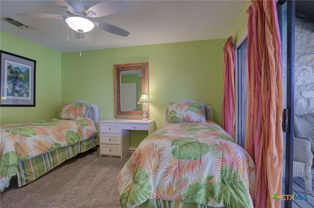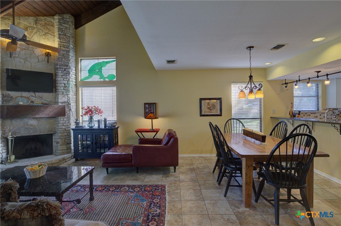 Discover the ideal lock-and-leave lifestyle at T Bar M condos, perfect for travelers or those seeking an overnight investment rental. This turnkey, fully-furnished, short-term vacation rental property is move in ready. 3-bedroom, 2-bath condo features a floor to ceiling stone fireplace, beamed ceiling, beautiful stained-glass windows in living area, balcony plus a covered patio overlooking tennis courts. Access to onsite amenities include tennis courts, pool, and jogging/walking pathways. Located only minutes from downtown New Braunfels, Historic Gruene, and the Comal and Guadalupe Rivers, as well as Schlitterbahn. The HOA fee covers exterior maintenance, cable, water, sewer, trash and internet, making it a worry-free investment for vacation rental income, your weekend getaway or a peaceful primary residence. Unit 211 is also available for sale!