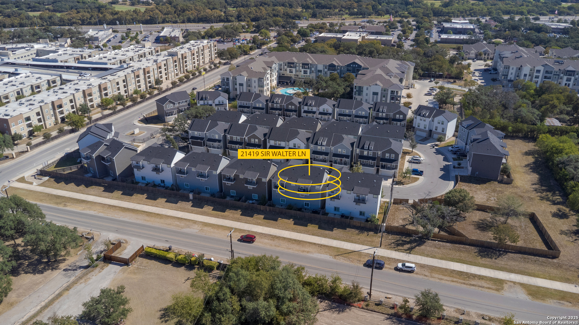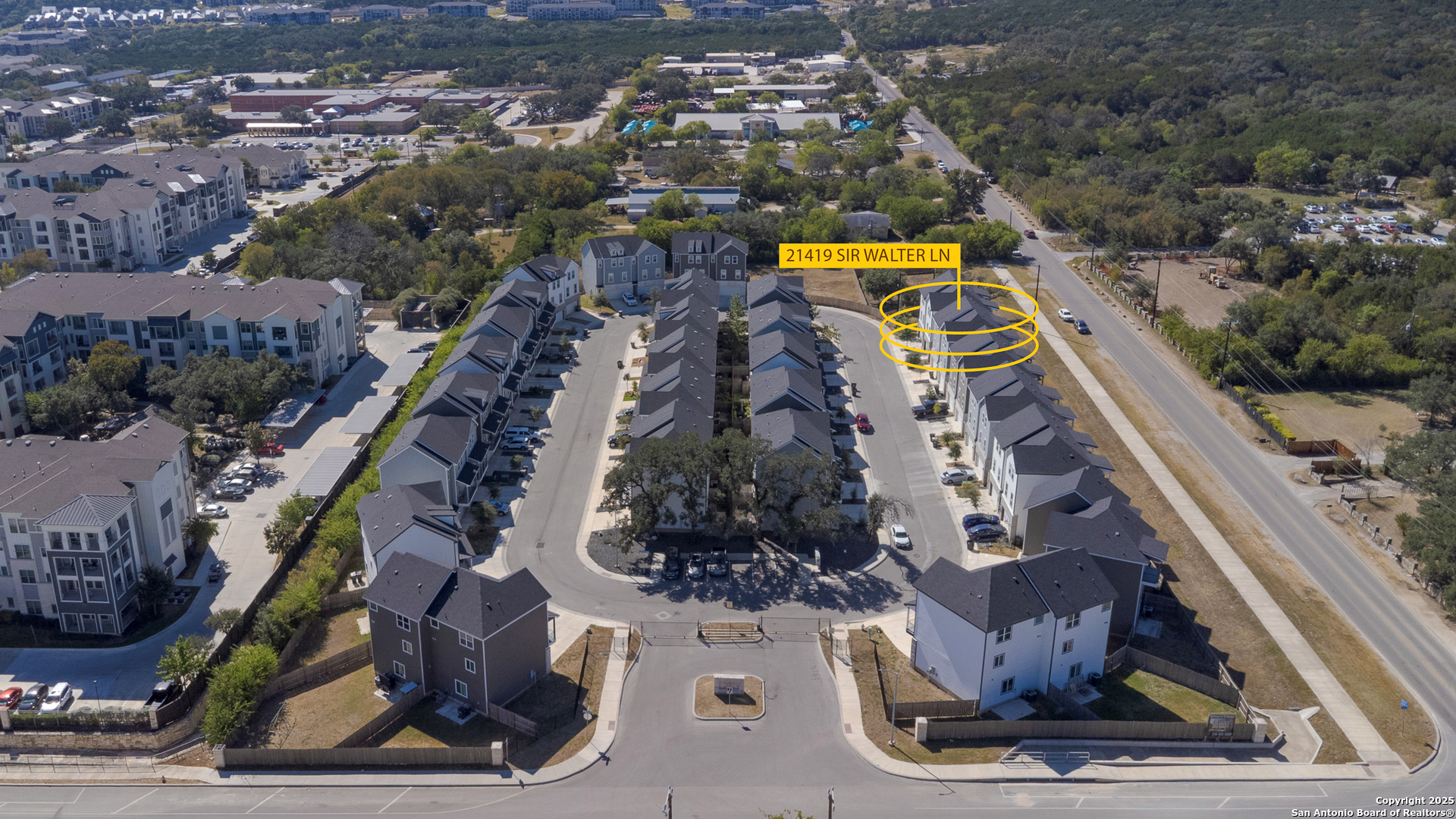 Exceptional income-producing property located in The Dominion, one of San Antonio's most distinguished gated communities. This duplex at 21419 & 21503 Sir Walter Lane offers two beautifully designed residences, each spanning three levels with 3 bedrooms, 3.5 baths, and a 2-car garage. Whether you're an investor seeking reliable rental income or a buyer looking for a multi-generational living setup, this property offers flexibility and long-term value. Both units are currently leased, creating an immediate return opportunity in a prime location. Positioned near The Rim, La Cantera, and major employers along I-10, residents enjoy quick access to upscale dining, shopping, and entertainment. Opportunities like this seldom surface in The Dominion-combining investment strength with the prestige of one of San Antonio's most sought after communities.