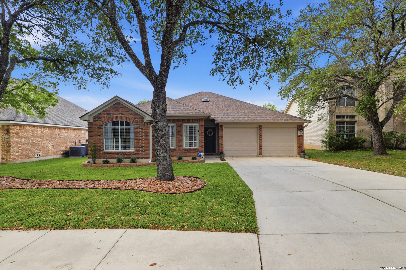 You know that feeling. You walk into a home and immediately sense it has been meticulously cared for. It feels good to find a place that feels calm, comfortable, and ready for its next chapter. At 21438 Bubbling Creek, that feeling starts right away. Designed for easy single-story living with no interior steps, this home offers the kind of layout so many buyers hope to find. High ceilings and natural light make the space feel open from the moment you enter, and the main living area connects easily to the kitchen and breakfast area in a way that feels both functional and welcoming. As you move through the entry arches, the kitchen opens up with a breakfast bar, eating area, and plenty of room for everyday living or gathering with friends and family. The split bedroom plan adds privacy and flexibility, and the office gives you options. It works well as a home office, reading room, hobby space, or even a 4th bedroom if needed. That flexibility matters, especially for buyers who want a home that can adapt with them over time. And then there is the backyard. If privacy and large oak trees have been on your list, this one stands out. Backing to a lush easement, the setting feels quiet and removed, with the kind of natural buffer that is hard to find. It gives the backyard a sense of space and calm that many buyers are looking for right now. Set in a gated community within Northeast ISD just minutes from the airport, this home brings together the ease of no-step living, an open layout, flexible space, and a private setting in a sought after location.