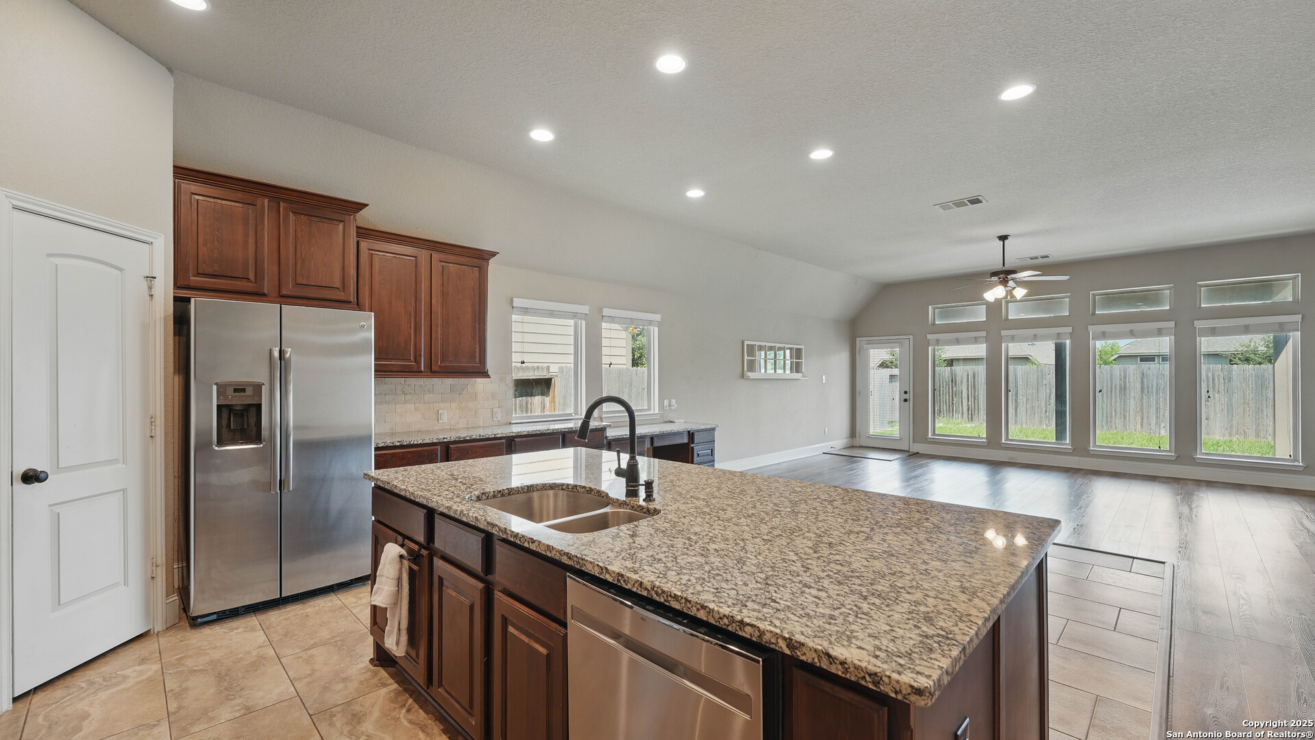 Welcome to 2144 Pioneer Pass, a beautifully maintained 4-bedroom, 3-bathroom home nestled in the highly sought-after Navarro ISD. Located in the desirable Mill Creek Crossing community, this spacious 2,528 sq ft home offers a blend of comfort and style with an ideal layout for both everyday living and entertaining. Step into the dedicated study through elegant French doors, perfect for working from home or a quiet reading retreat. The open-concept kitchen features a large island with built-in seating, granite countertops, and flows seamlessly into the family room and dining area, perfect for gatherings. The primary suite offers a relaxing retreat with a garden tub, separate shower, dual vanities, and two separate walk-in closets. Three additional bedrooms and two full bathrooms ensure plenty of space for everyone. Additional features include an EV charger in the garage, a water softener system, and a large covered back patio ideal for relaxing or entertaining. The neighborhood also includes a nearby community park and playground. Conveniently located just minutes from shopping, dining, and entertainment in Seguin and New Braunfels, with easy access to San Antonio and Austin. Don't miss your chance to own this stunning home in one of the area's most desirable school districts!