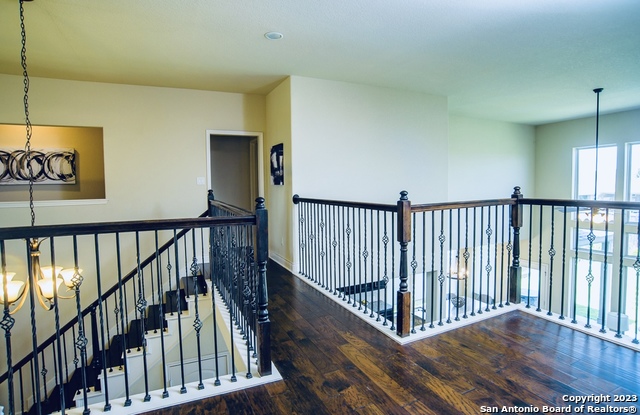 Gorgeous Perry Home in the sought after community of Mill Creek Crossing. Breath taking entry highlights two story ceilings, dramatic wood staircase and show stopping floor to ceiling windows. At almost 3000 sqft, this unique floorplan lives larger with tons of natural light. Main floor owners suite with garden tub and expanded shower plus large walk in closet. Upgraded fixtures, 42 inch kitchen cabinets, custom wall treatment, walk in pantry, covered patio and expanded 3 car tandem garage. Junior suite upstairs with game room plus two additional bedrooms and another full bath. Fully fenced backyard that is beautifully landscaped opens onto a greenbelt. Wood and tile flooring throughout. Close to San Marcos, Austin and San Antonio and in Navarro ISD. This home is stunning, see it today!