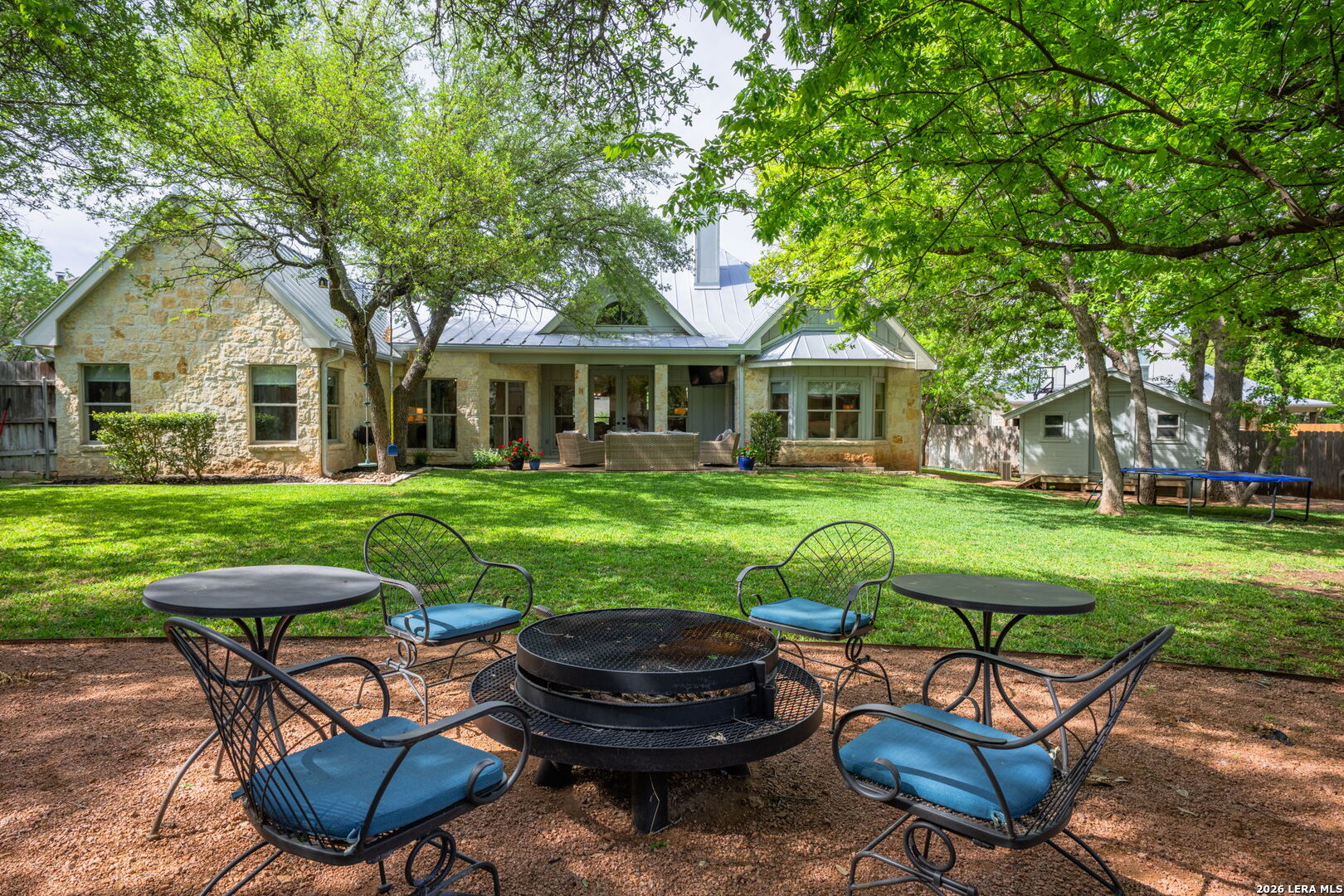 Privately set at the end of a cul-de-sac in Stone Ridge, this well-appointed home features Viking and SubZero appliances, a flexible floor plan, and a spacious backyard designed for both everyday living and entertaining. This home offers a functional and inviting layout with an open feel, featuring a spacious living area, well-appointed kitchen, formal dining room, and a separate breakfast area. The L-shaped bar/countertop creates a natural separation between the kitchen and living room while providing additional seating for bar stools or high-top chairs. The kitchen is equipped with high-end appliances, including a Viking double oven with warming drawer, Viking 6-burner range, 42-inch SubZero refrigerator, built-in microwave, and ice maker-ideal for both everyday living and entertaining. The living room features a wood-burning fireplace with built-in cabinets and shelving on both sides, while the laundry room also includes custom built-ins for additional storage. The primary suite is spacious and comfortable, highlighted by a bay window with room for a sitting area, his-and-hers walk-in closets, and a large bathroom with double vanities, jetted tub, and separate walk-in shower. Two of the secondary bedrooms are located toward the back of the home and feature vaulted ceilings and built-in shelving in the closets. These rooms share a bathroom with a double vanity and tub/shower combination. A private guest suite at the front of the home includes a full bathroom and large bedroom, making it ideal for guests or flexible use as a home office. The backyard offers ample space for outdoor living, with a large patio perfect for entertaining and plenty of room for pets or play. A crushed granite area at the rear of the yard provides an additional space for seating or a firepit setup. A finished outbuilding with a mini-split system offers flexibility for use as a playhouse, hobby space, or additional storage. Additional features include a two-car garage, extra side parking, and a spacious attic for storage.