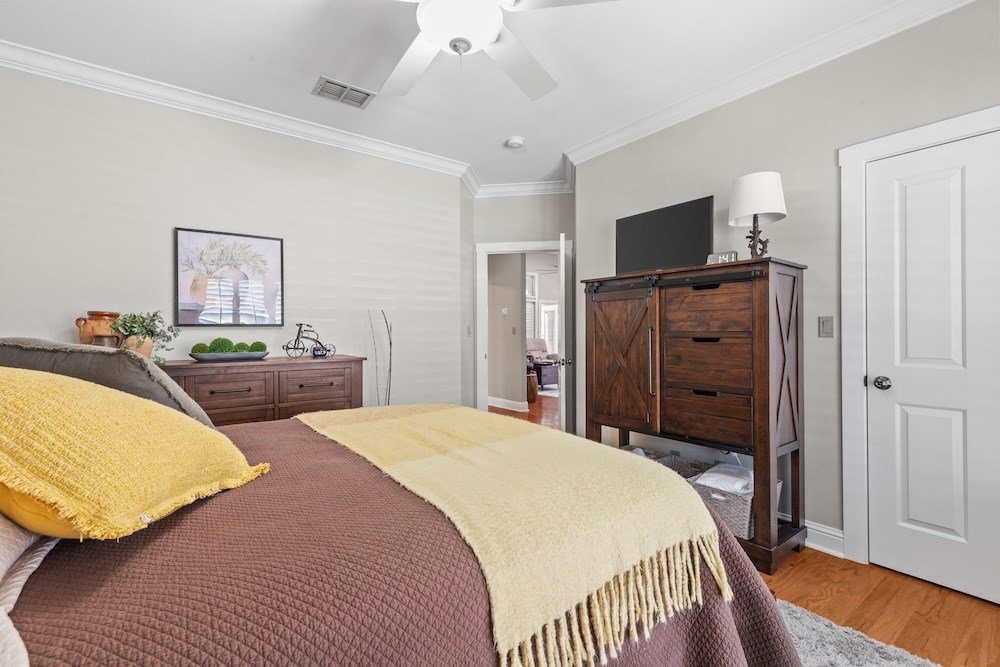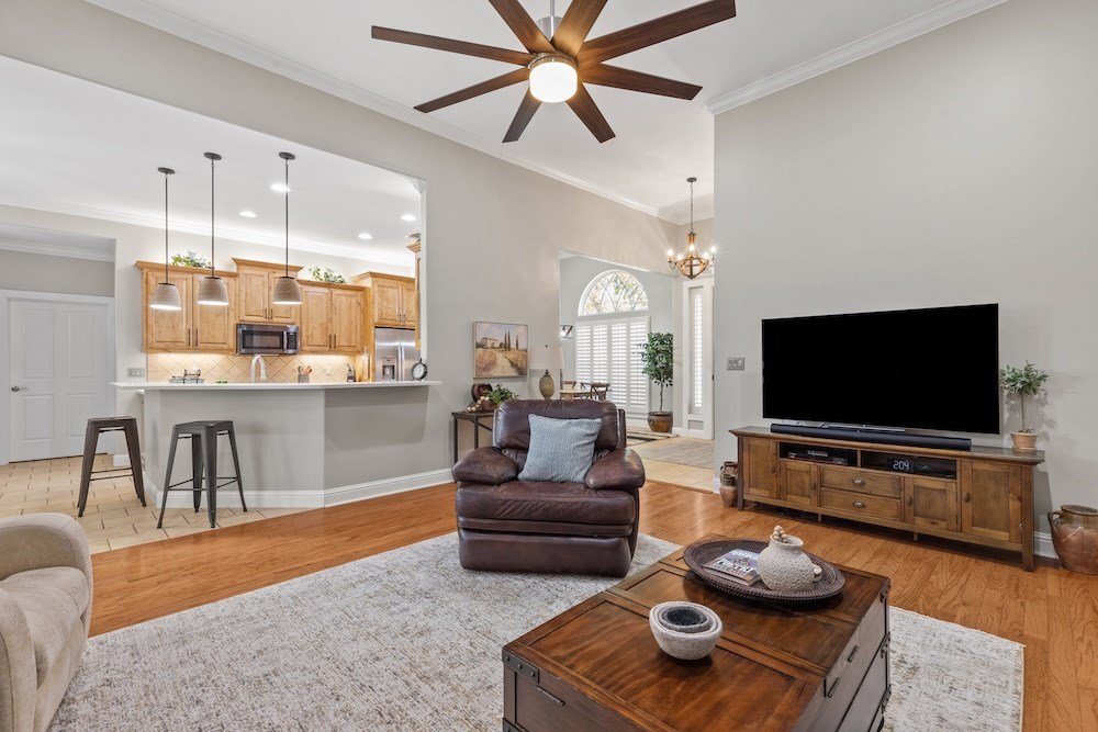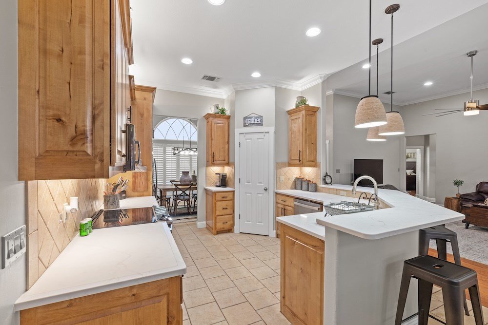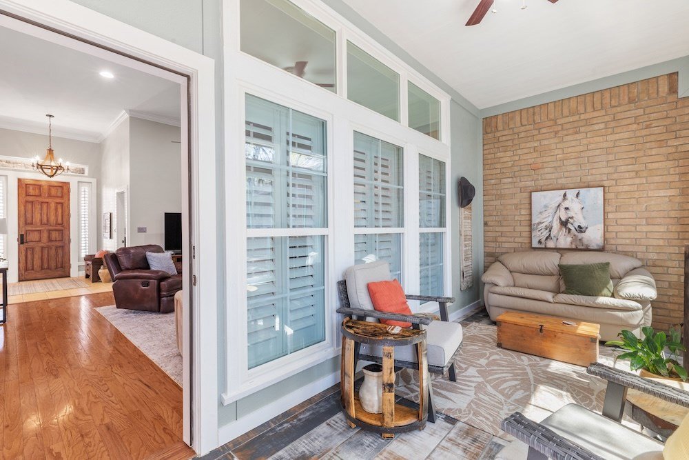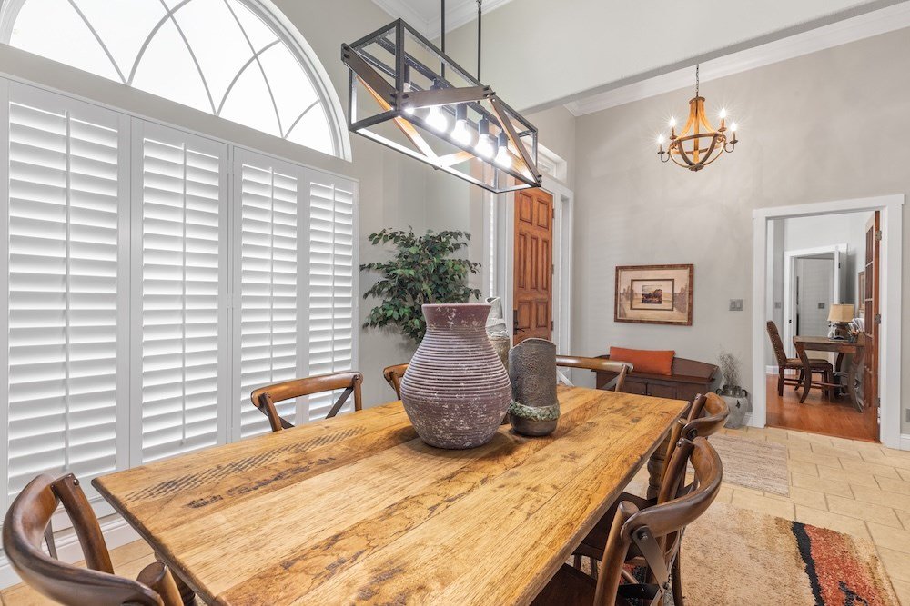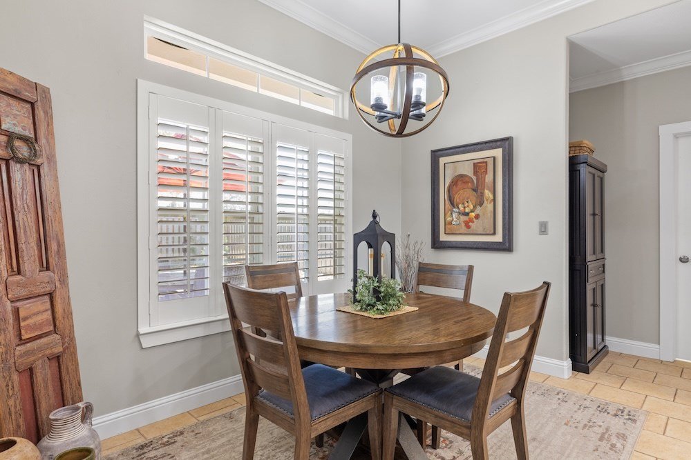 This meticulously maintained and beautifully designed, 3-bedroom, 2-bath home blends timeless elegance with a warm, inviting feel. Nestled in the highly sought-after Stone Ridge neighborhood, just north of downtown Fredericksburg, this property offers both sophistication and comfort in one perfect package. Step inside to discover a thoughtfully designed floor plan that flows effortlessly with no wasted space. The living area features high ceilings, abundant natural light, and classic wood floors that create an open, airy atmosphere. Just off the living room is the charming and spacious kitchen—complete with quartz countertops, plenty of cabinet storage, stainless steel appliances, a large pantry, and a cozy breakfast nook—opening seamlessly to the living and formal dining areas, making it ideal for entertaining and relaxing with family and friends. The primary suite is a true retreat, boasting high ceilings, wood flooring, and a serene ambiance, with a spa-inspired en-suite bath boasting double sinks, a slipper tub, and a doorless walk-in shower, along with a huge walk-in closet offering ample storage. Two additional guest bedrooms are equally well-appointed, sharing a stylish hall bath with double sinks and shower/tub combo. One guest room currently serves as a home office, providing flexibility for your lifestyle. Additional highlights include an oversized utility room with space for an extra refrigerator or freezer making for more functionality and a bright enclosed sunroom at the back of the home that provides a comfortable, year-round space to relax with your morning coffee or unwind in the evening while enjoying views of the lush backyard. Outdoor living is just as inviting, with mature trees providing shade and privacy in the fenced backyard oasis. The back patio is perfect for outdoor cooking and entertaining, while the electric-equipped storage room offers space for gardening tools or a small workshop. Located on a quiet corner lot in one of Fredericksburg's most desirable neighborhoods, this home offers peaceful living just minutes from the heart of downtown Fredericksburg's vibrant shopping and dining scene. Experience the perfect blend of charm, luxury, and convenience in Stone Ridge.