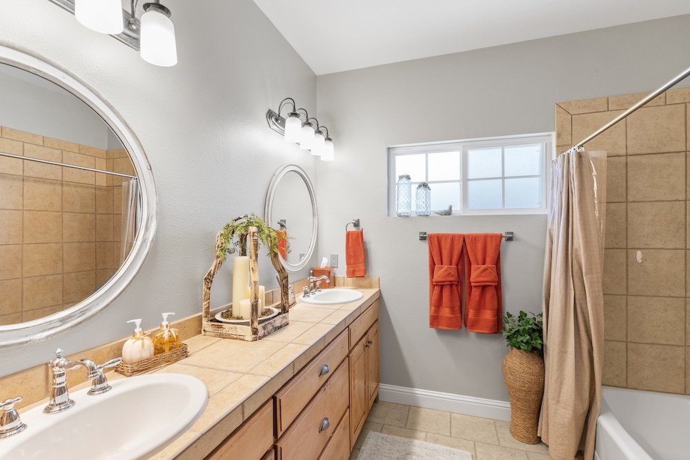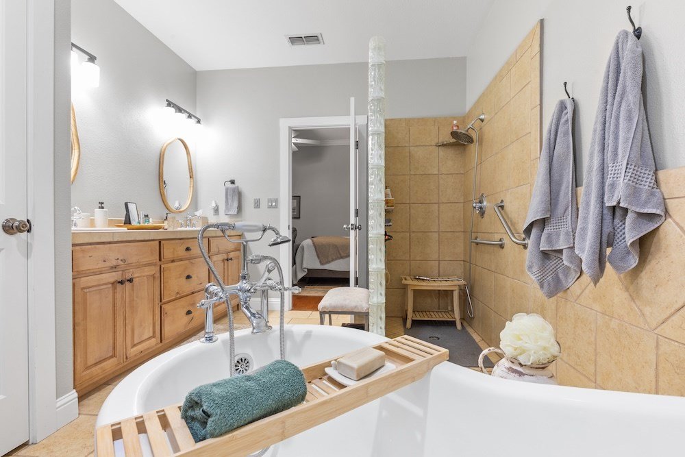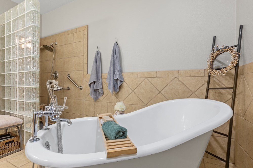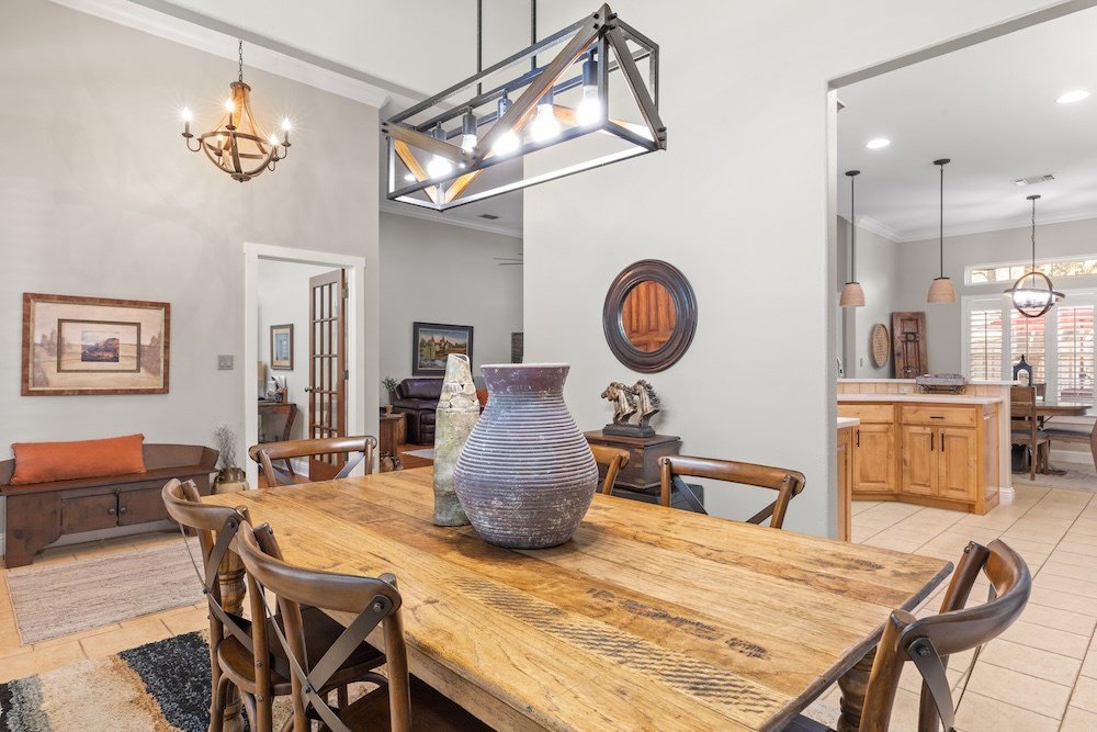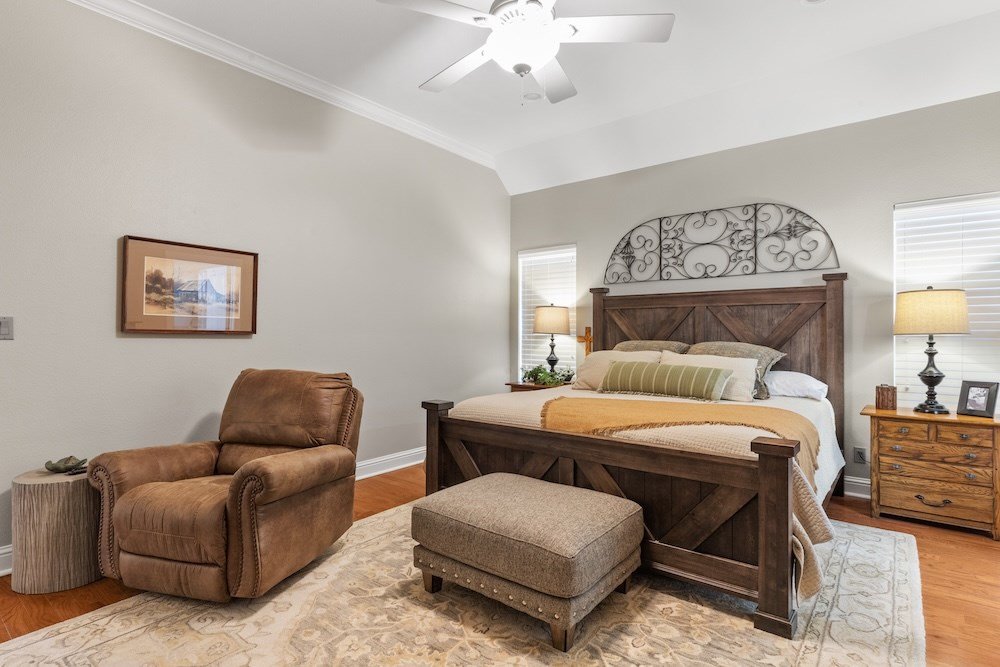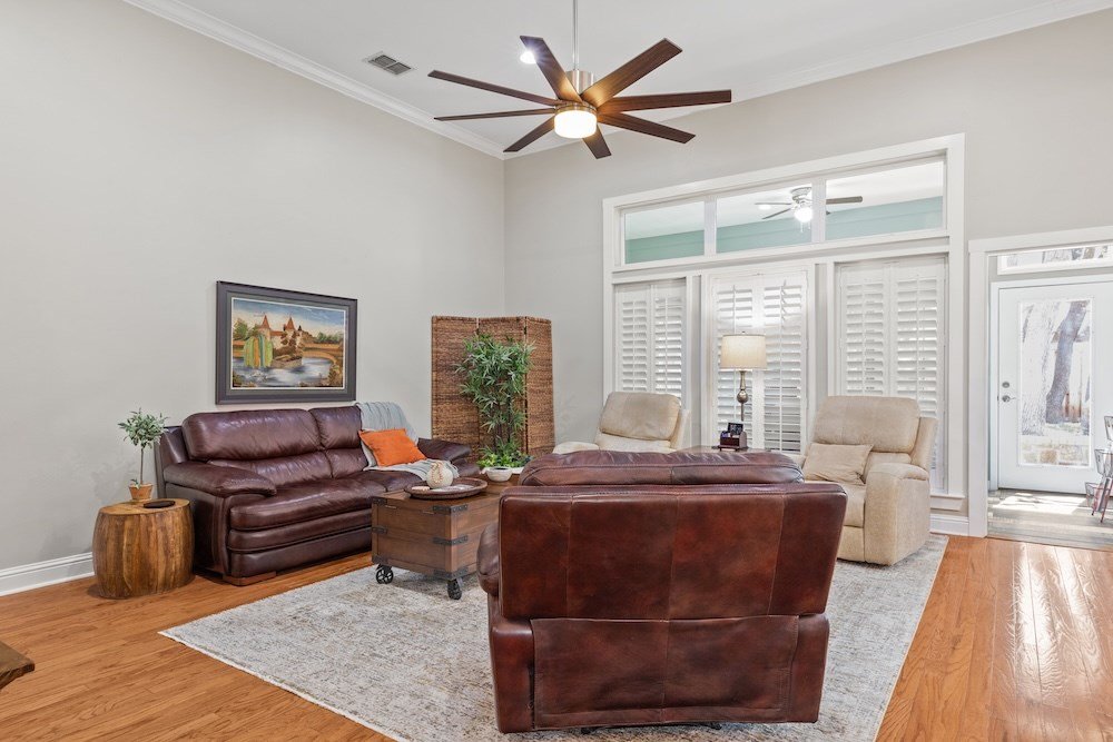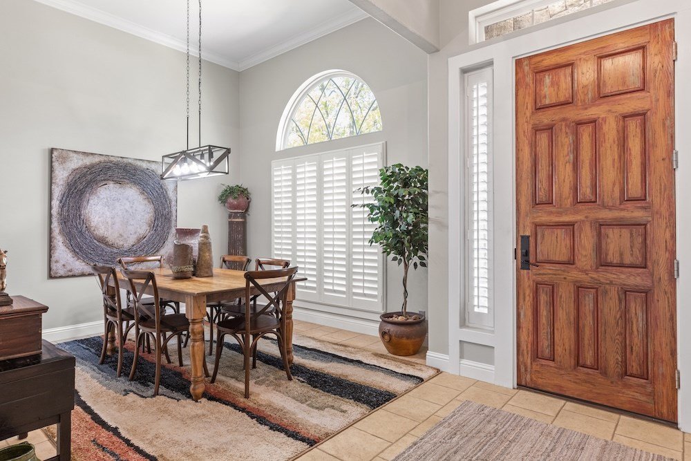 This meticulously maintained and beautifully designed, 3-bedroom, 2-bath home blends timeless elegance with a warm, inviting feel. Nestled in the highly sought-after Stone Ridge neighborhood, just north of downtown Fredericksburg, this property offers both sophistication and comfort in one perfect package. Step inside to discover a thoughtfully designed floor plan that flows effortlessly with no wasted space. The living area features high ceilings, abundant natural light, and classic wood floors that create an open, airy atmosphere. Just off the living room is the charming and spacious kitchen—complete with quartz countertops, plenty of cabinet storage, stainless steel appliances, a large pantry, and a cozy breakfast nook—opening seamlessly to the living and formal dining areas, making it ideal for entertaining and relaxing with family and friends. The primary suite is a true retreat, boasting high ceilings, wood flooring, and a serene ambiance, with a spa-inspired en-suite bath boasting double sinks, a slipper tub, and a doorless walk-in shower, along with a huge walk-in closet offering ample storage. Two additional guest bedrooms are equally well-appointed, sharing a stylish hall bath with double sinks and shower/tub combo. One guest room currently serves as a home office, providing flexibility for your lifestyle. Additional highlights include an oversized utility room with space for an extra refrigerator or freezer making for more functionality and a bright enclosed sunroom at the back of the home that provides a comfortable, year-round space to relax with your morning coffee or unwind in the evening while enjoying views of the lush backyard. Outdoor living is just as inviting, with mature trees providing shade and privacy in the fenced backyard oasis. The back patio is perfect for outdoor cooking and entertaining, while the electric-equipped storage room offers space for gardening tools or a small workshop. Located on a quiet corner lot in one of Fredericksburg's most desirable neighborhoods, this home offers peaceful living just minutes from the heart of downtown Fredericksburg's vibrant shopping and dining scene. Experience the perfect blend of charm, luxury, and convenience in Stone Ridge.