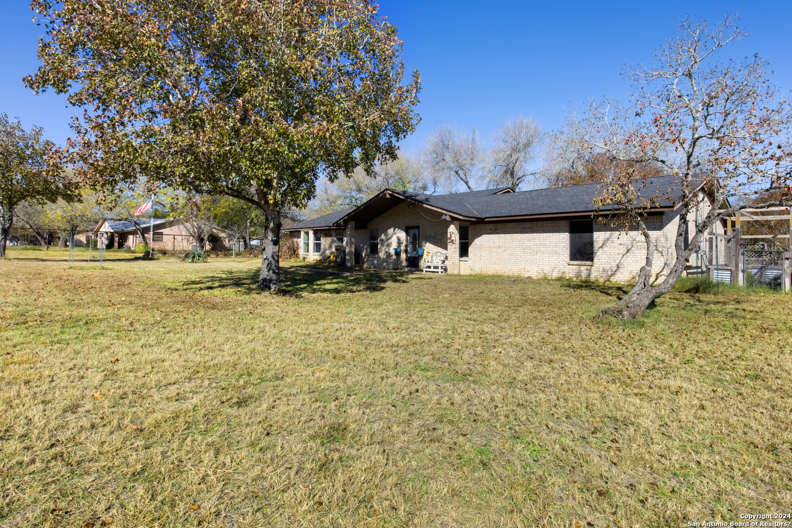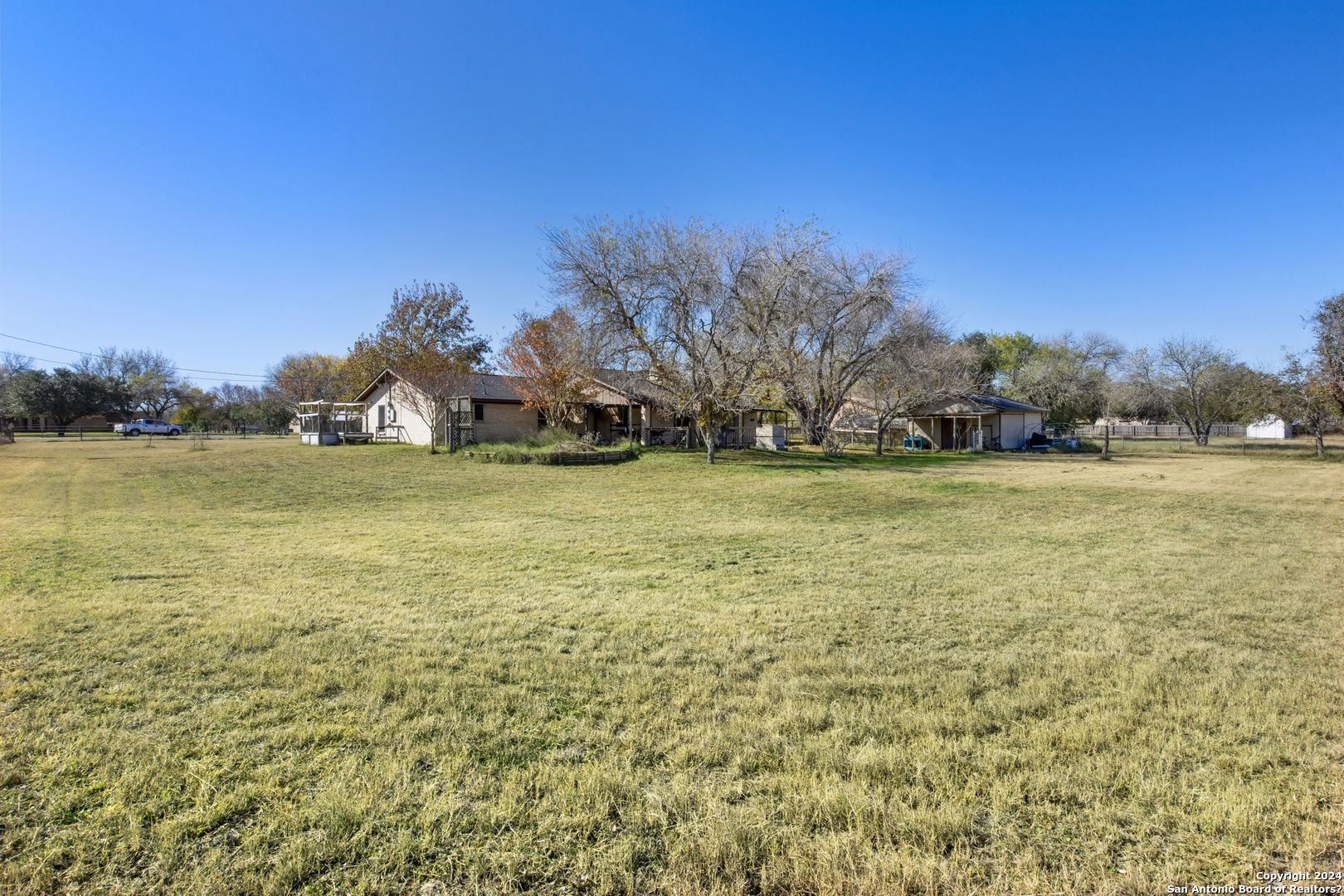 Welcome to your spacious 3 bedroom, 2 bathroom home located on 1.1 acres of fully fenced property in Pleasanton, TX! The home features both a dining room and eat-in kitchen, providing plenty of space to enjoy meals with family and friends. You'll feel relaxed in the spacious master bathroom, complete with a walk-in closet and double vanity. Take in the stunning views from the covered back patio, perfect for relaxing and entertaining. The property includes a shop in the back, waiting for you to make it your own and customize it to your liking. This property offers the ideal combination of space, functionality, and potential. Don't miss out on the opportunity to make this property your own and turn it into your dream home! Close to New Methodist South Hospital, Costal Bend College, Pleasanton Municipal Airport.