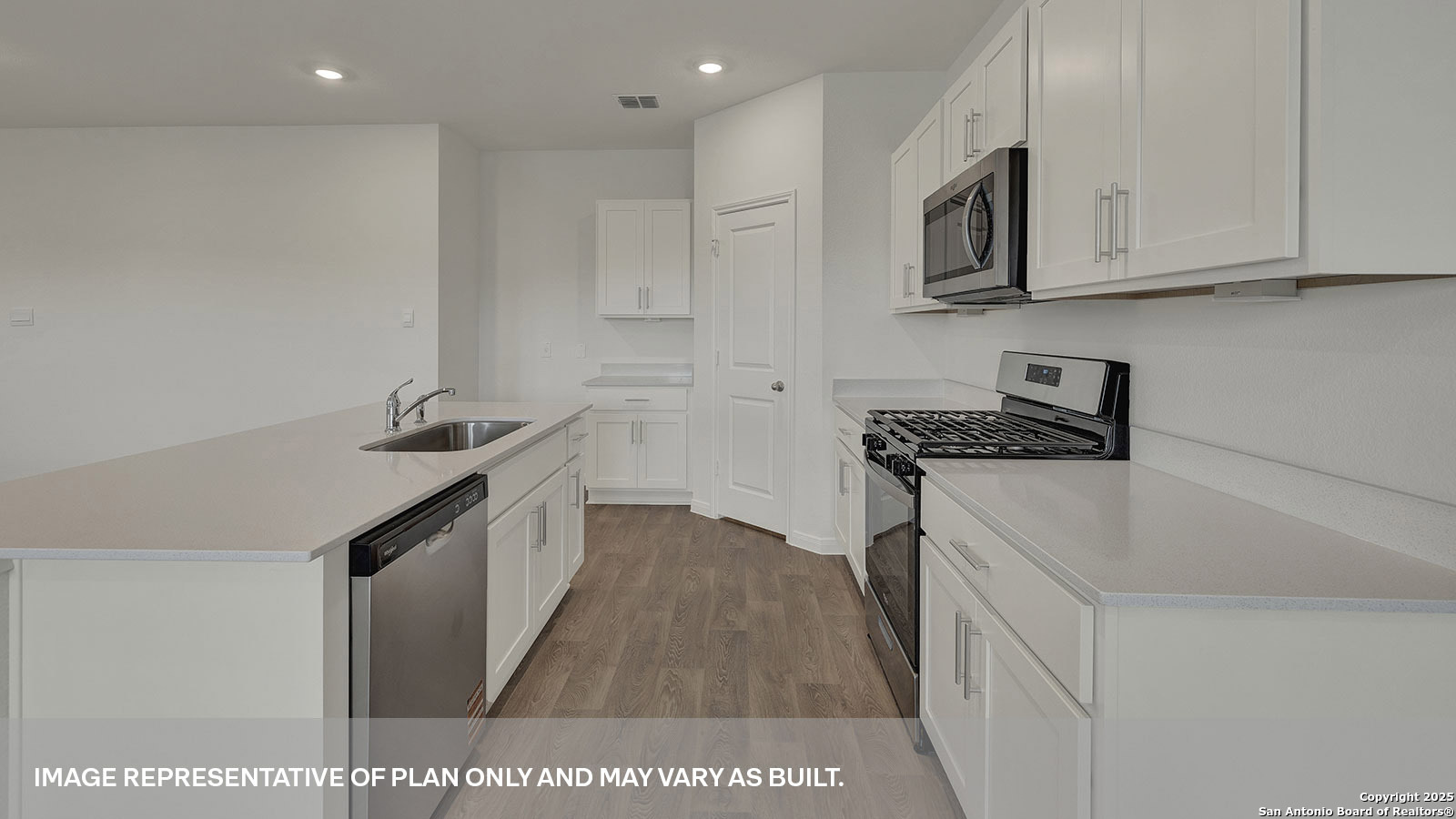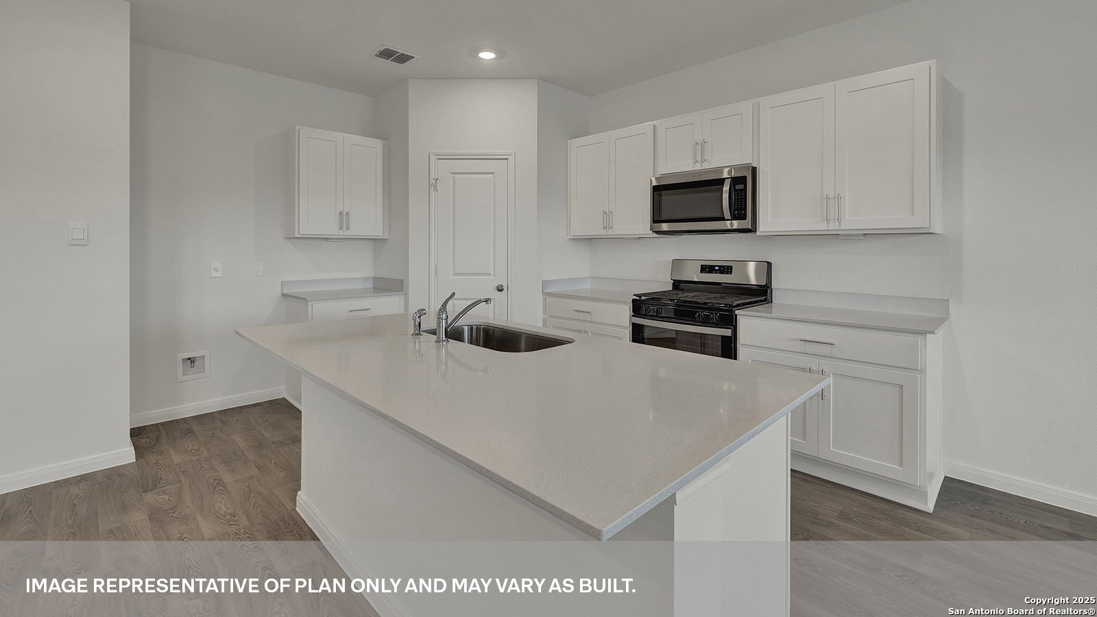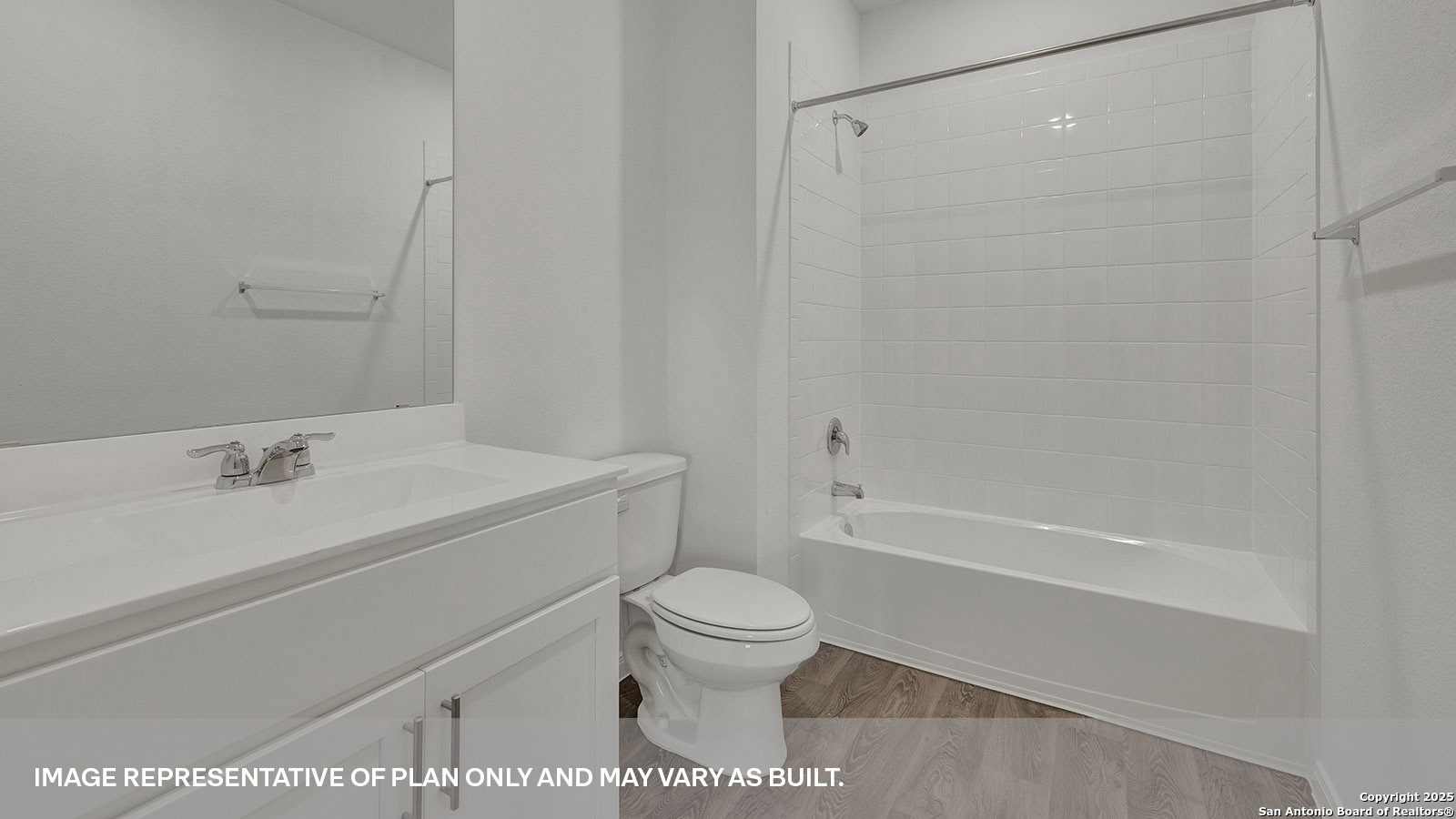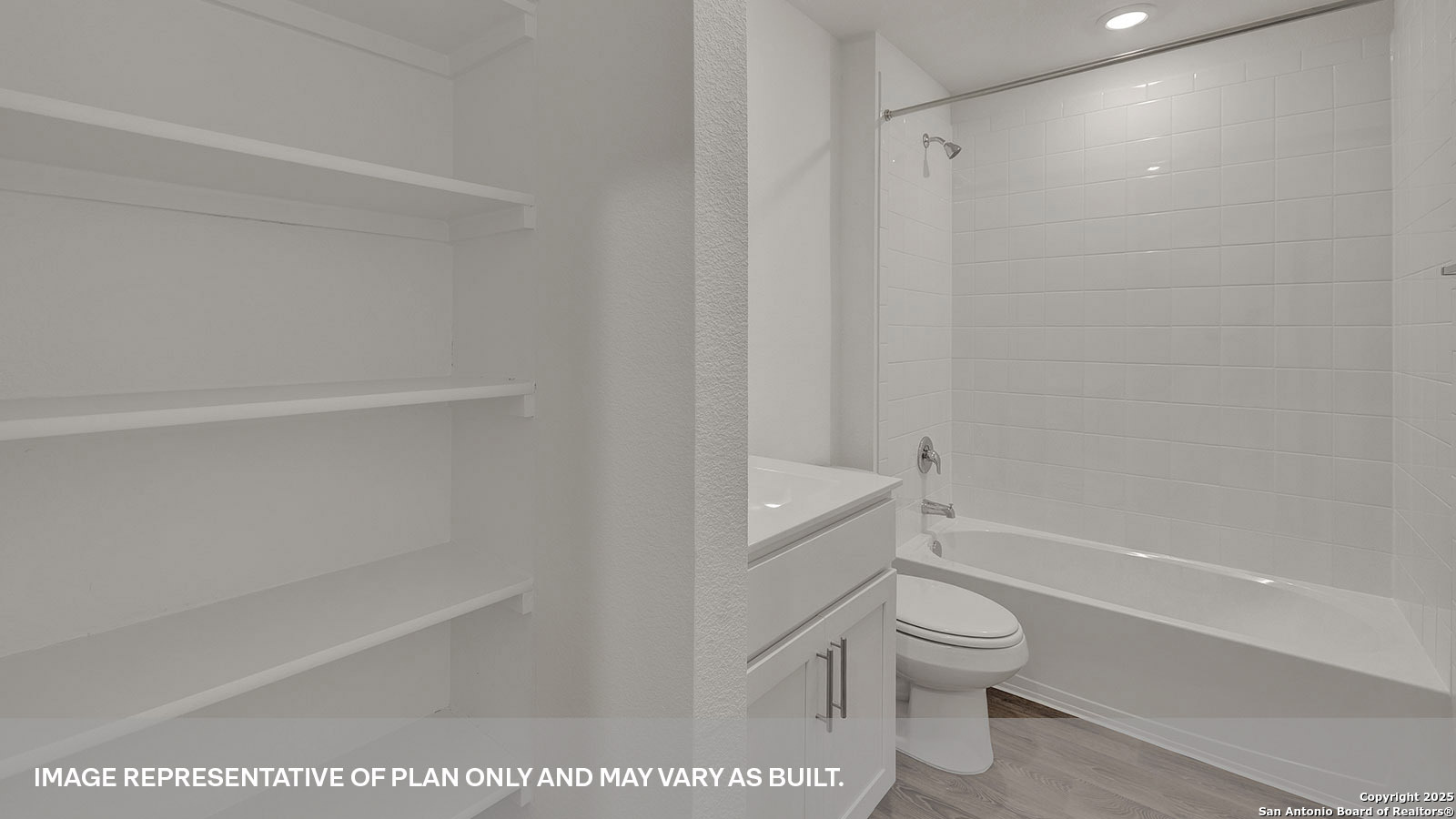 MOVE IN READY. EASY ACCESS TO I-35! The Nicole is our largest floorplan available at our Trace community in San Marcos, Texas. This two-story home offers 4 bedrooms, 3 bathrooms, a gameroom, and 2 car garage all within 2,473 square feet of comfortable living space. Our homes in Trace feature farmhouse exteriors. Entering the home from the covered front porch, cross the foyer and find a short hallway to the downstairs secondary bedroom and a full bathroom. Passing the stairwell, continue through the foyer to the heart of the home, the living area. The family room, dining area, and kitchen are open, making entertaining and everyday living a shareable experience for family and friends. The kitchen features quartz countertops, a large island with undermount sink, a corner pantry closet, stainless-steel appliances and 36'' upper cabinets. Moving upstairs, you'll enter the gameroom, the center of the upstairs space. The oversized primary bedroom is tucked away from the gameroom. Stretch out and relax at the end of your day in this spacious and private ensuite. The primary bathroom features a walk in shower, double vanity, separate toilet area with a door, and an enormous walk-in closet. This will be the closet of your dreams, spacious enough to add a dressing island or chaise lounge for a full luxurious experience. The additional upstairs bedrooms and bathroom are located opposite the primary bedroom. The bedrooms feature walk in closets with shelving. Both secondary bathrooms include a shower/tub combination. The utility room rounds out the upstairs space, making laundry chores a breeze. The Nicole includes vinyl flooring throughout the common areas of the home, and carpet in the bedrooms, gameroom and stairwell. All our new homes feature a covered back patio, full sod, an irrigation system in the front and back yard, and a 6' privacy fence around the full yard. This home features our America's Smart Home base package, which includes the Video Front Doorbell, Front Door Deadbolt Lock, Home Hub, Thermostat, and Deako Smart Switches.