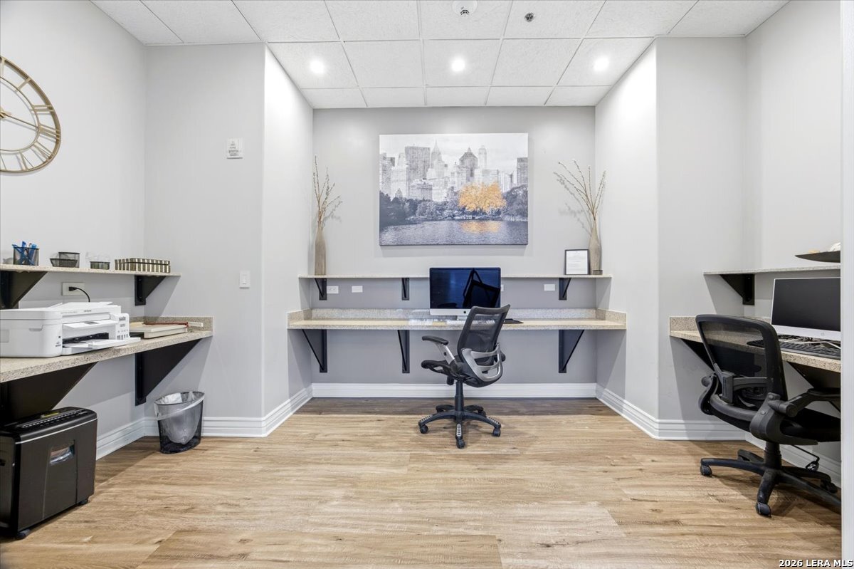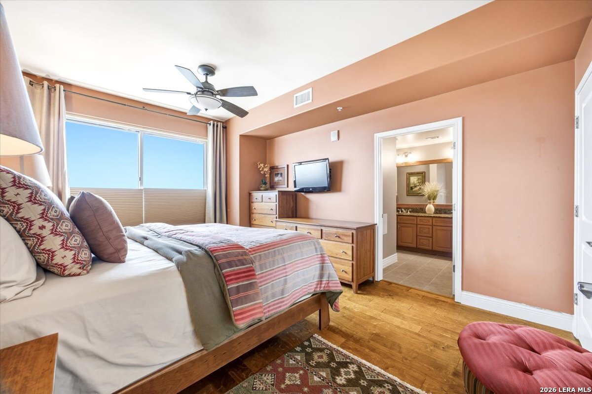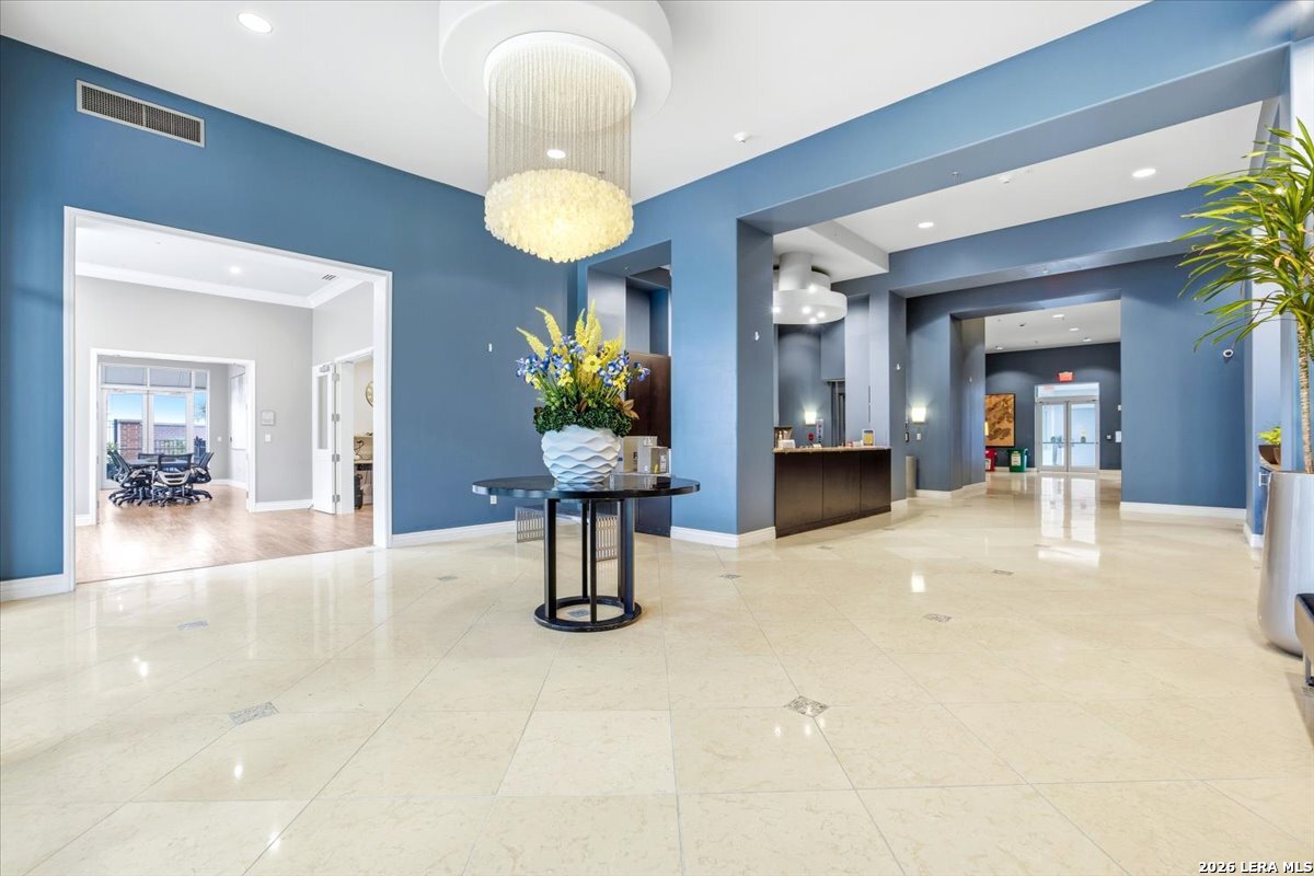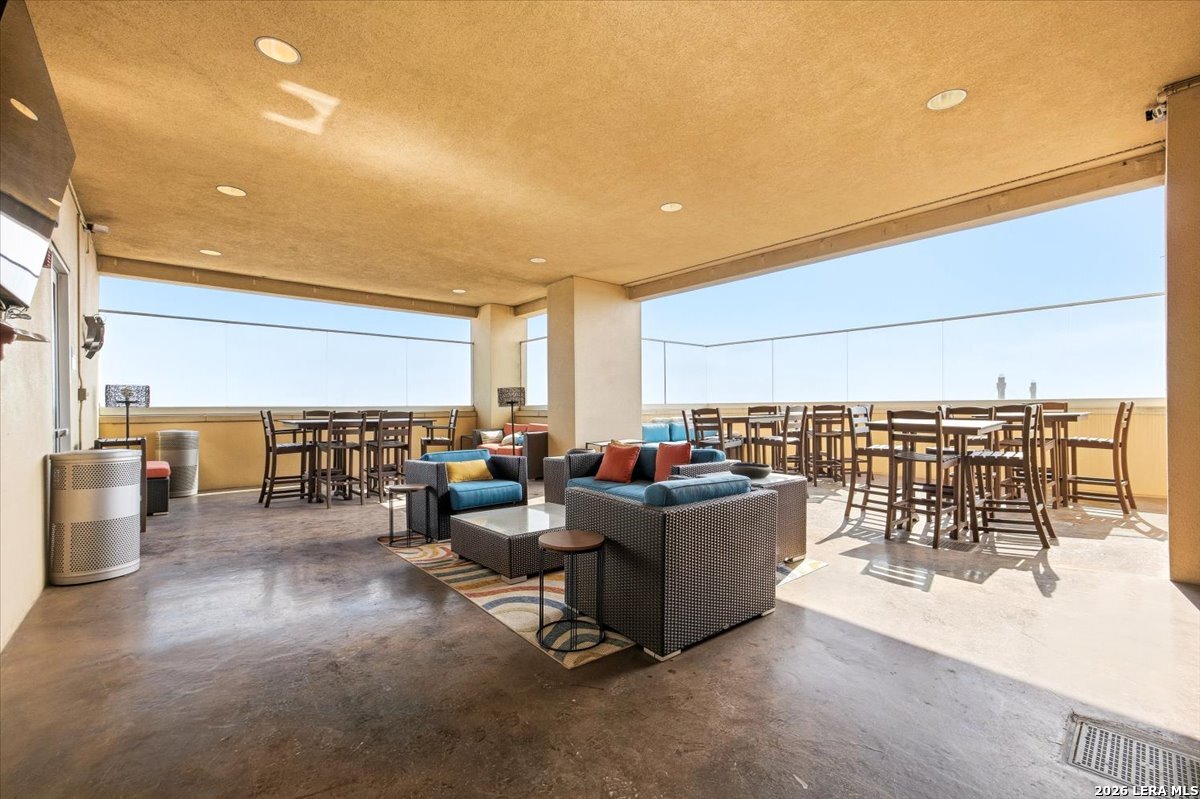This residence presents a rare opportunity to enjoy sweeping views of downtown San Antonio from a privileged vantage point, set in a historically significant area near Sunset Station. Positioned on the 15th floor, the unit combines location, security, and everyday comfort in a thoughtfully designed layout suited for both daily living and entertaining. The interior offers two generously sized bedrooms and two and a half bathrooms, providing privacy and flexibility for residents and guests alike. A well-proportioned family room flows naturally into a dedicated dining area, creating a functional yet welcoming living space. The kitchen is practical and spacious, designed to accommodate both casual meals and more involved cooking without excess or inefficiency. Residents enjoy access to an extensive collection of amenities that support a convenient and comfortable lifestyle. A 24-hour concierge ensures consistent service and added peace of mind, while on-site meeting rooms and a coffee center provide practical spaces for work or informal gatherings. The outdoor pool and fully equipped fitness center offer opportunities for relaxation and wellness without leaving the building. The property's location places you within walking distance of San Antonio's cultural, dining, and entertainment destinations, allowing you to remain connected to the city's energy while benefiting from a secure and well-managed residential environment. This balance of accessibility and tranquility is a defining feature of the home. One of the most compelling aspects of the unit is the private balcony, where mornings begin with coffee overlooking the city skyline and evenings conclude with a quiet moment above the lights of downtown. The view serves as a constant reminder of the city's character and rhythm, offering a daily experience that is both grounding and inspiring. This home is not simply a place to live, but a vantage point from which to appreciate the history, movement, and enduring appeal of San Antonio.