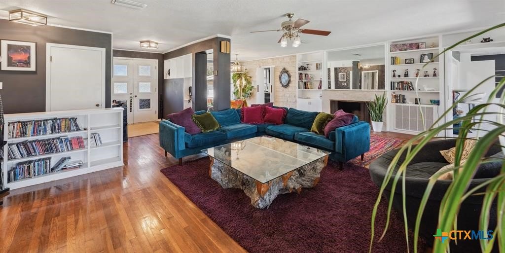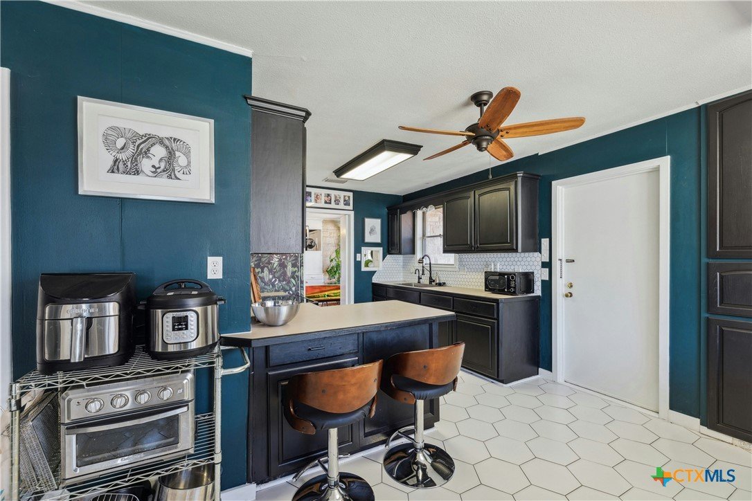 You’ll enjoy living outside Austin’s city limits in this spacious home on a large almost half acre lot. So many upgrades have been done: the wiring including electrical panels and all of the plumbing including sewer lines to the street has been replaced, both AC units and the 2 commercial grade water heaters are less than 5 years old, whole house water softener and reverse osmosis water filters, new gutters and more. Walking in the foyer, you will see the oversized family room with beautiful hardwood floors and a fireplace. This room is open to the dining room that overlooks the beautiful backyard. The kitchen has plenty of counter cabinet and pantry space and the 2 bar areas allow friends and family to stay close to the action. There are 4 bedrooms with 3.5 baths total. You’ll love the family/music room in the back of the house which has great light filtering through the windows and an attached coffee or adult beverage bar. A good sized workshop with plenty of room for all of your projects and hobbies connects the large 2 car garage to the house and there is a 2 car covered carport as well. The house is on city water, but also has a well and 2 rain barrels, making watering your garden and yard easy. The sellers have previously had chickens and geese on site, so you can truly have your homestead all in one spot. You’ll love enjoying evenings in the Cowboy pool watching the stars or a movie on the back porch’s retractable projection screen. This home has everything you need to spread out and enjoy life.
