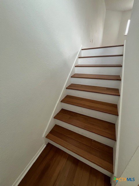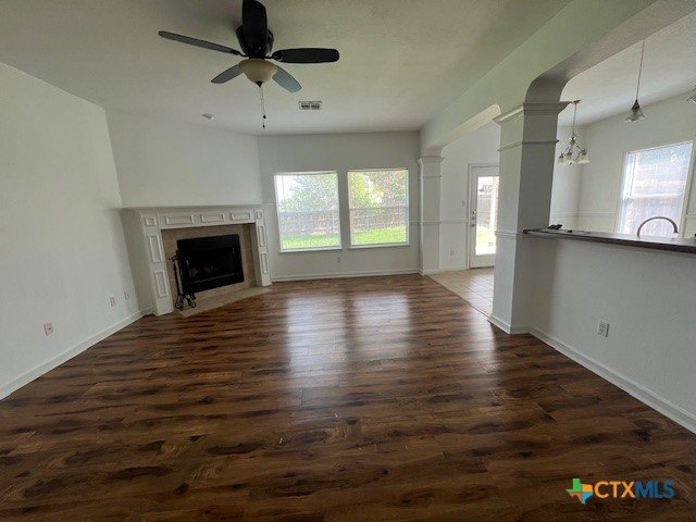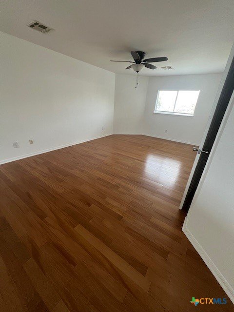 Welcome to this charming two story home featuring 3 bedrooms and 2.5 bathrooms. As you enter, you will be greeted by a formal dining area to the right, perfect for entertaining or everyday meals. The upstairs living area and bedrooms are adorned with solid oak flooring, while the kitchen and bathrooms offer durable tile flooring. The main living room downstairs features laminate flooring. Ceiling fans are installed throughout the home, providing added comfort and energy efficiency year round. The open concept living room is anchored by a cozy fireplace and flows seamlessly into the kitchen, which boasts stainless steel appliances, and an eat in dining area. Upstairs, the primary suite includes a private bath with a double vanity, a garden tub, and a walk in shower for added comfort and functionality. The backyard features a covered patio, offering a shaded retreat. Pets considered on a case-by-case basis.