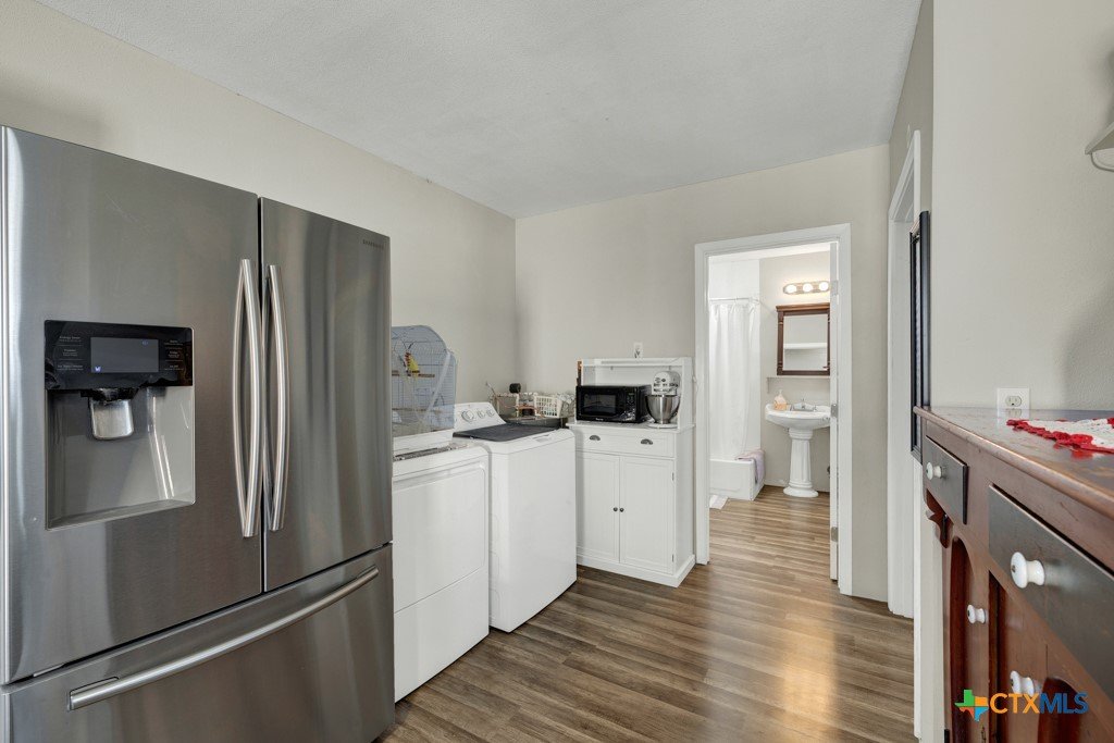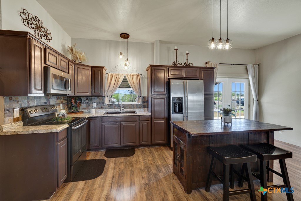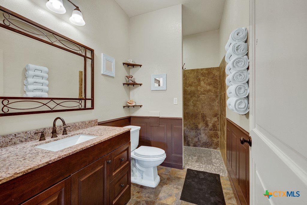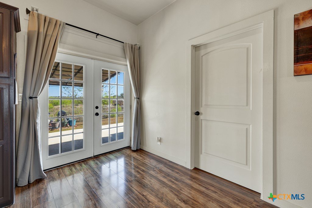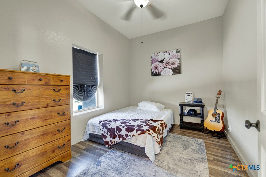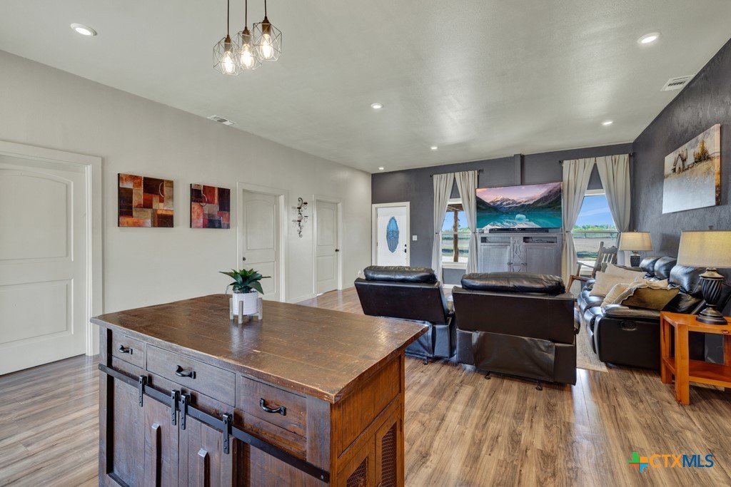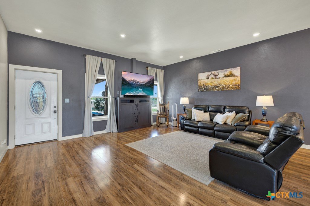 Discover 10 unrestricted acres offering exceptional access and dual residences—an ideal opportunity for those seeking space, flexibility, and scenic surroundings. The custom-built barndominium features durable 9-inch exterior insulated walls, with additional insulation in the attic and between interior walls for enhanced comfort and efficiency. The main home includes 1500 sq ft., four bedrooms, and an open-concept design, allowing for versatile living arrangements. The absence of built-in closets provides the freedom to customize storage solutions, whether through armoires or the addition of tailored closet spaces. The guest house is 750 sq ft, equally well-constructed and offers a spacious bedroom and bath, along with an inviting open layout that seamlessly connects the living, dining, and kitchen areas—perfect for extended family or guests. Step outside either residence to enjoy consistent breezes, as the property is situated along one of the highest elevations in the county. Take in expansive views stretching toward San Marcos, Seguin, and the surrounding countryside. The front portion of the property features a 24x30 garage suitable for multiple vehicles, as well as a five-bay 20 x 60 workshop with 10' roll-up doors, and is ideal for projects, storage, or business use. Additional amenities include two RV hookups and full perimeter fencing. With abundant space and flexibility, the property offers endless potential—whether continuing the established wildlife sanctuary or creating your own outdoor retreat.
