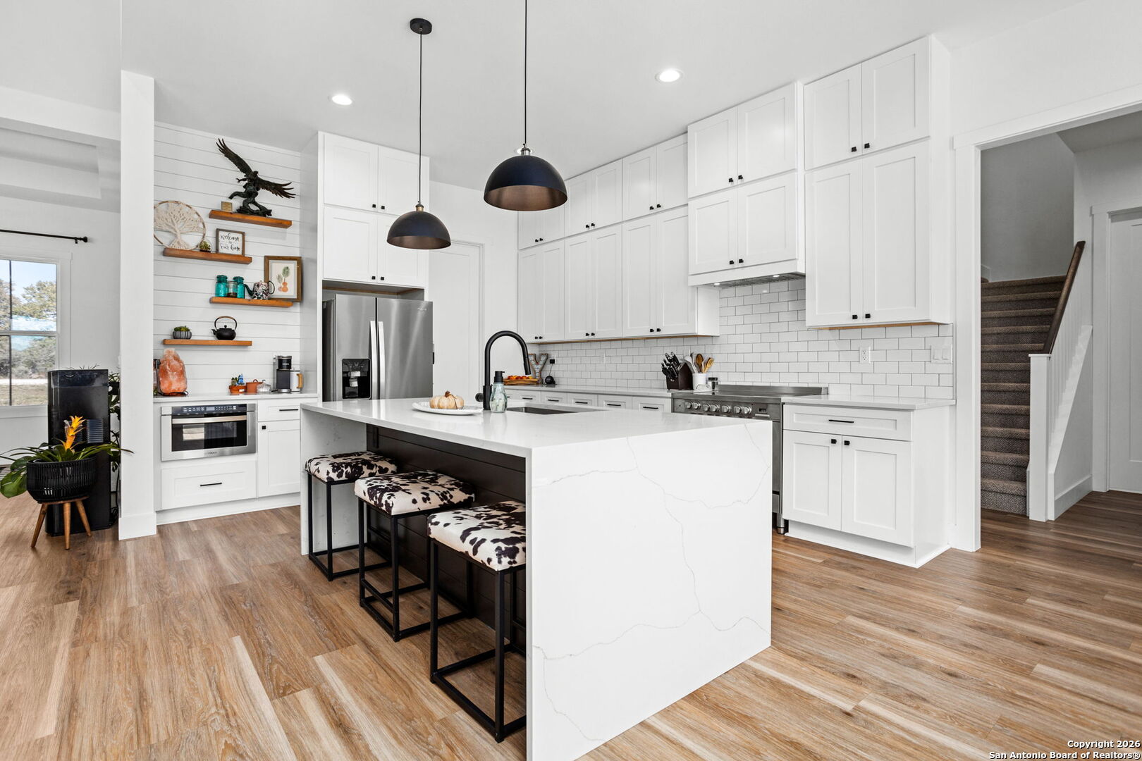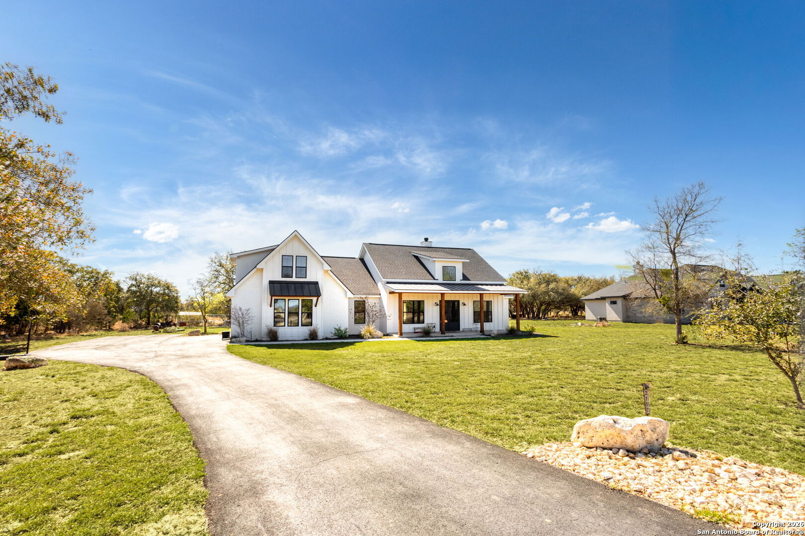 Welcome to the beautiful Texas Hill Country! This custom-built 5 bedroom, 3.5 bathroom home boasts high vaulted ceilings, an open floor concept, and modern finishes throughout. Step into the bright and spacious living room, complete with a cozy fireplace and large windows that flood the space with natural light. The kitchen features stainless steel appliances, granite countertops, a large island, and a big walk-in pantry. Enjoy your morning coffee on the covered patio areas while the raintree sprinkler system keeps your landscape green. The gated community offers many amenities like, equestrian center, river park, pool, and a clubhouse. The fifth bedroom upstairs can be used as a guest suite or a secondary master bedroom. Reach out to schedule your private showing today!
