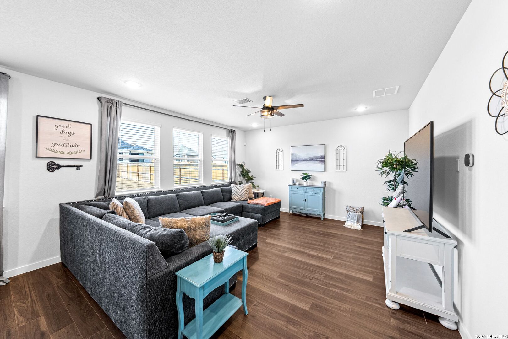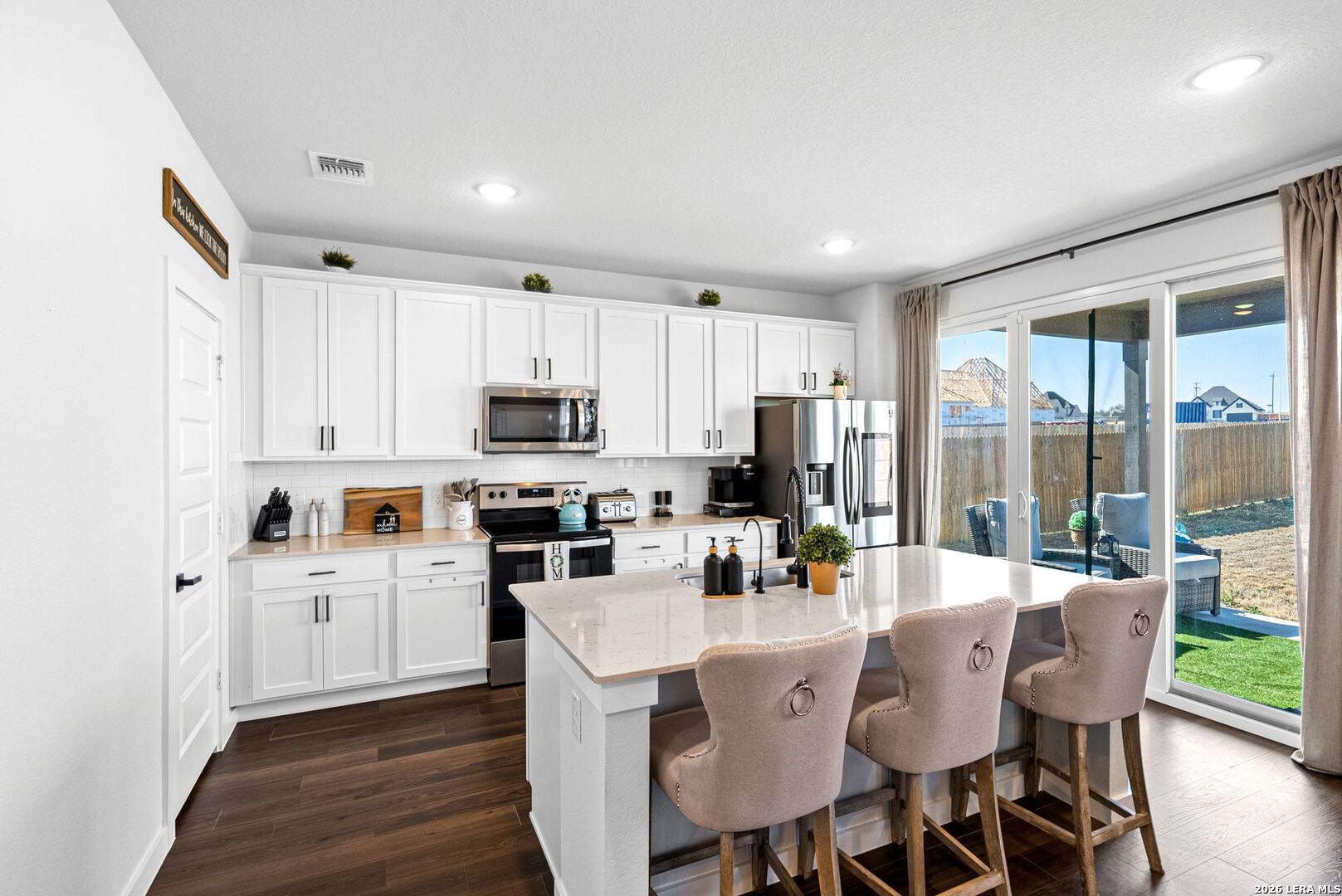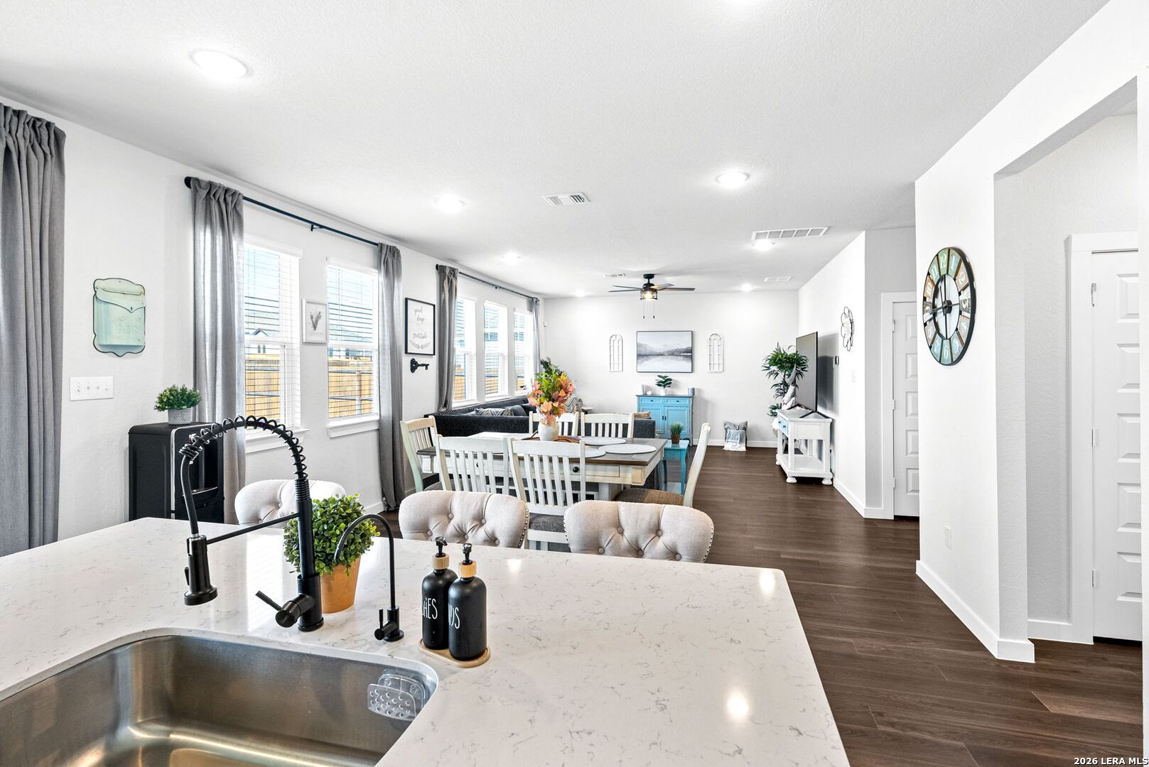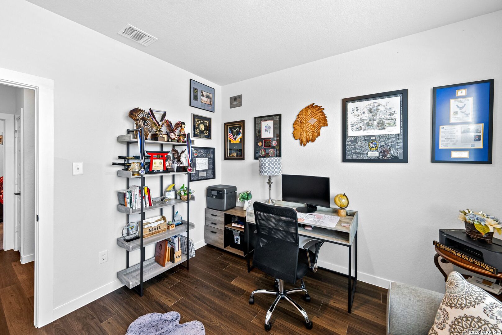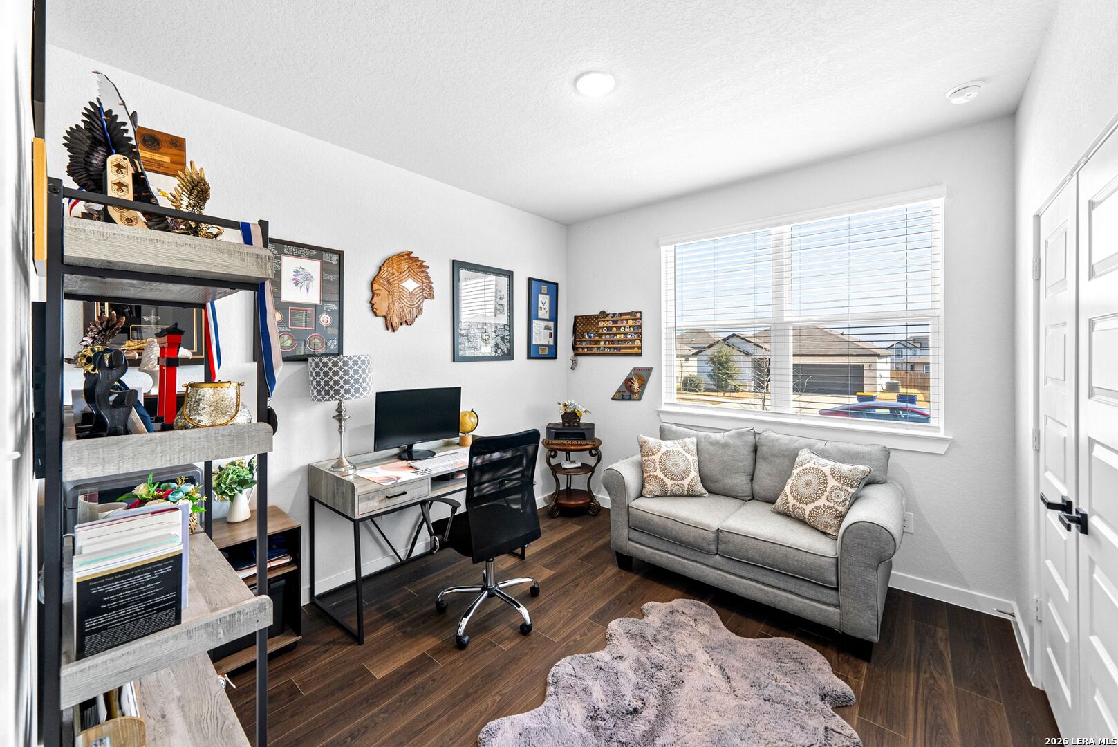 Step into a home that feels like it was designed for the rhythm of real life. This stunning two story residence offers the kind of space that adapts beautifully to your story, whether that means quiet mornings with coffee and a laptop or lively evenings filled with laughter and conversation. As you enter, you are greeted by a private study at the front of the home. Imagine sunlight pouring through the windows as you begin your workday in peace, away from the bustle of the main living areas. It is equally perfect as a reading retreat, a creative studio, or even a cozy playroom where imaginations can run free while still keeping the rest of the home serene. Continue inside and the space opens into a bright and airy great room that flows effortlessly into the dining area and kitchen. This is where life naturally gathers. Picture friends perched around the center island sharing stories while dinner simmers on the stainless steel range. The white kitchen cabinets paired with quartz countertops and a timeless subway tile backsplash create a fresh, clean aesthetic that feels both elegant and welcoming. The generously sized walk in pantry means you can stock up for holidays, meal prep with ease, or finally organize everything just the way you like it. Tucked thoughtfully beneath the stairs is additional storage that keeps everyday life beautifully uncluttered. A full third bathroom and a fourth bedroom on the first floor provide flexibility that truly sets this home apart. Whether hosting overnight guests, accommodating extended family, or creating the ultimate home gym, this layout offers options that fit your lifestyle. Upstairs, the open game room becomes the heart of relaxation and play. Envision movie nights with blankets and popcorn, game tournaments that stretch into the evening, or a quiet yoga session bathed in soft recessed lighting. The conveniently located laundry room makes daily routines feel less like chores and more like simple steps in a well designed home. The primary suite is a retreat in every sense of the word. After a long day, step into your private sanctuary where dual sinks at the vanity make mornings seamless and stress free. Unwind in the separate garden tub with a good book, or refresh in the walk in shower before starting your day. A private water closet, linen storage, and a spacious walk in closet complete the suite with comfort and practicality that you will appreciate every single day. Thoughtful upgrades enhance every corner of this home. Additional recessed lighting in the great room, primary bath, and game room creates a warm and inviting glow. The soft water loop adds everyday comfort. Outside, the covered patio invites slow weekend mornings with coffee or lively summer evenings gathered with friends. The sprinkler system and landscape package ensure the yard stays vibrant with minimal effort, giving you more time to simply enjoy being home. This is more than a rental. It is a place where mornings feel calmer, gatherings feel warmer, and everyday moments feel just a little more special. Here, you are not just finding a house. You are finding the setting for your next chapter.